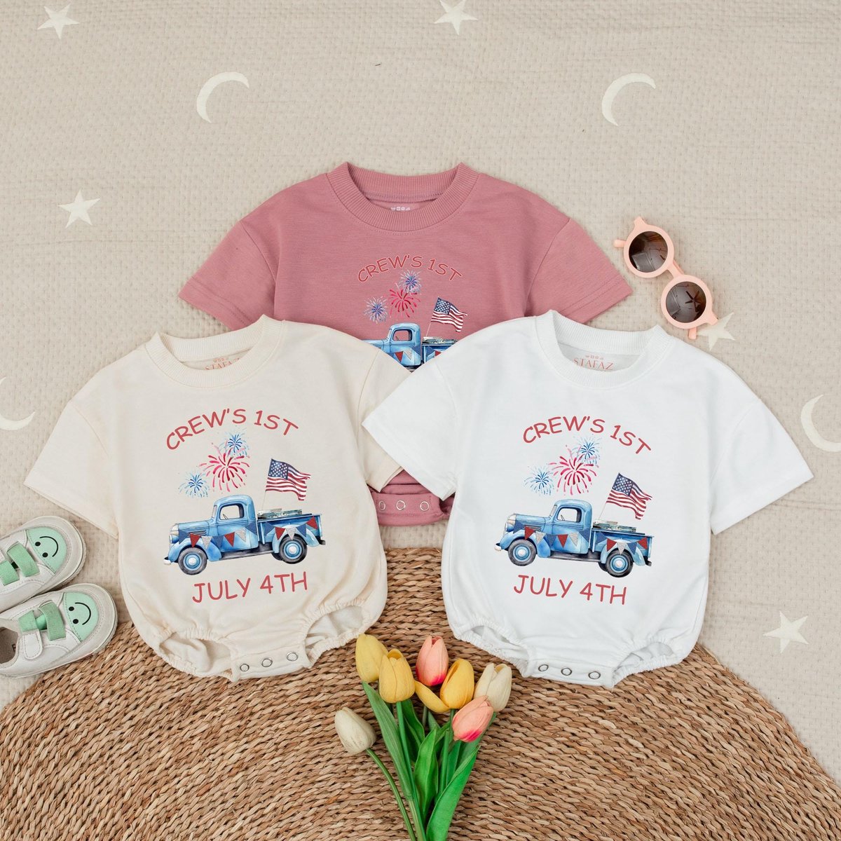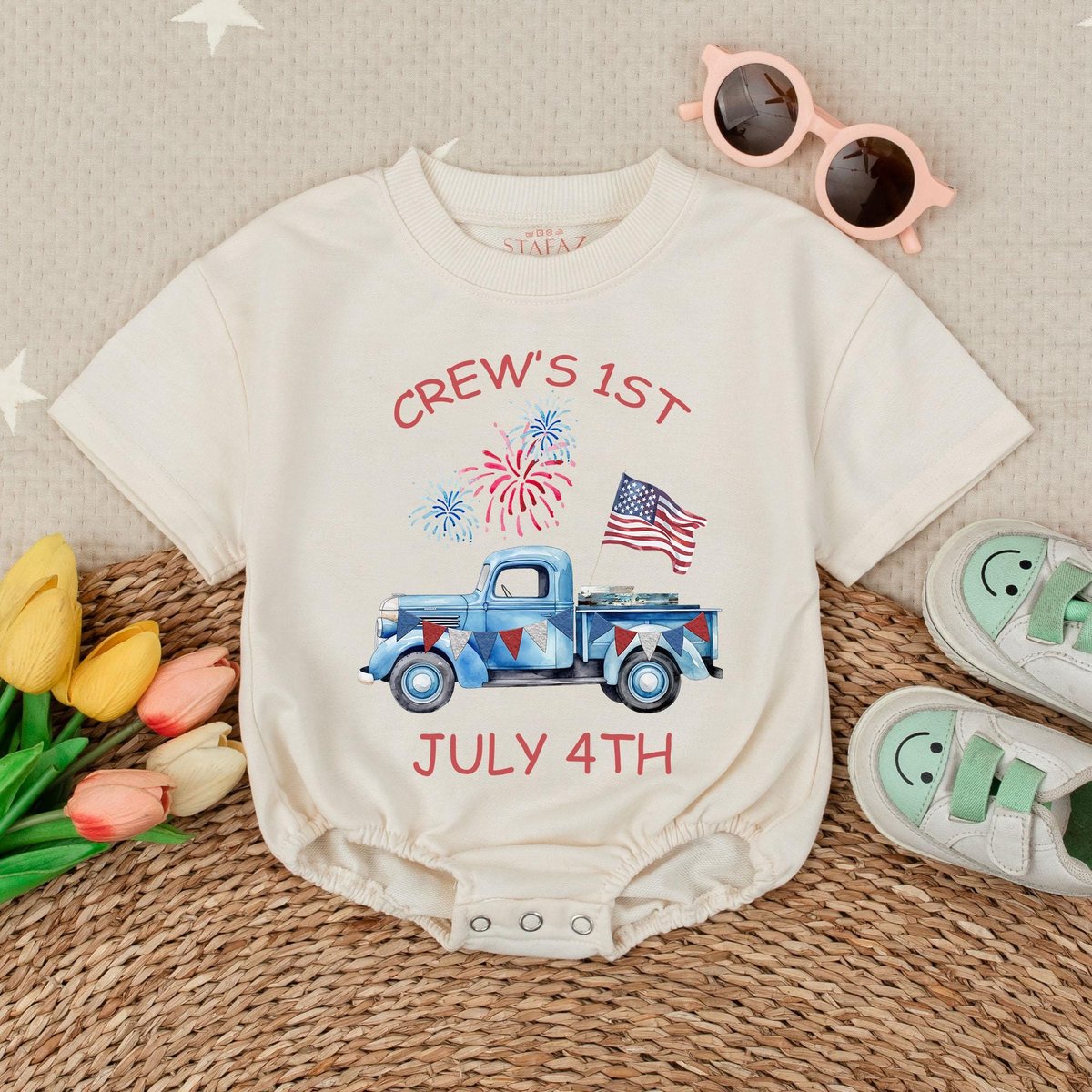 Customized Name Baby Boy First Fourth Of July Bubble Romper USA Shirt4th July RomperPatriotic Baby B