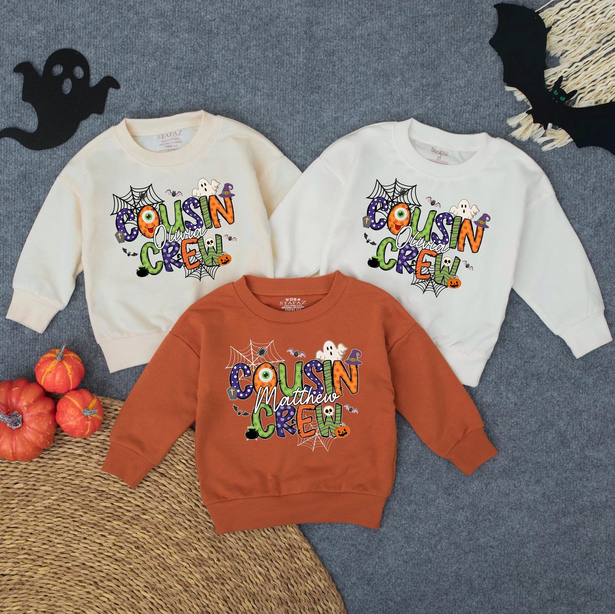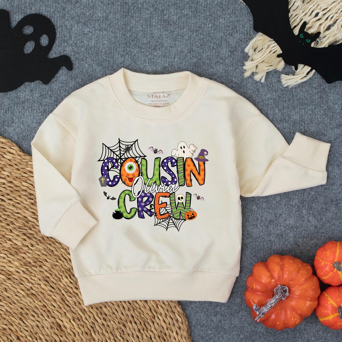 Customized Name Cousin Crew Halloween Baby Toddler Sweatshirt Matching Cousin Baby Outfit Spooky Fam 434