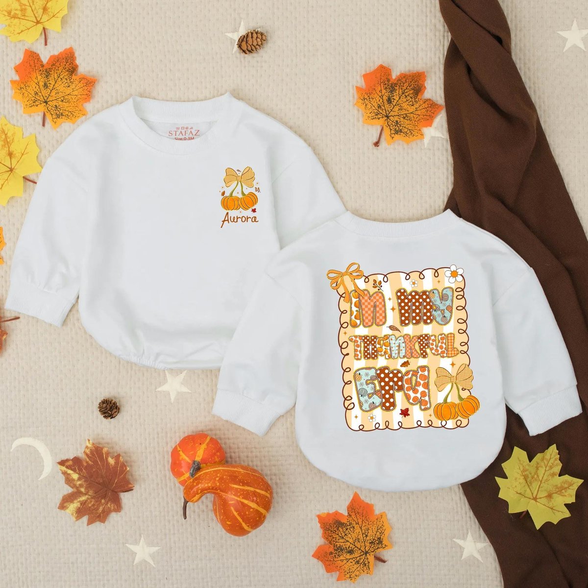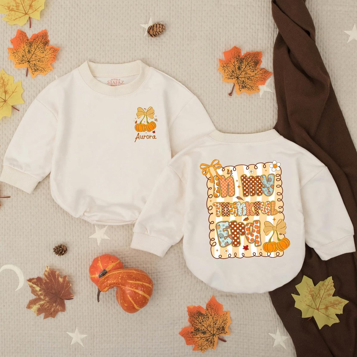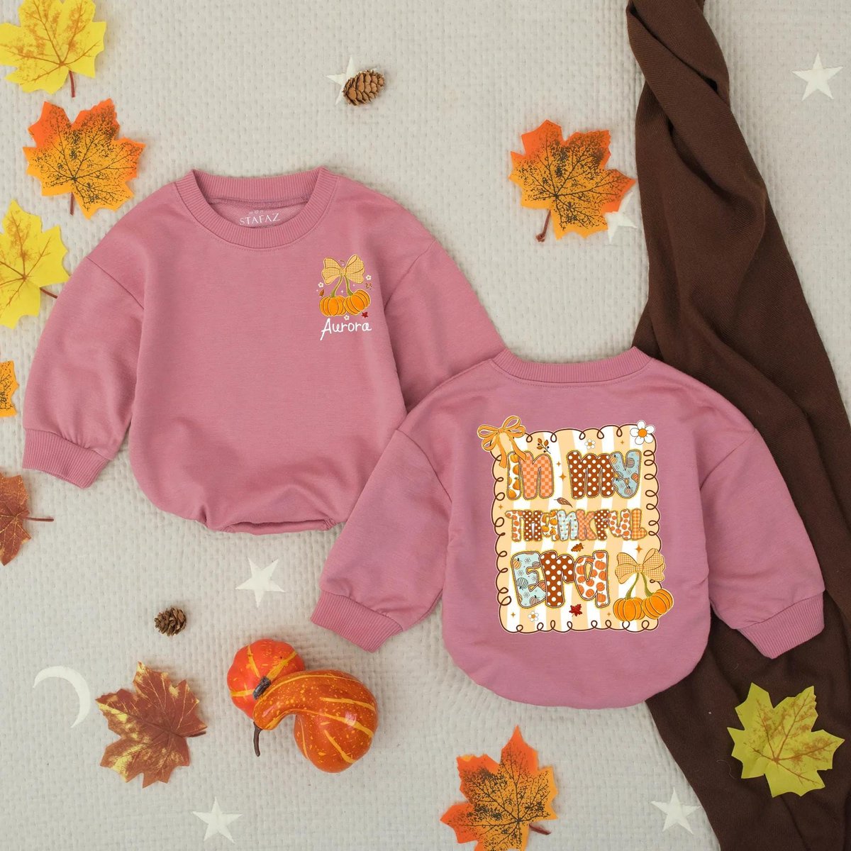 Customized Preppy In My Thankful Era Baby Romper Fall Infant Outfit Cute Thanksgiving Toddler Sweats
