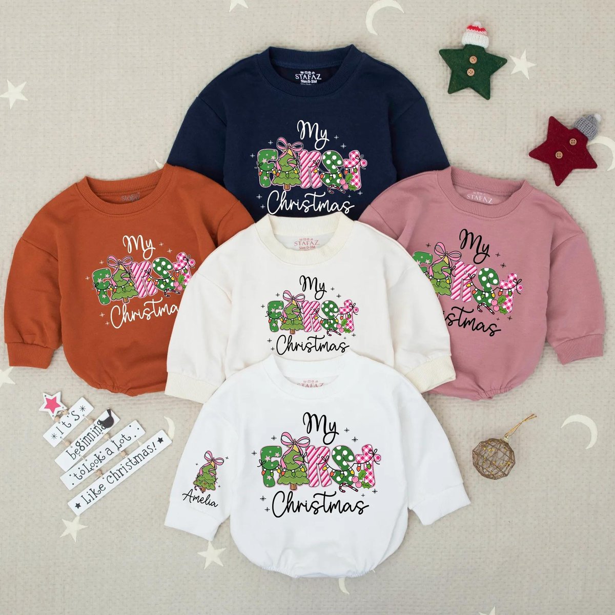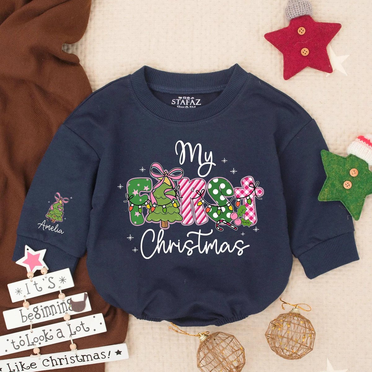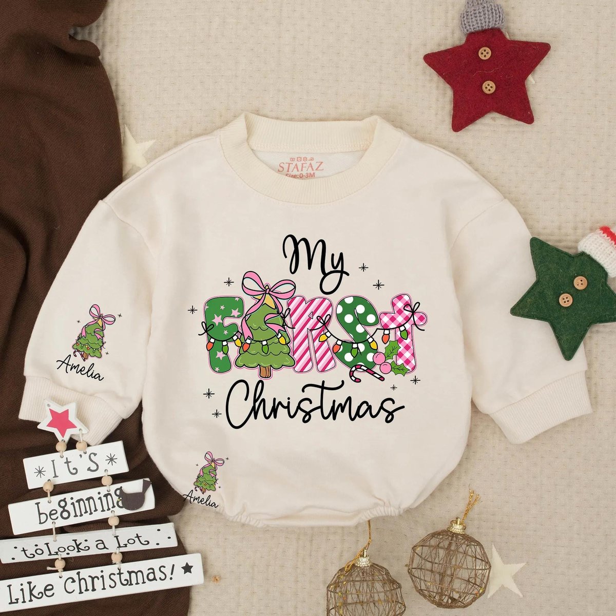 Customized Preppy My First Christmas Baby Romper Girly Christmas Baby Romper Christmas Bow Baby Body 434