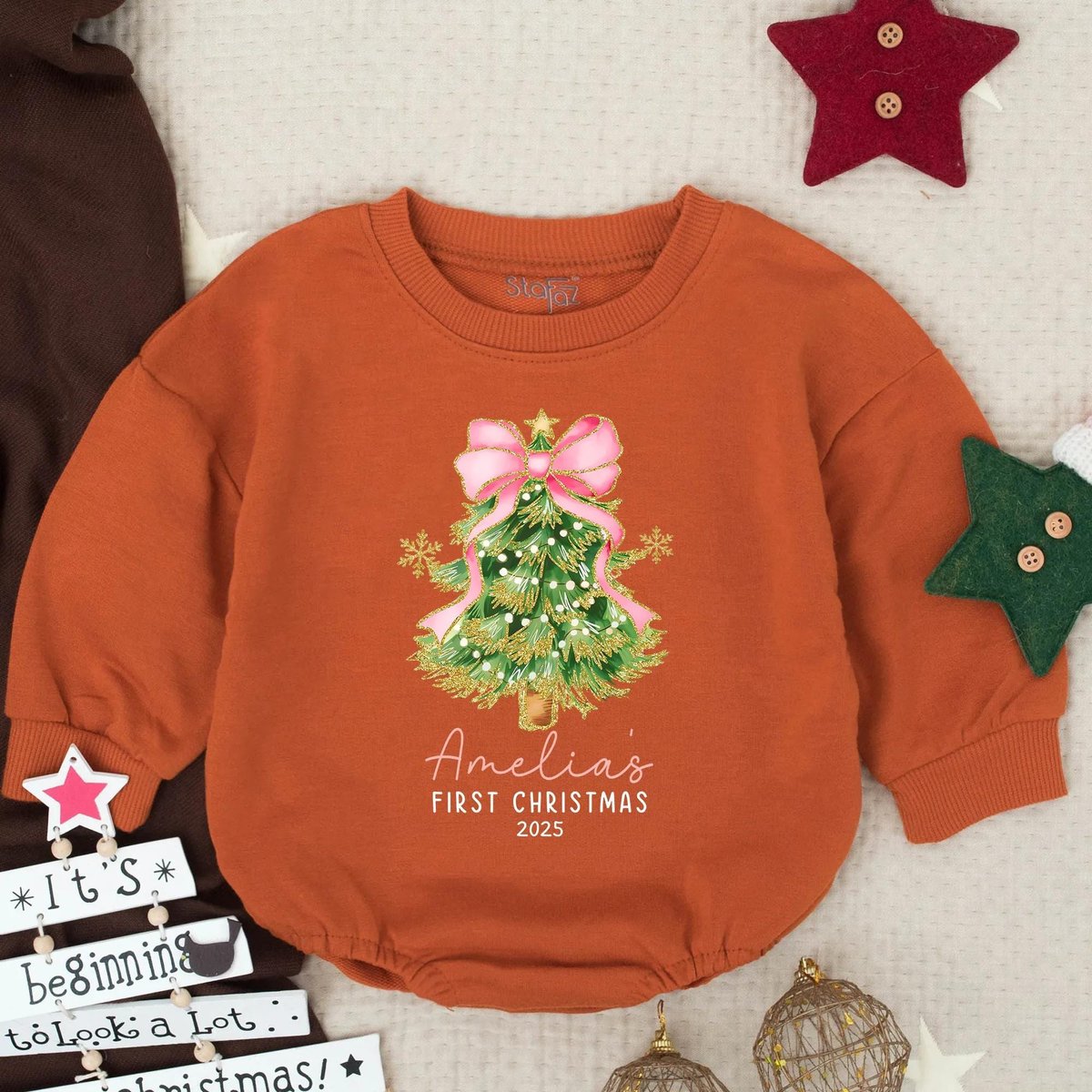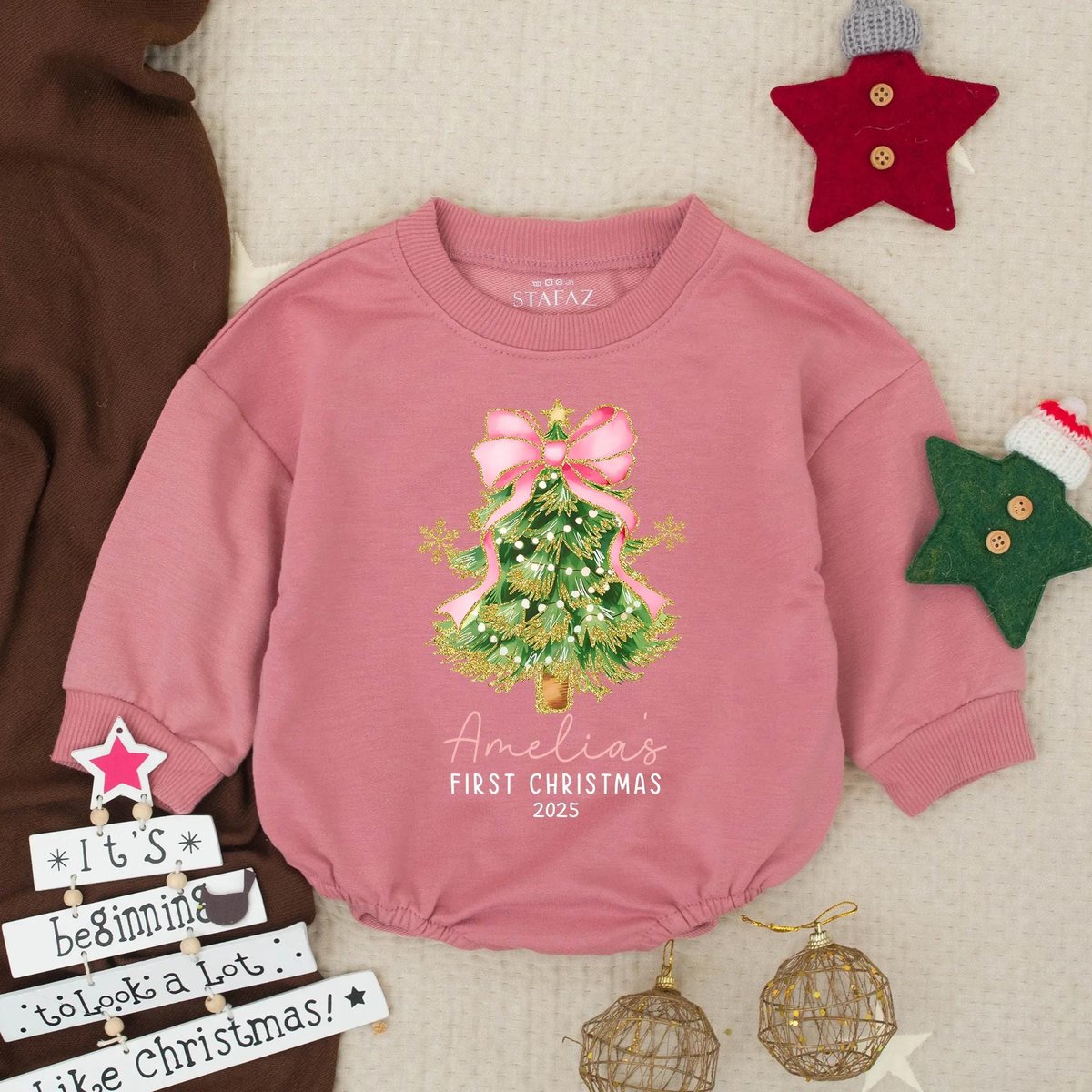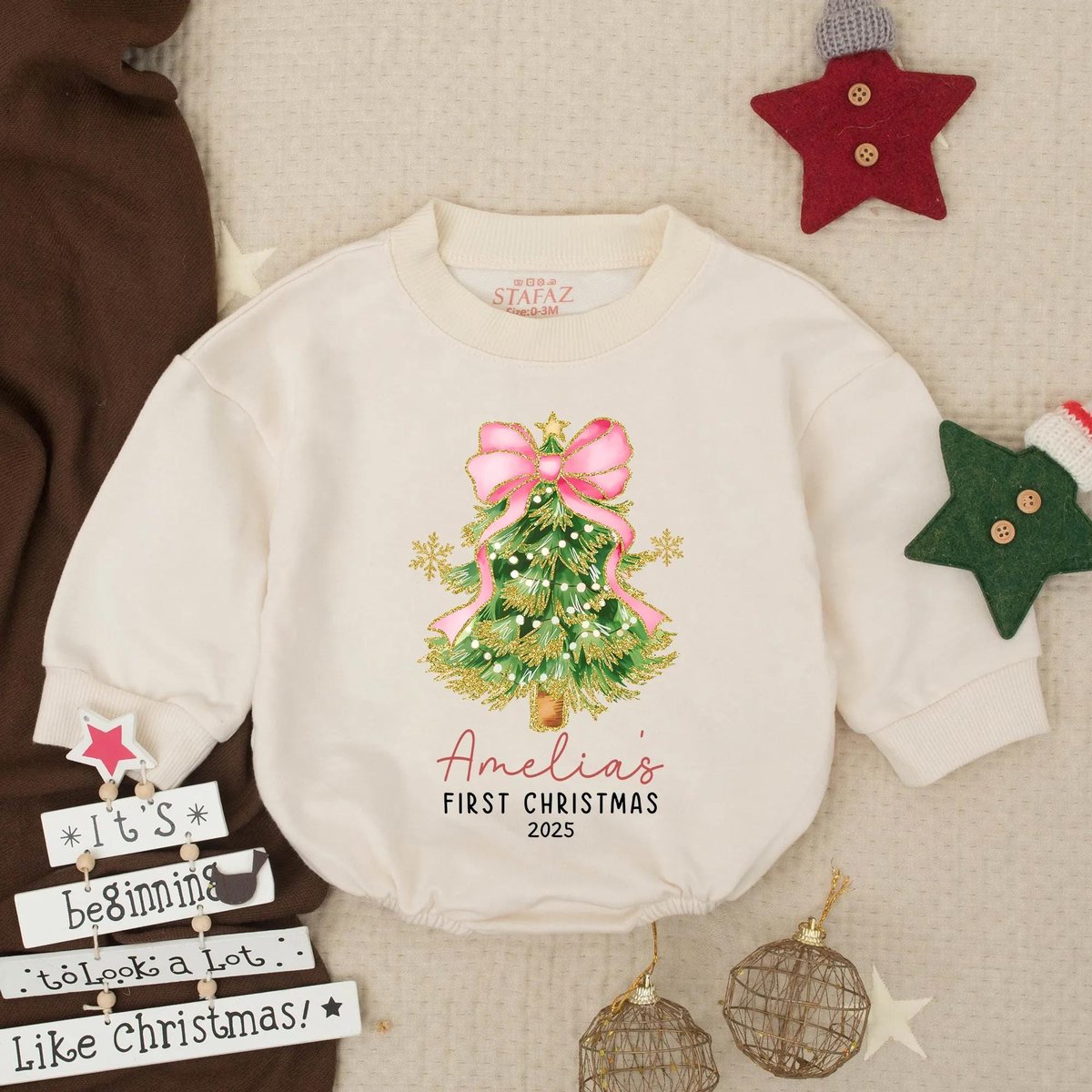 Customized Preppy My First Christmas Baby Romper Girly Christmas Baby Romper Christmas Bow Baby Body