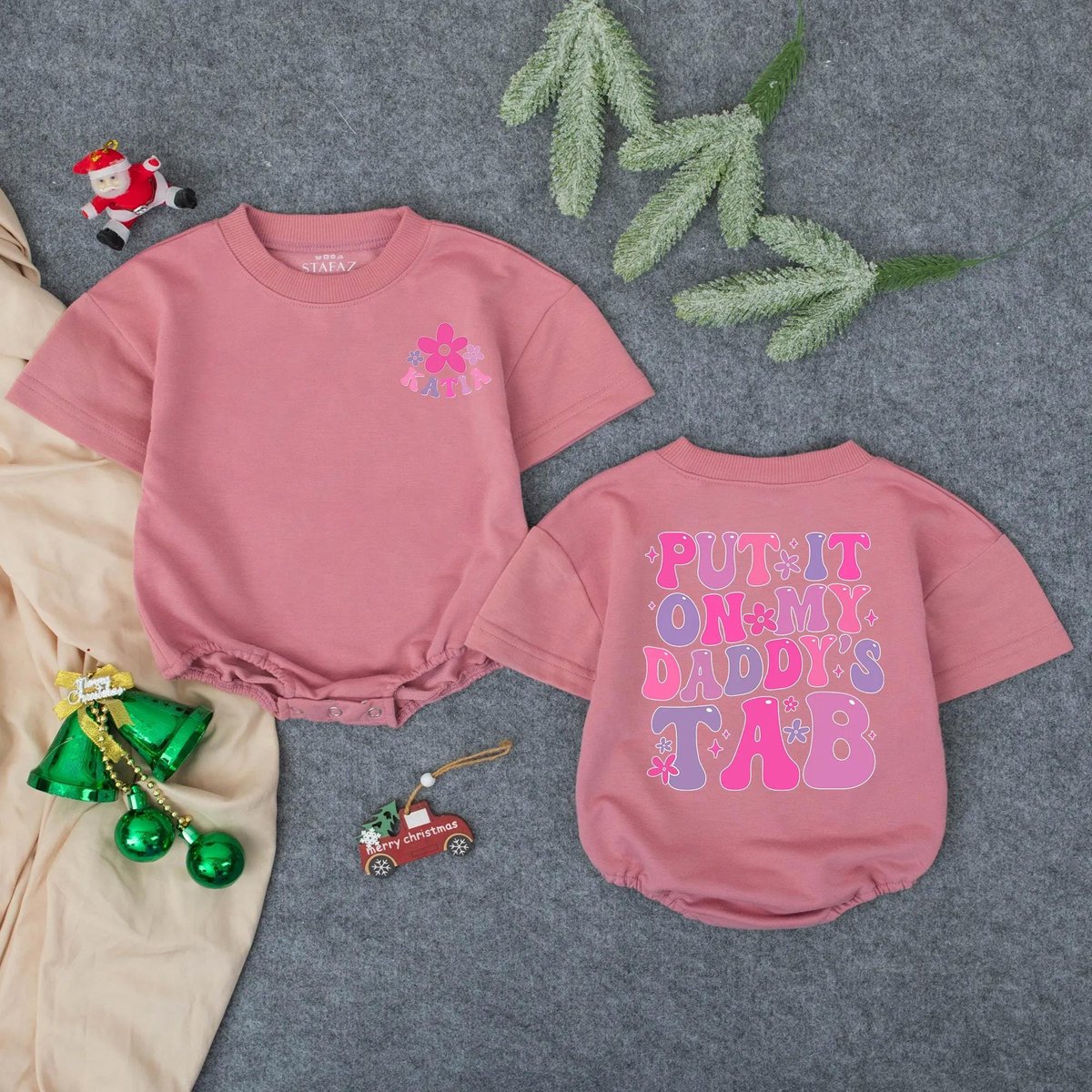 Customized Put It On Daddys Tab Baby Romper Funny Fathers Day Outfit Gift for Dad Gift for New DadBa 436