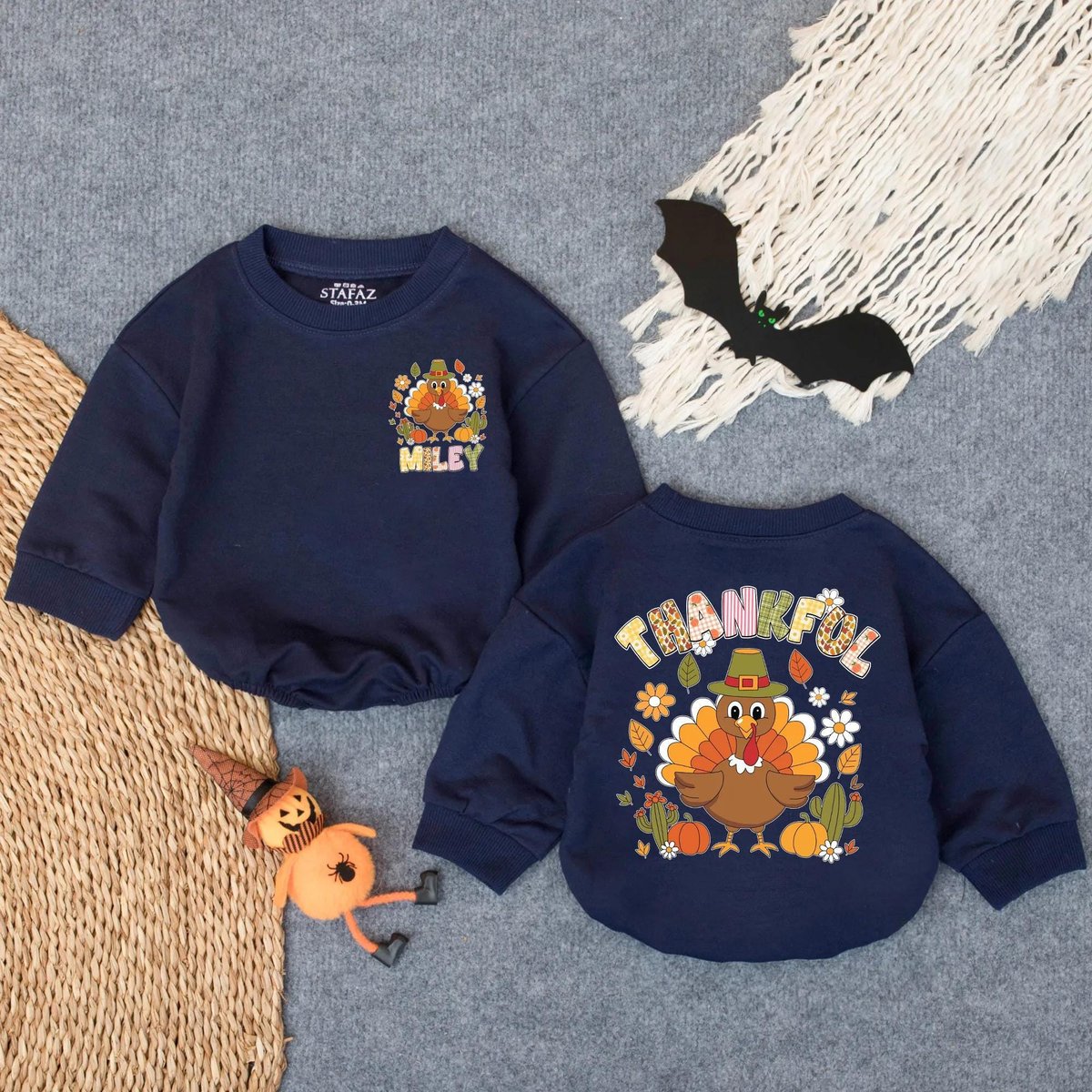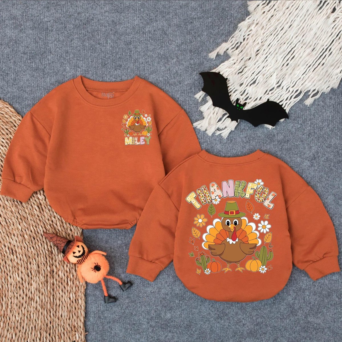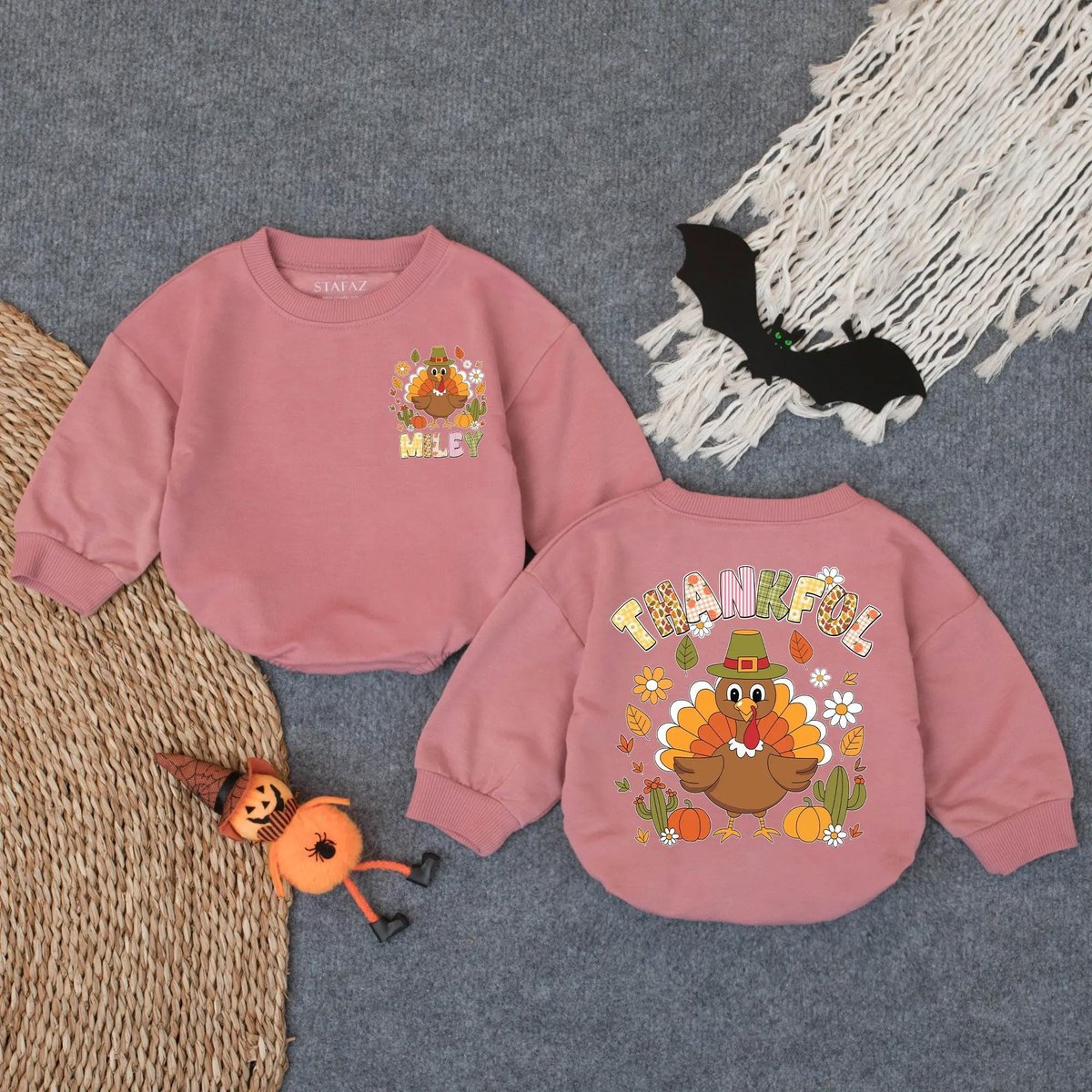 Customized Turkey Floral Bubble Romper Baby Girl Thanksgiving Outfit Fall Infant Bodysuit Personaliz 433