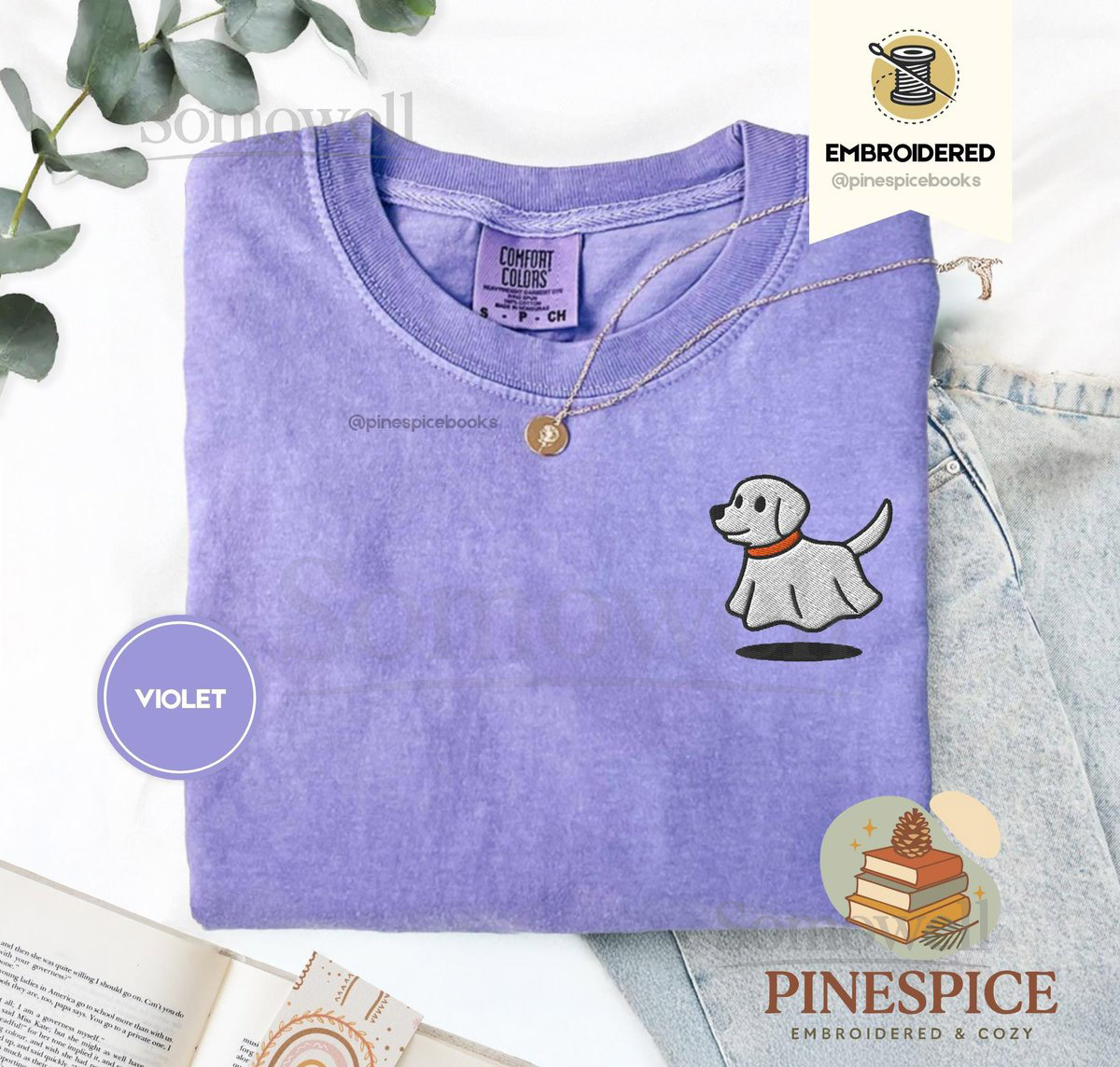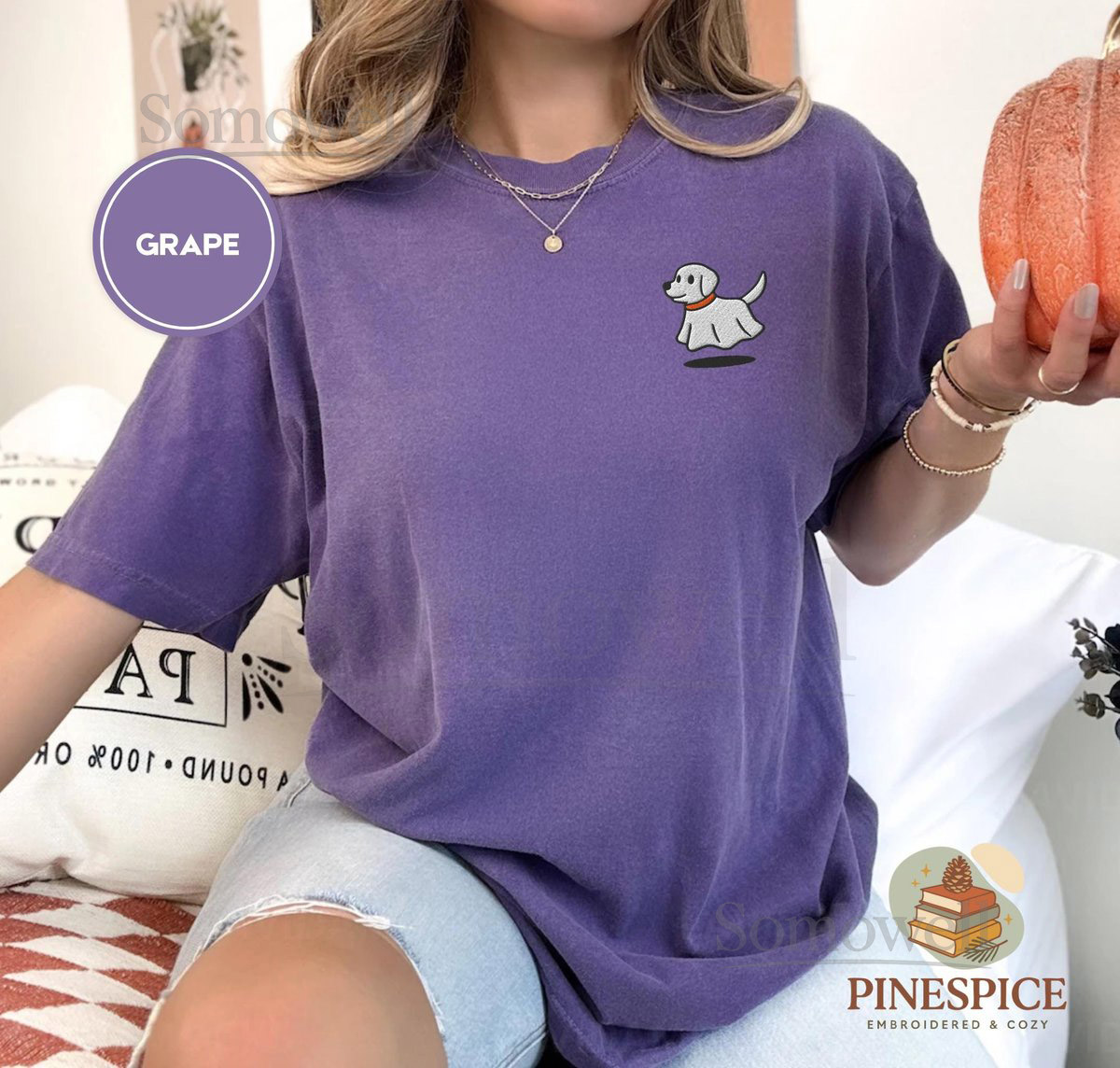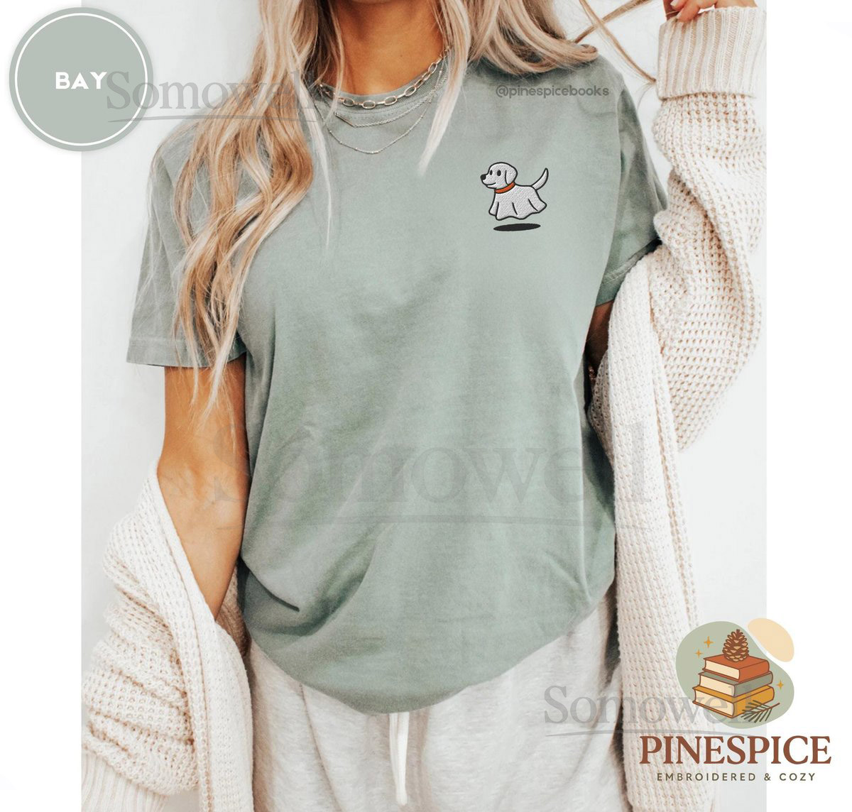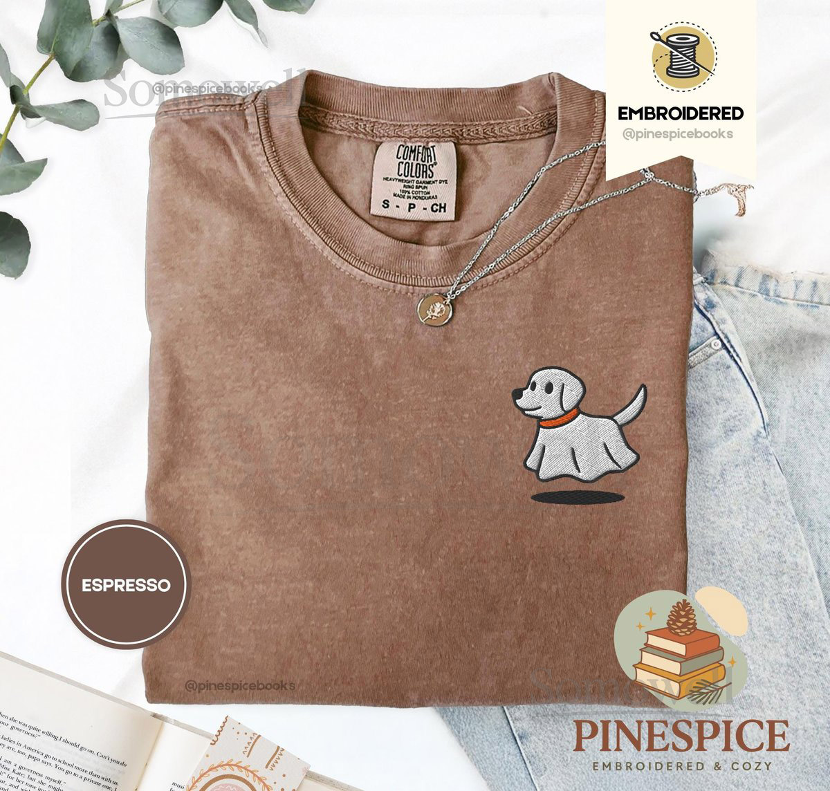Cute Ghost Dog Tee Embroidered Halloween Dog Shirt Comfort Colors 1717 Cozy Fall T-Shirt Boo Basket Gift Spooky Puppy Tee_27
