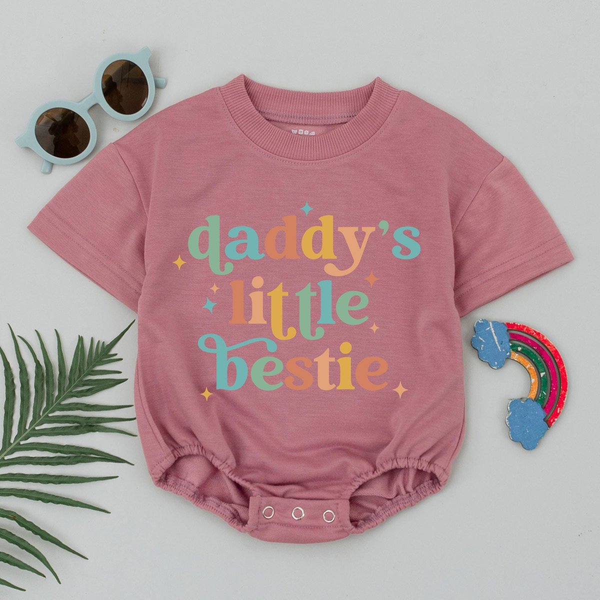 Daddys Little Bestie Romper Funny Baby Girl Outfit First Fathers Day Gift Retro Baby Shower Gift New
