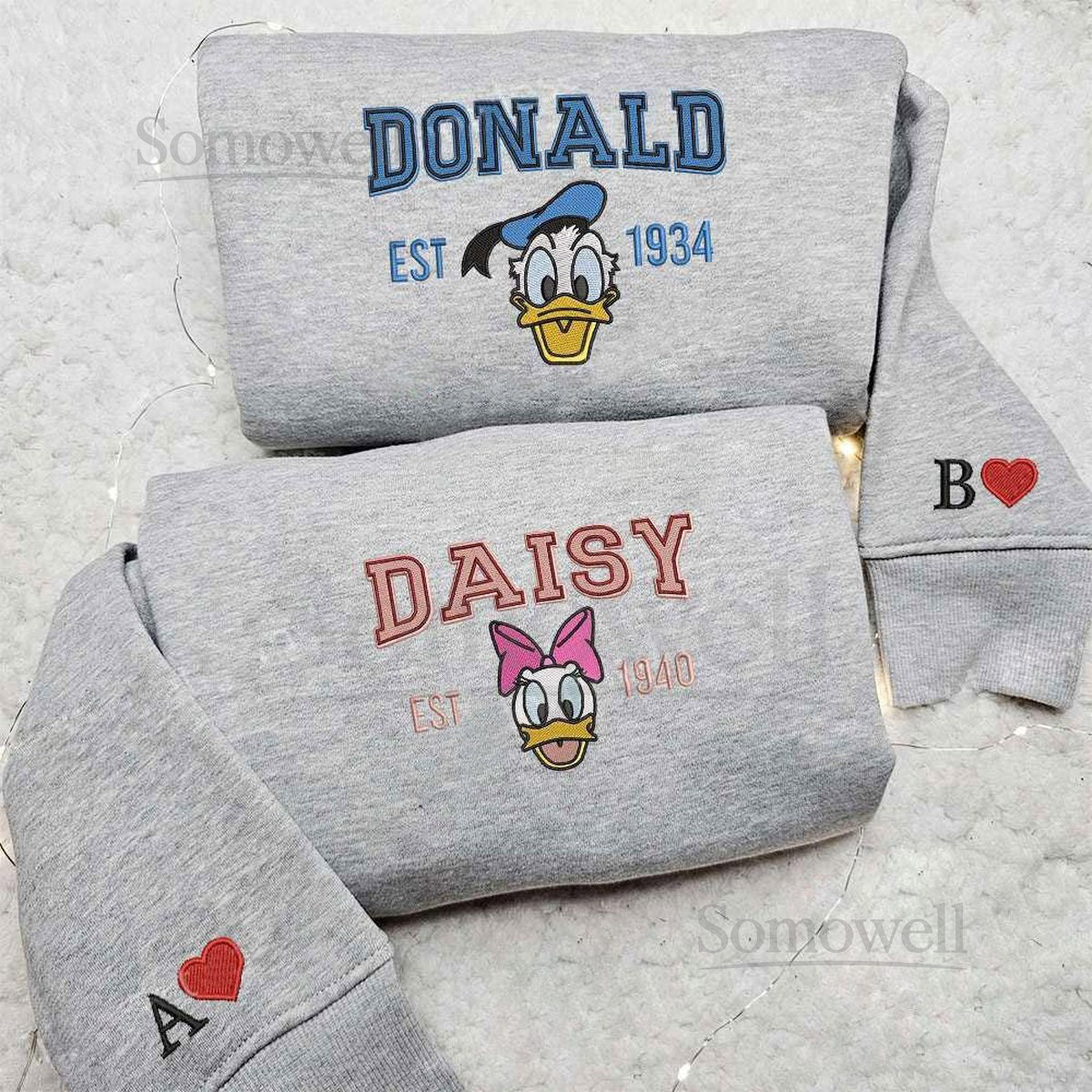 Daisy Duck And Donald Duck Embroidered Sweatshirt Disney Characters Couple Hoodie Disneyland Family Matching Shirt Magic Kingdom_37
