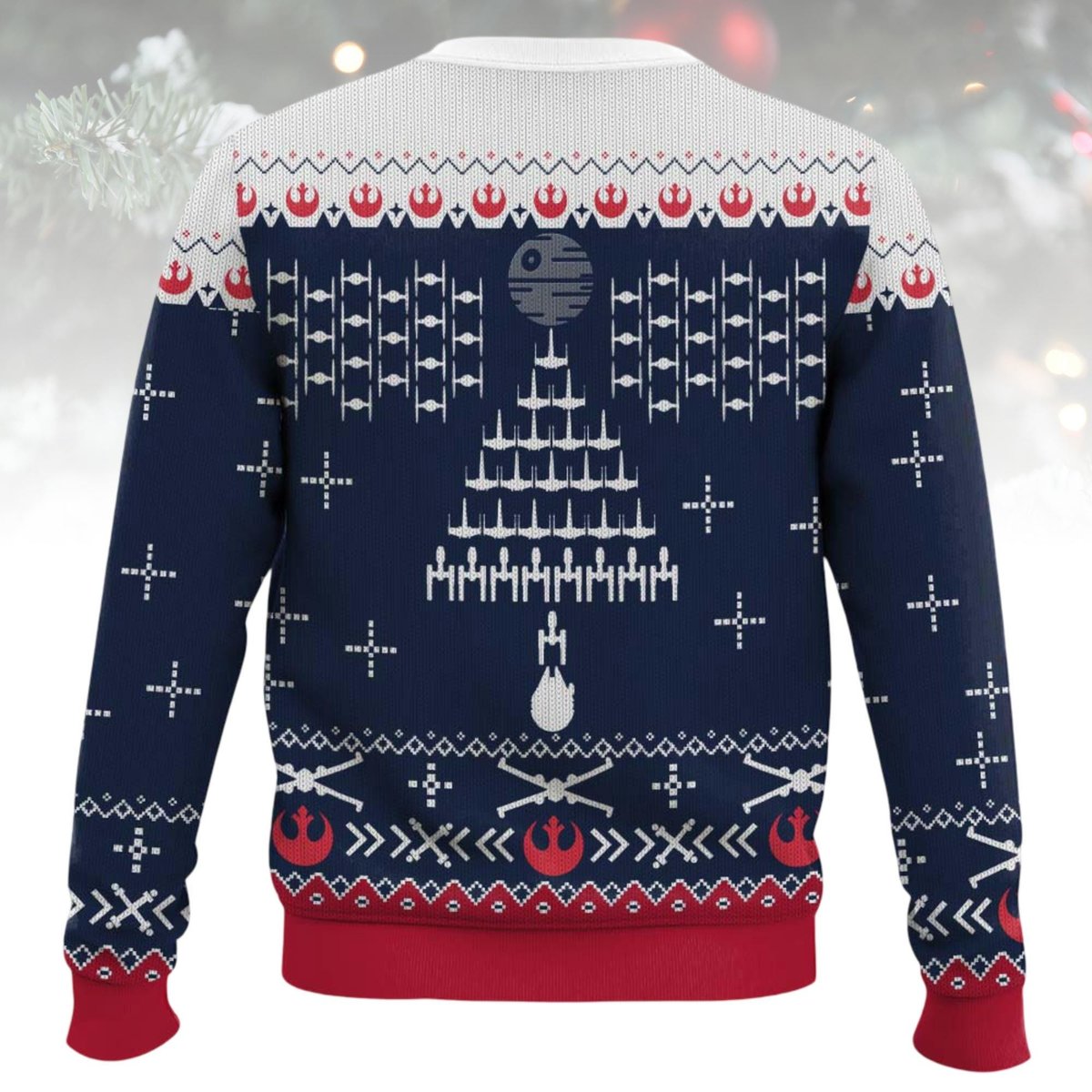 Death Star Tree Blue White Star Wars Ugly Christmas Sweater Holiday Knit Gift