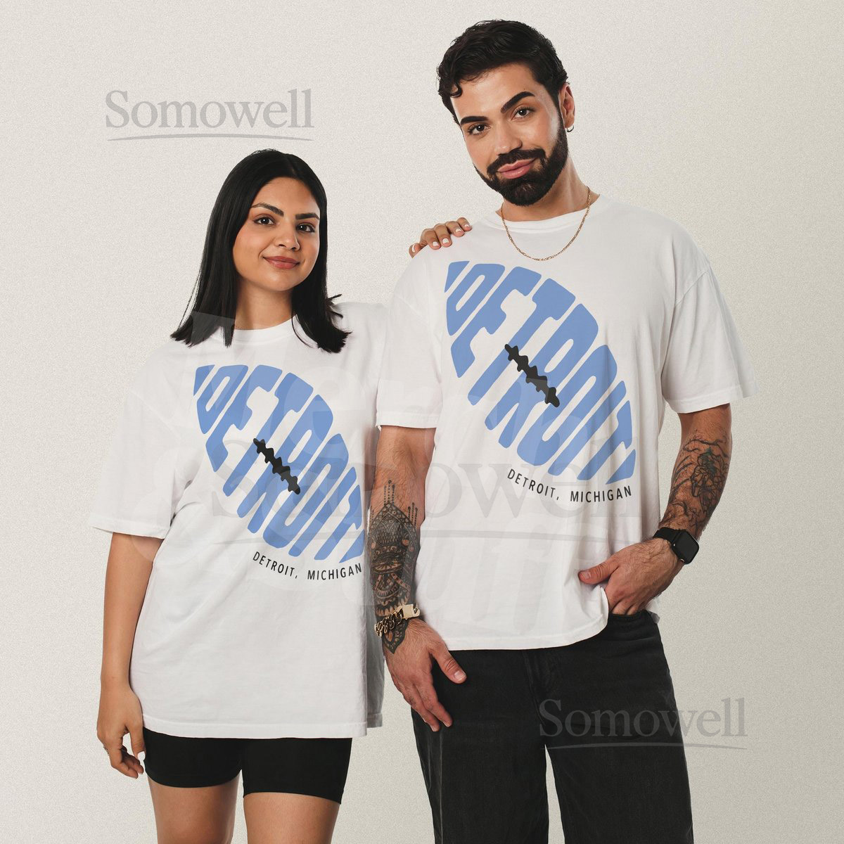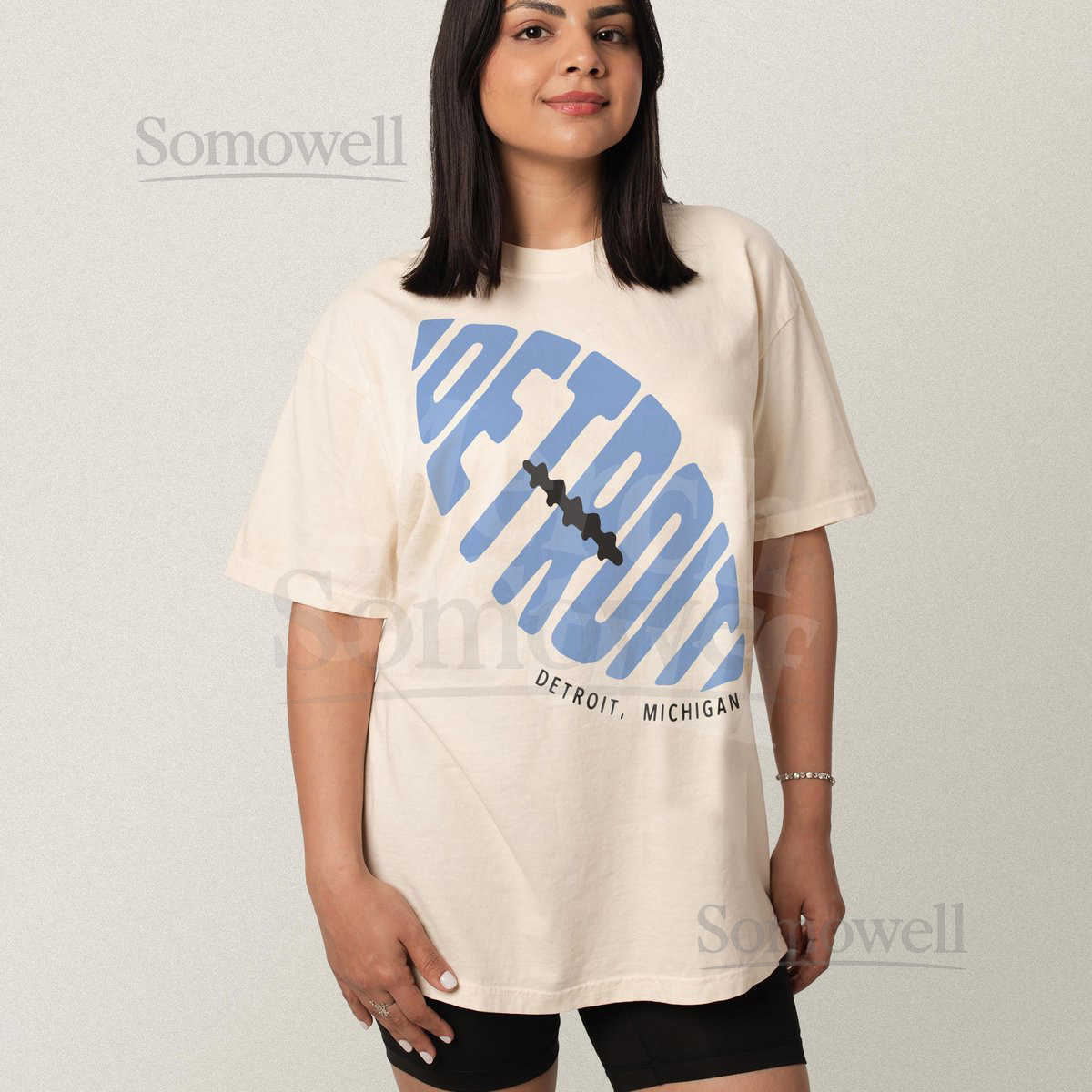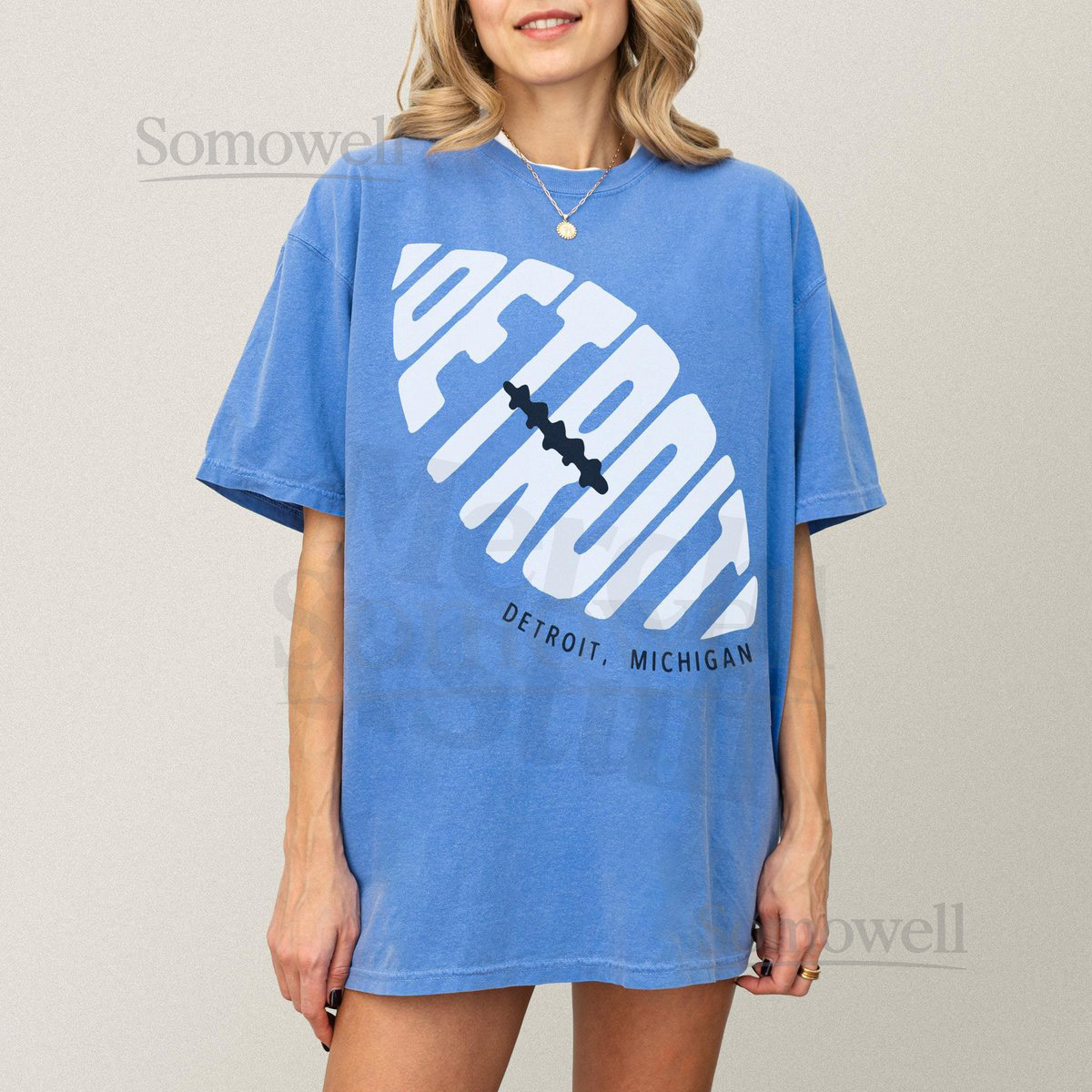 Detroit Football Graphic Tee Unisex Blue White Black DET Michigan Football Fan Apparel Retro Detroit Streetwear Game Day T-Shirt_110