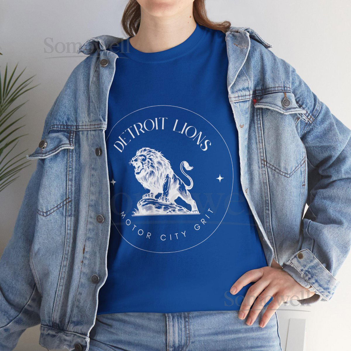 Detroit Lions Heavy Cotton Tee Unisex Graphic Shirt for Game Day Sports Fan Gift Casual Wear Everyday Style Motor City Pride_185
