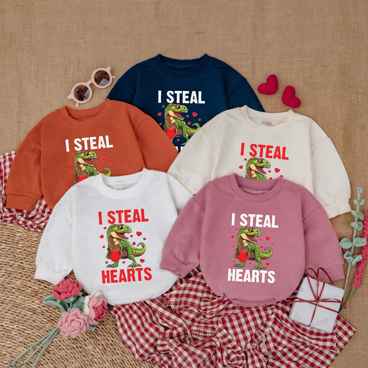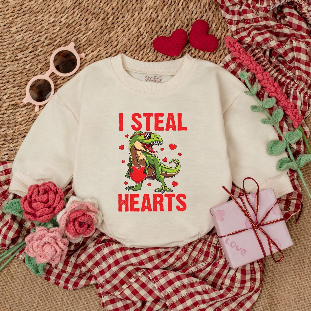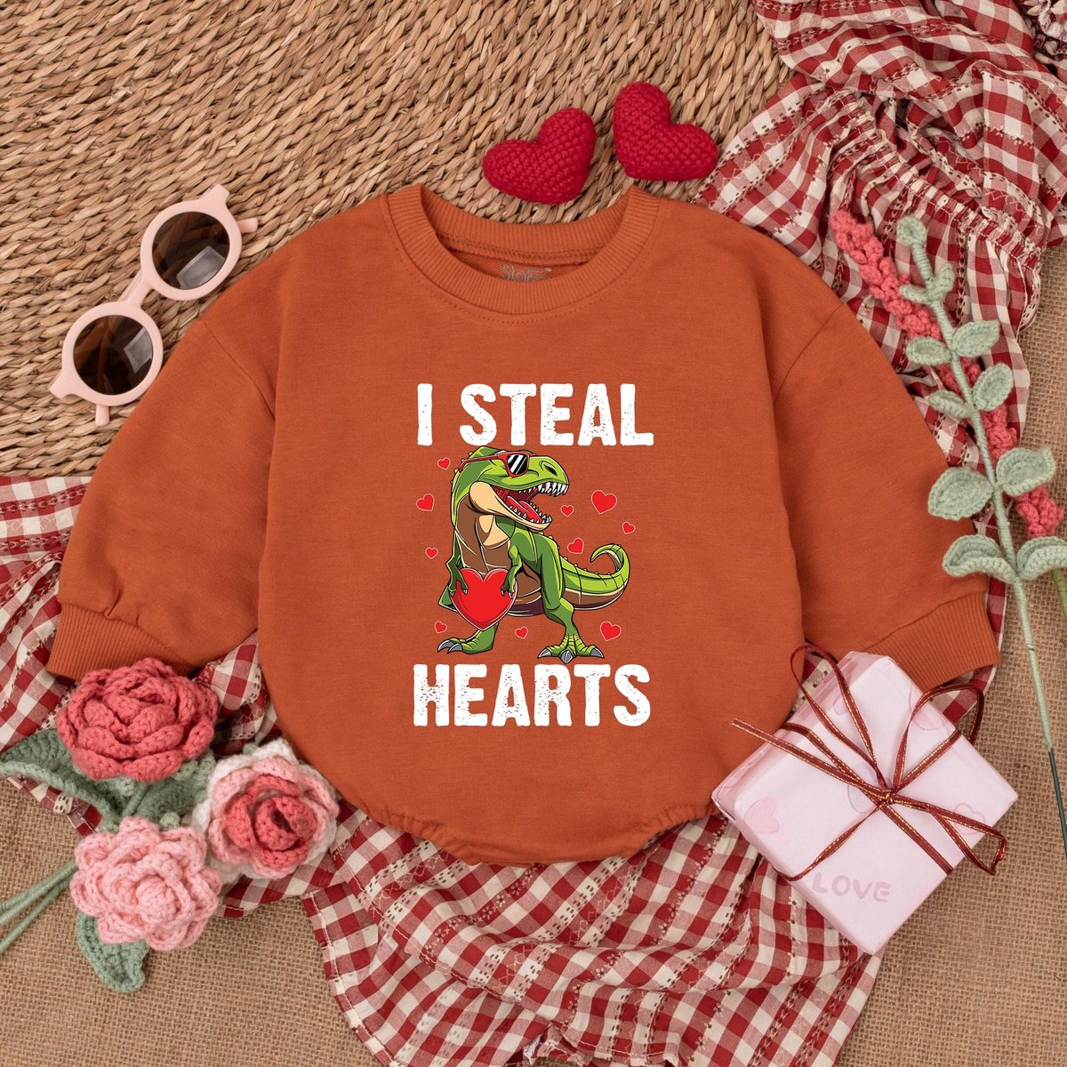 Dinosaur I Steal Heart Romper Baby Boy Valentine Bodysuit Valentine Shirts For Boys 1st Valentines D 184