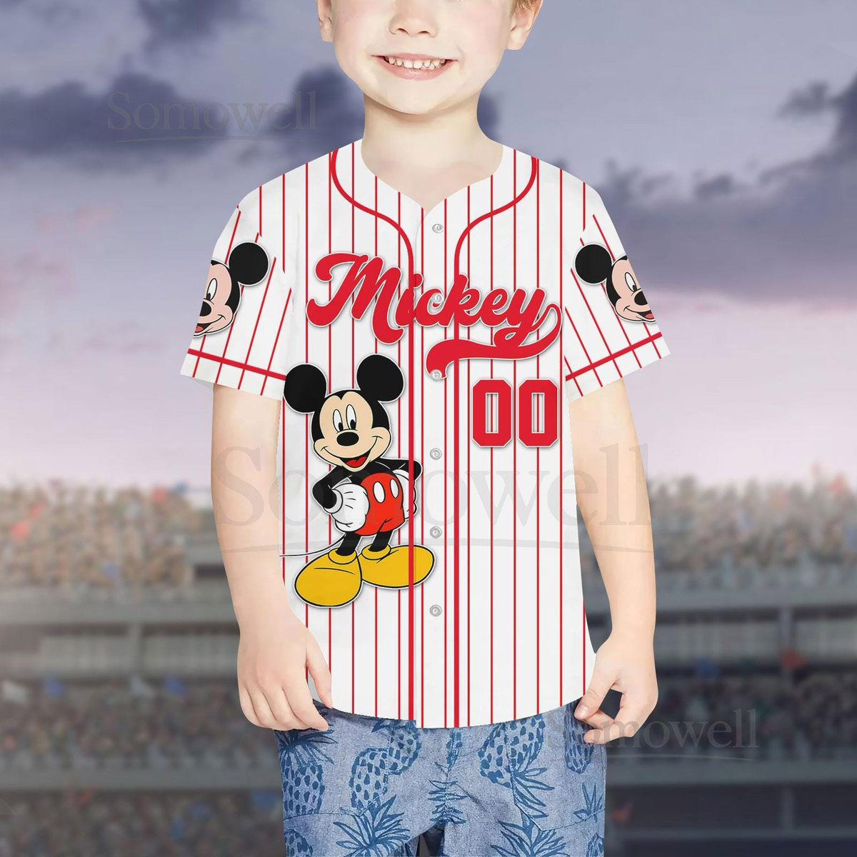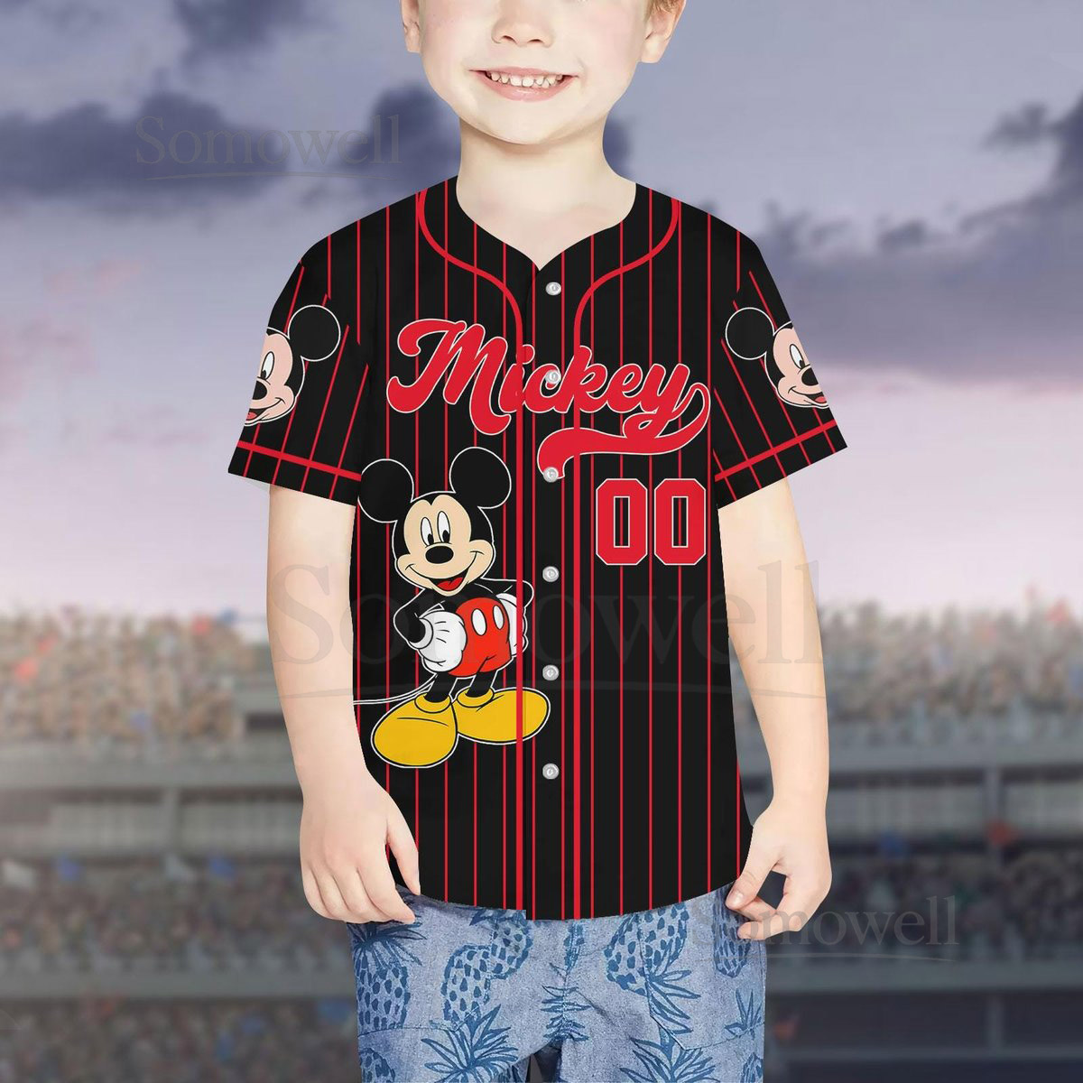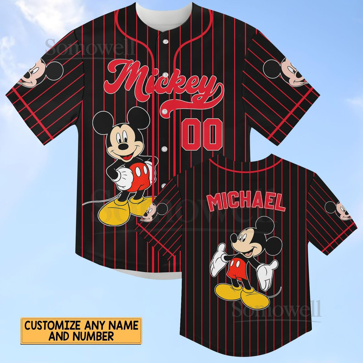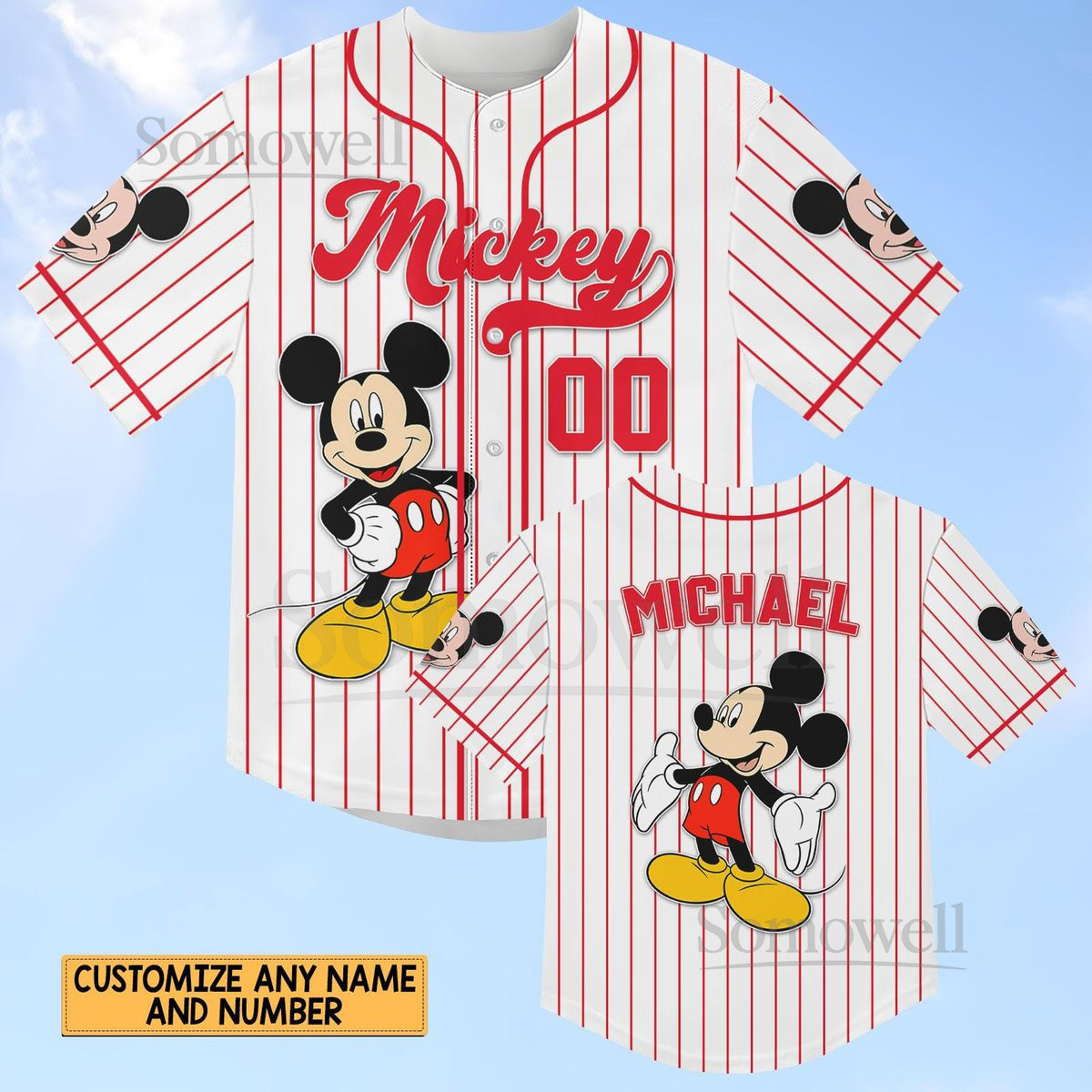 Disney Mickey Mouse Striped Line Baseball Jersey Personalized Mickey Cartoon Baseball Shirt Disneyland ShirtWalt Disney World Jersey_55
