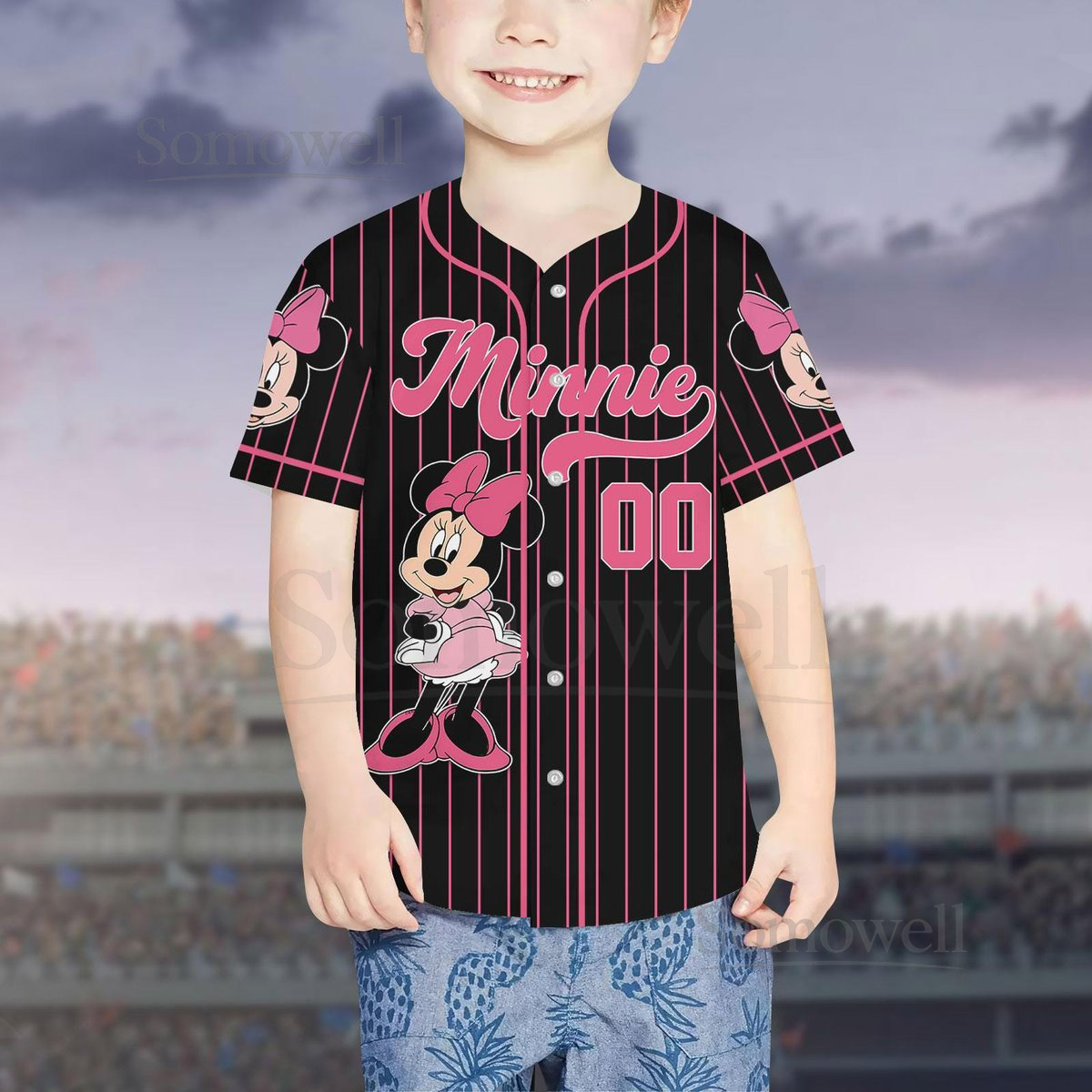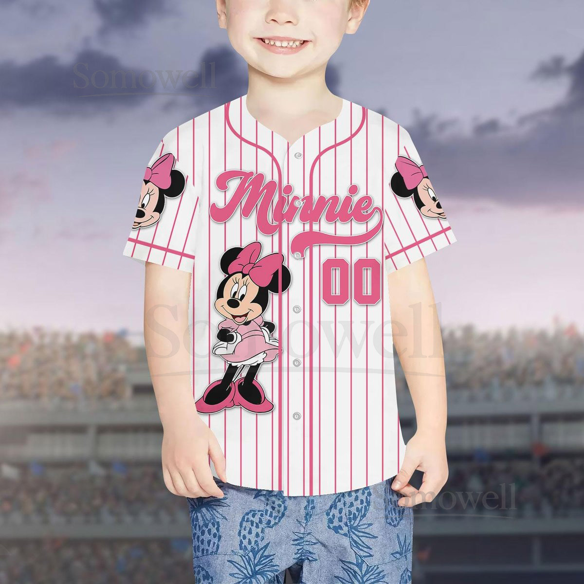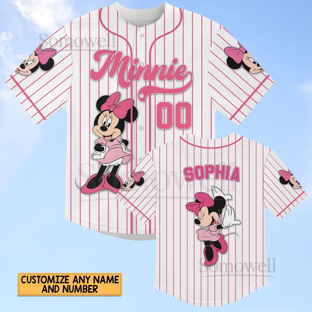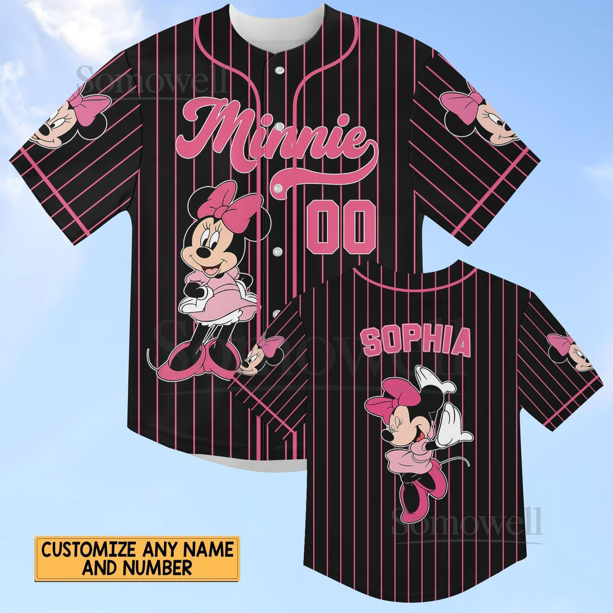 Disney Minnie Mouse Striped Line Baseball Jersey Personalized Minnie Cartoon Baseball Shirt Disneyland ShirtWalt Disney World Jersey_57