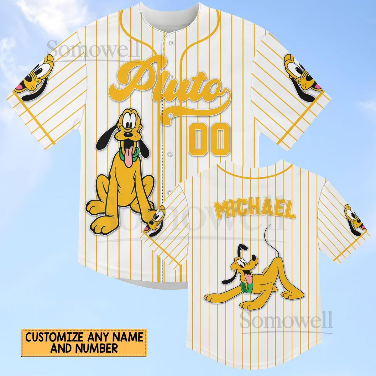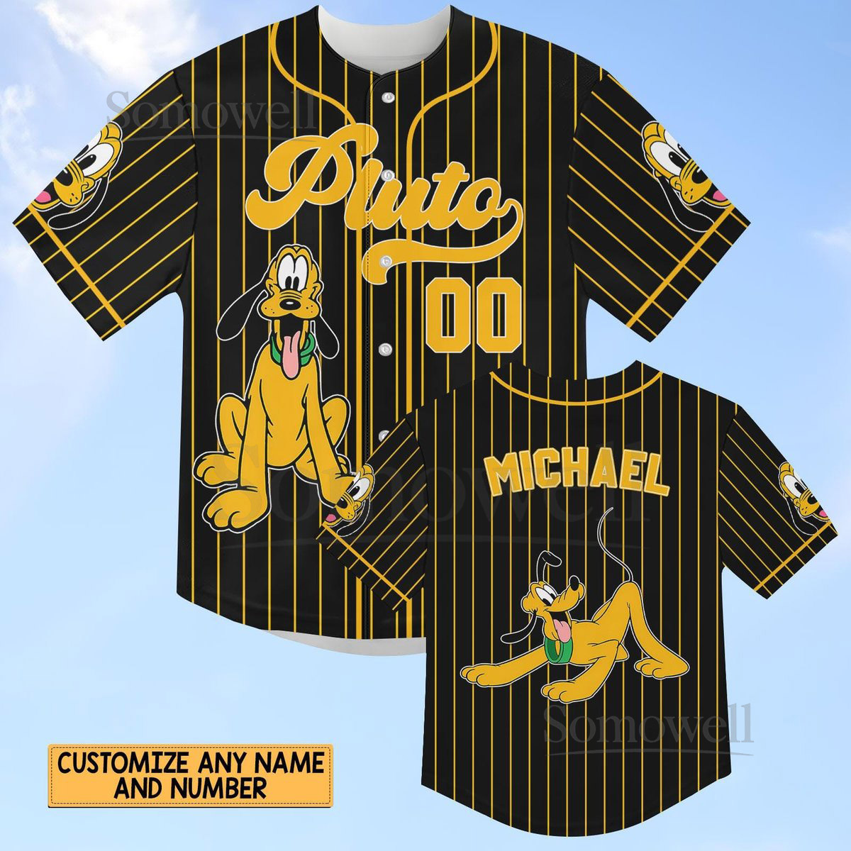 Disney Pluto Dog Striped Line Baseball Jersey Personalized Pluto Cartoon Baseball Shirt Disneyland Shirt Walt Disney World Jersey_59