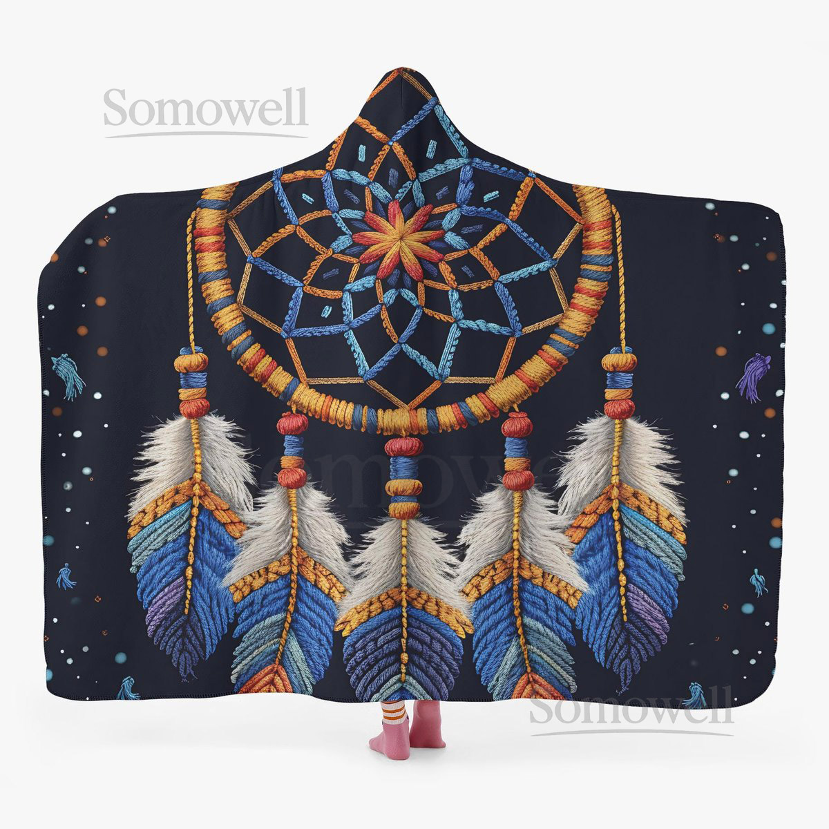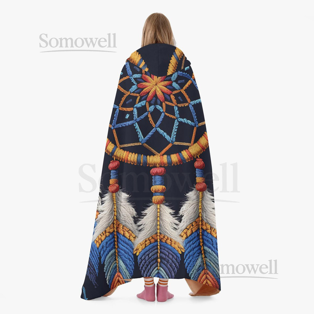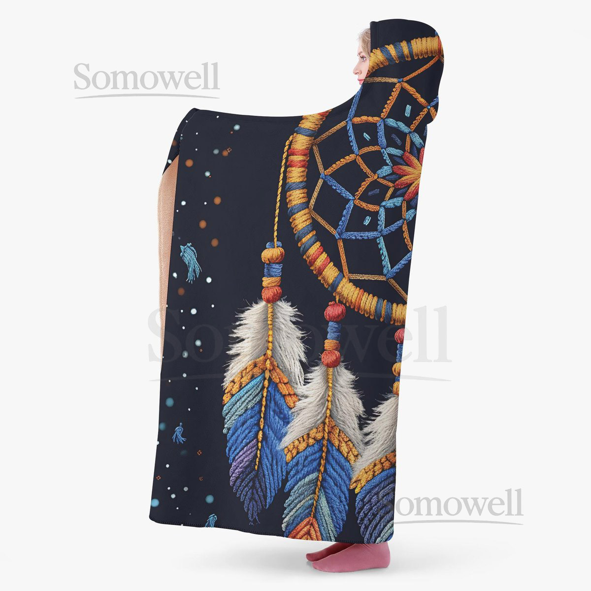 Dreamcatcher Dual-Sided Stitched Hoodie Blanket Cozy Wearable Throw with Boho Design_34