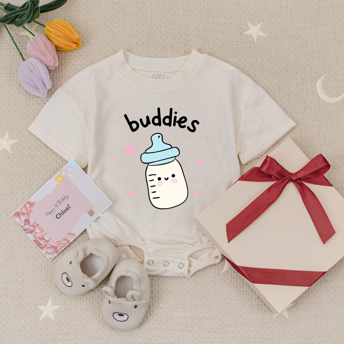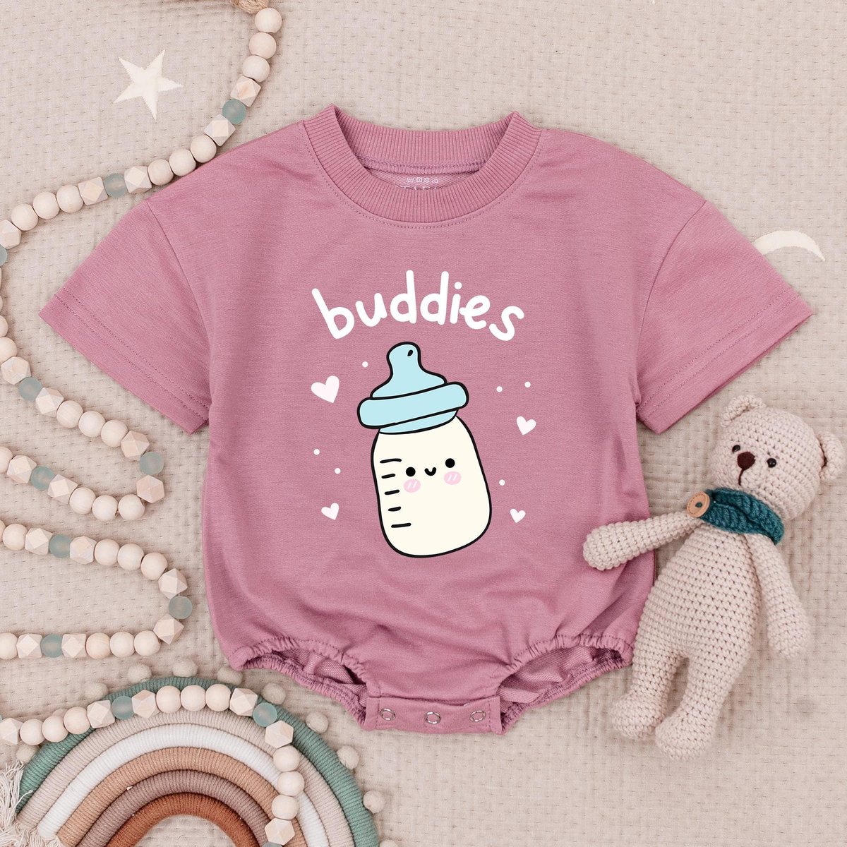 Drinking Buddies Funny Twins Bubble Romper Gender Neutral Twins Babysuit Best Friends Twin Baby Show