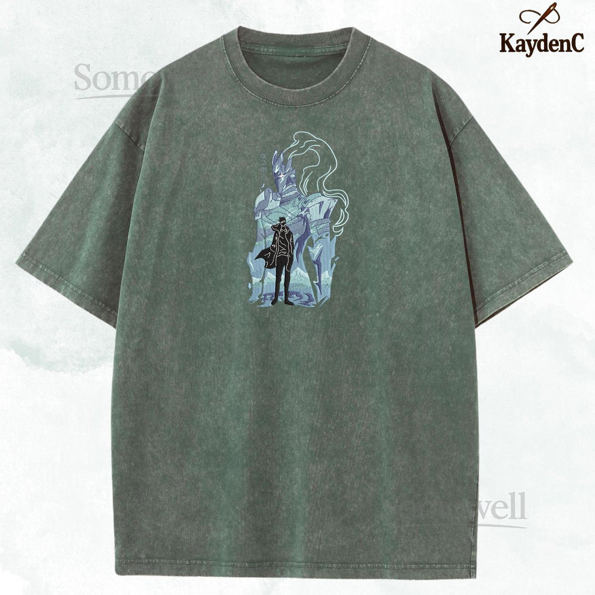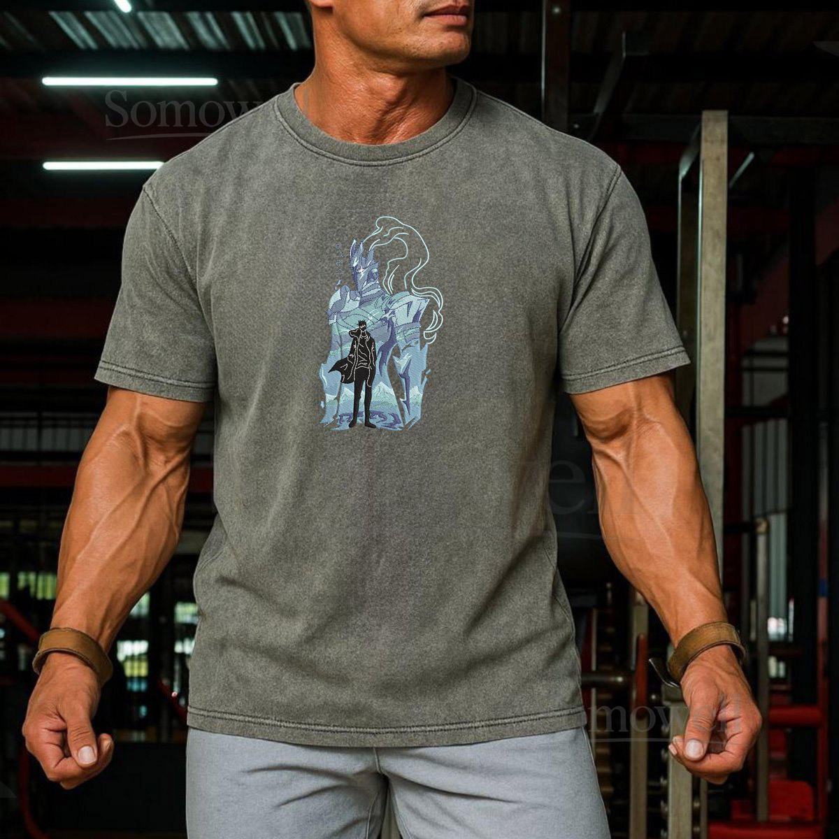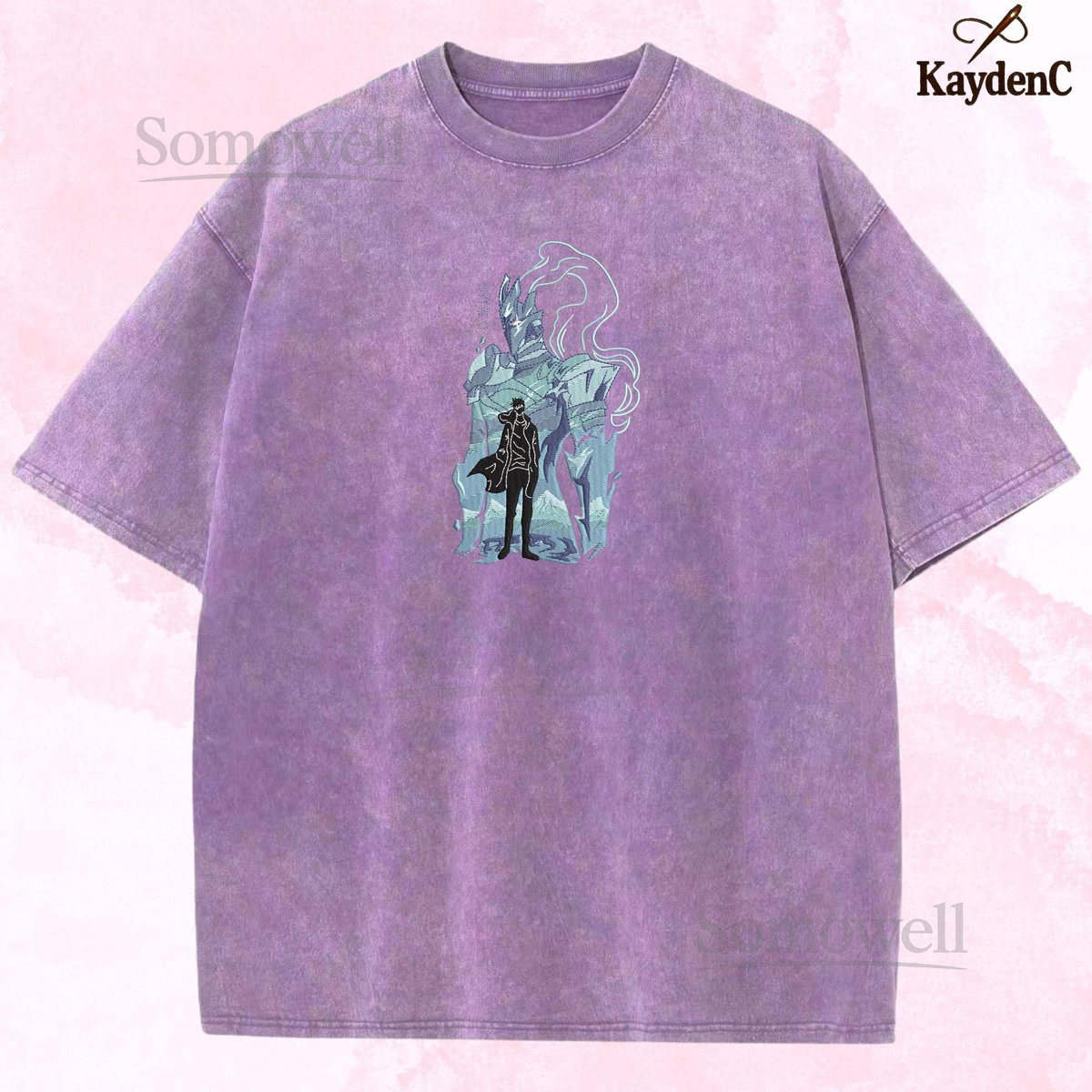 Embroidered Anime Washed Shirt I Alone Level Up-Inspired Design The Shadow Mornach Tshirt Double Dungeon Top Gift for Solo Level Lovers_44