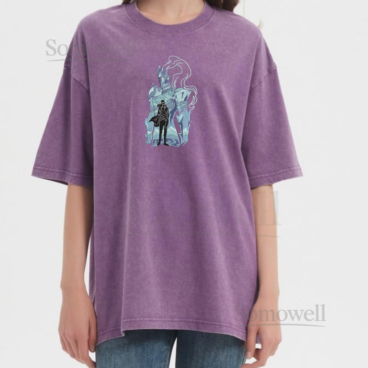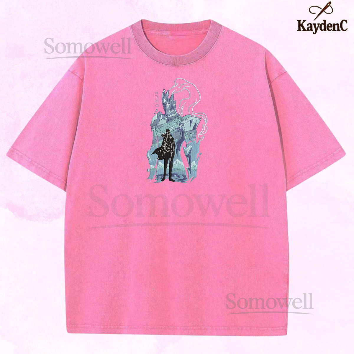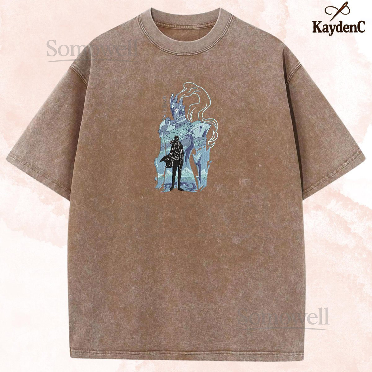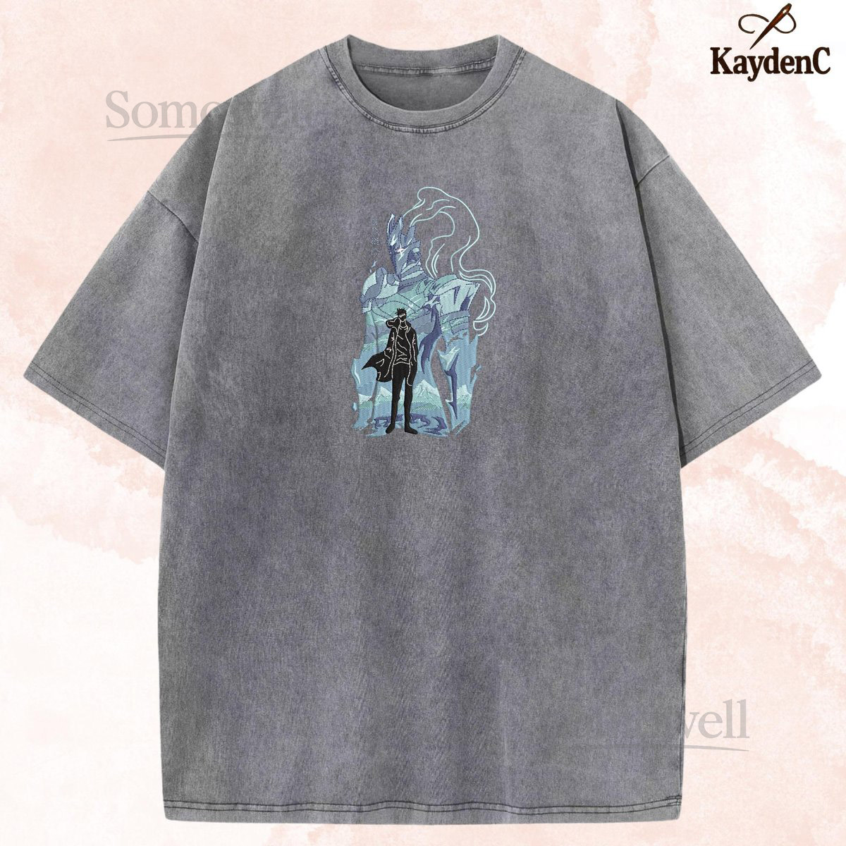 Embroidered Anime Washed Shirt I Alone Level Up-Inspired Design The Shadow Mornach Tshirt Double Dungeon Top Gift for Solo Level Lovers_44