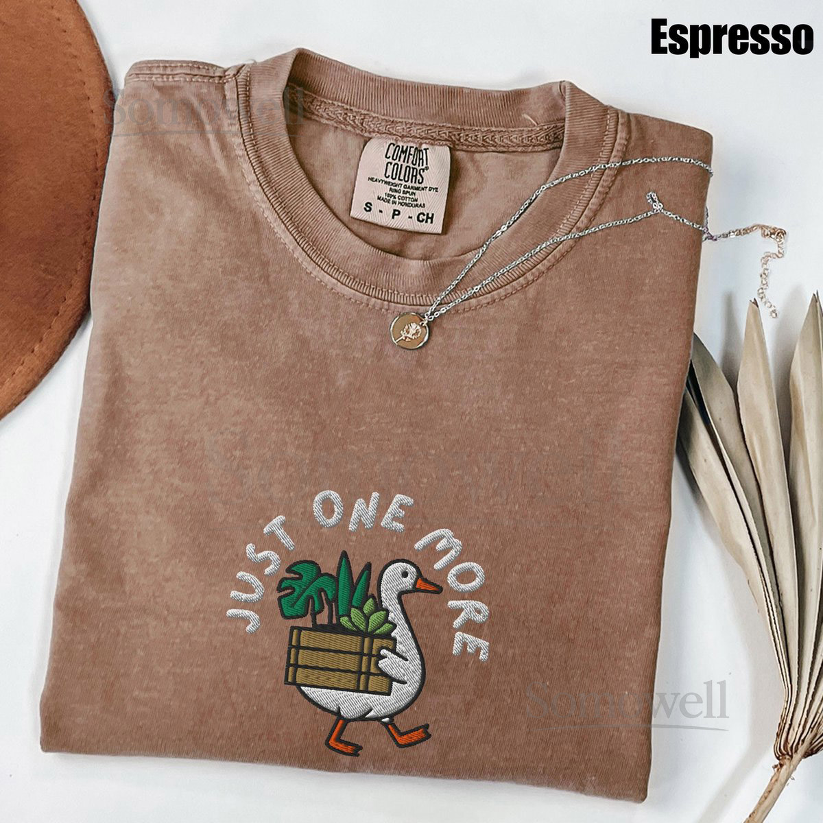 Embroidered Just One More Goose Comfort Colors Shirt Plant Lady Gift Tee Houseplant Lover Top Botanical Embroidery Nursery Outfit_77