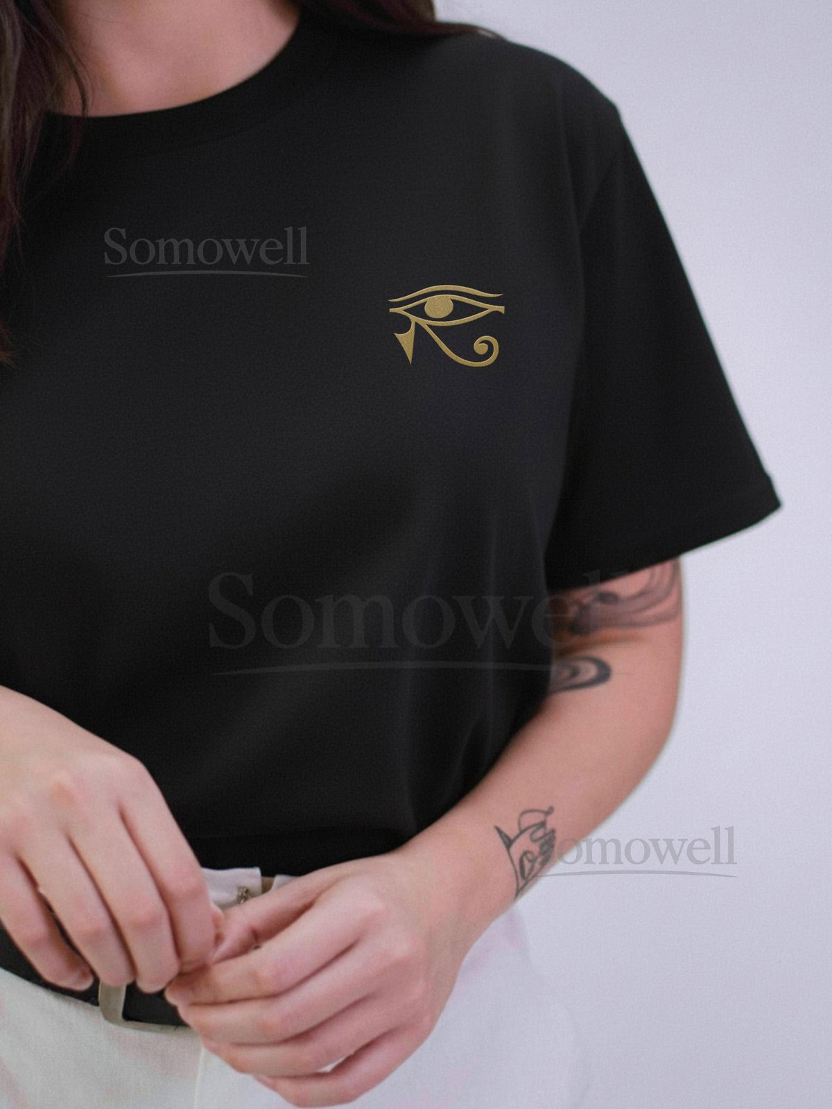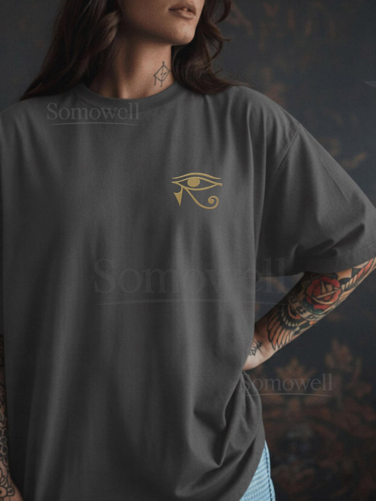 Eye of Horus Embroidered T-Shirt Ancient Egypt Protection Minimalist Spiritual Comfort Colors Shirt_109