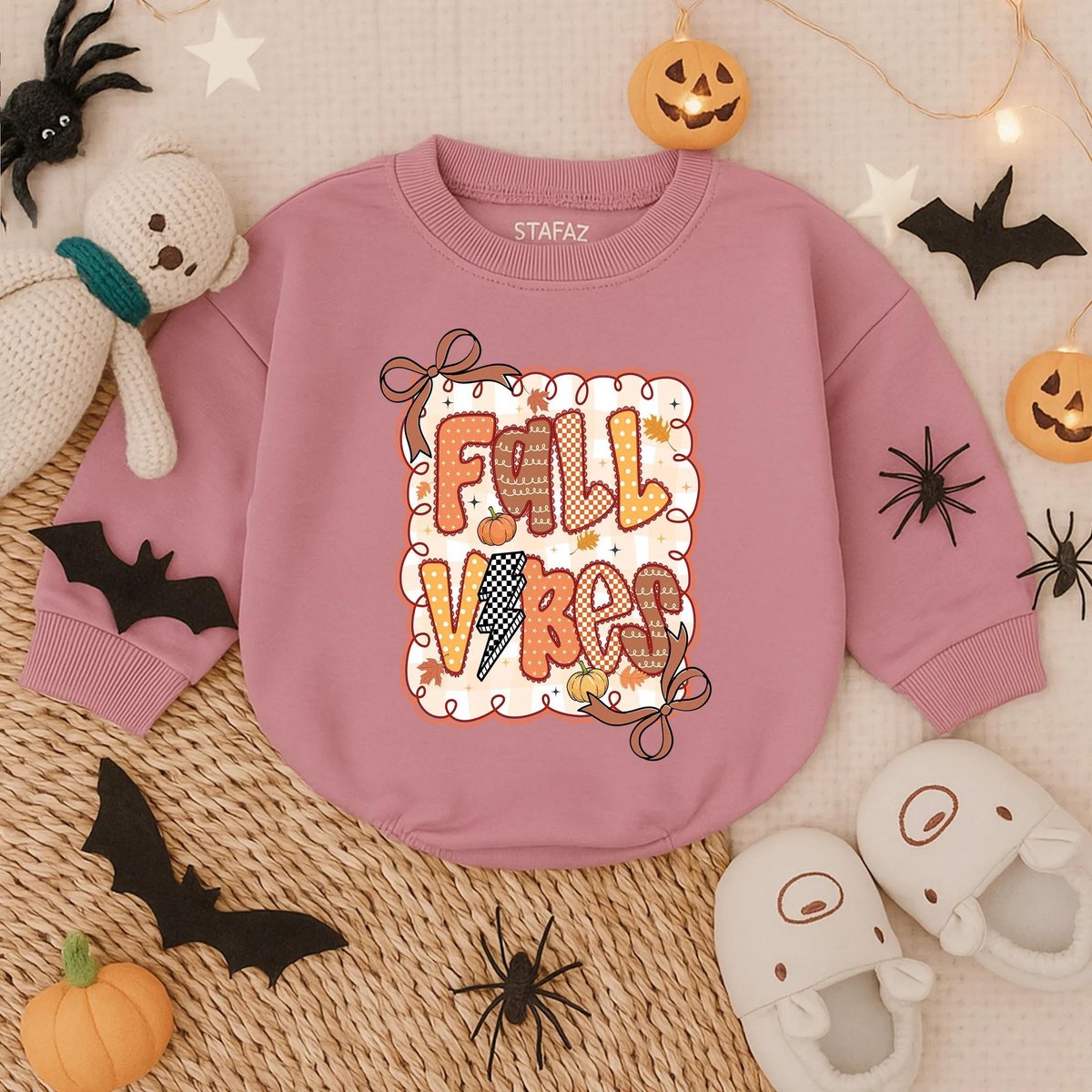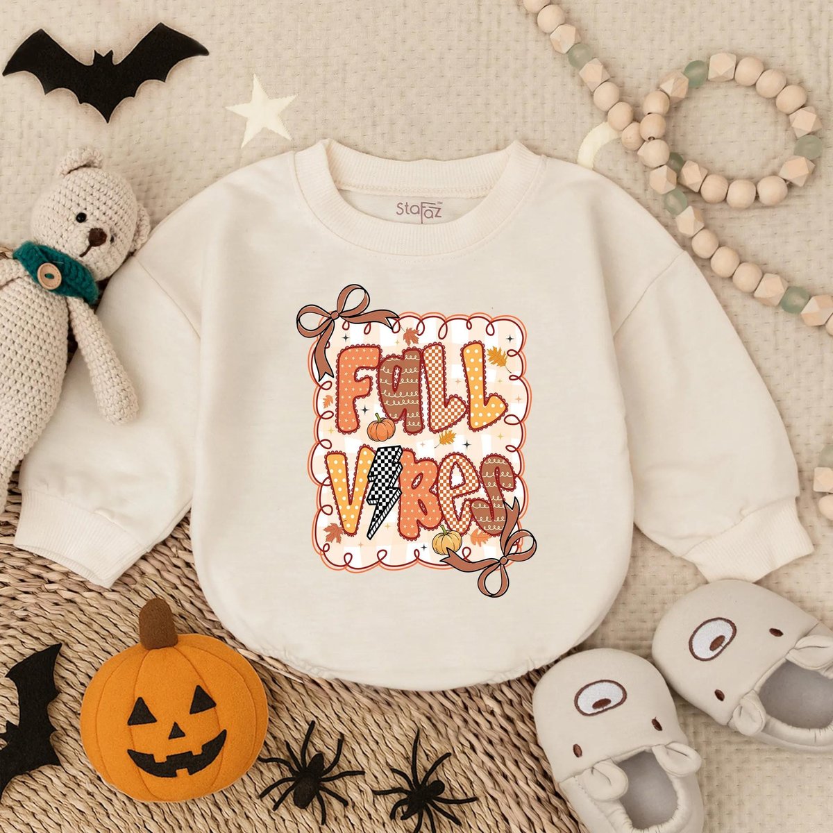 Fall Vibes Sweatshirt Bubble Romper Retro Autumn Oversized ShirtFall Baby OutfitAutumn Leaves Latte