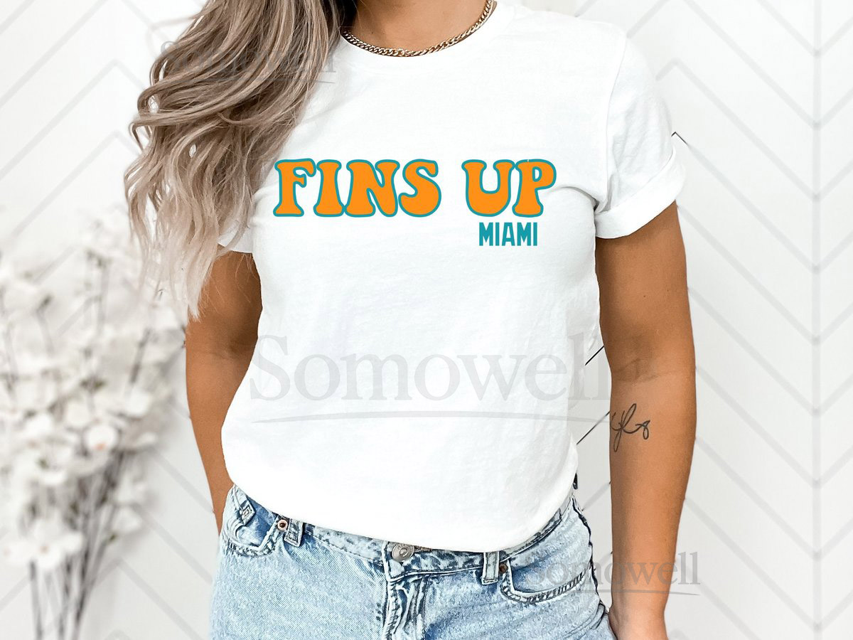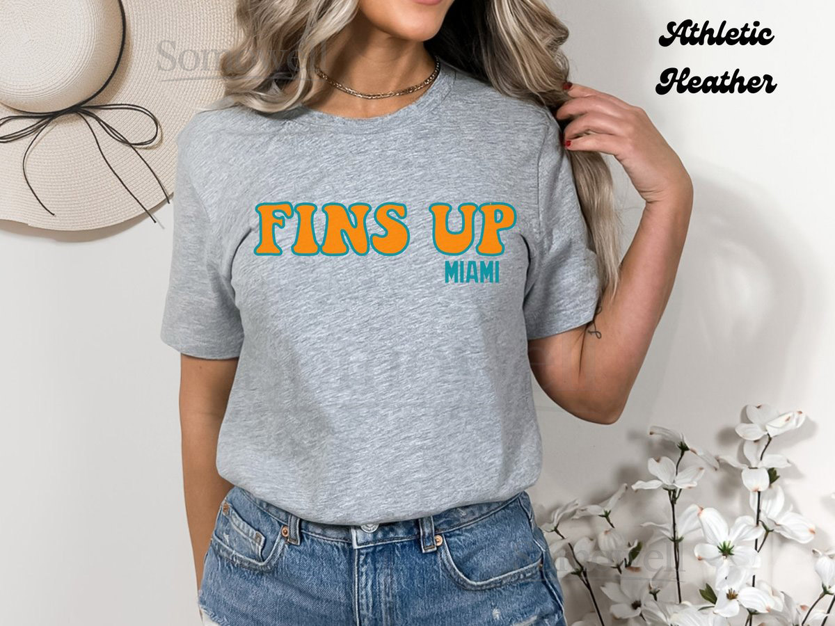 Fins Up Miami Dolphins Miami Bella Canvas 3001 Unisex Go Fins Many Color Options Can add custom name to back_314