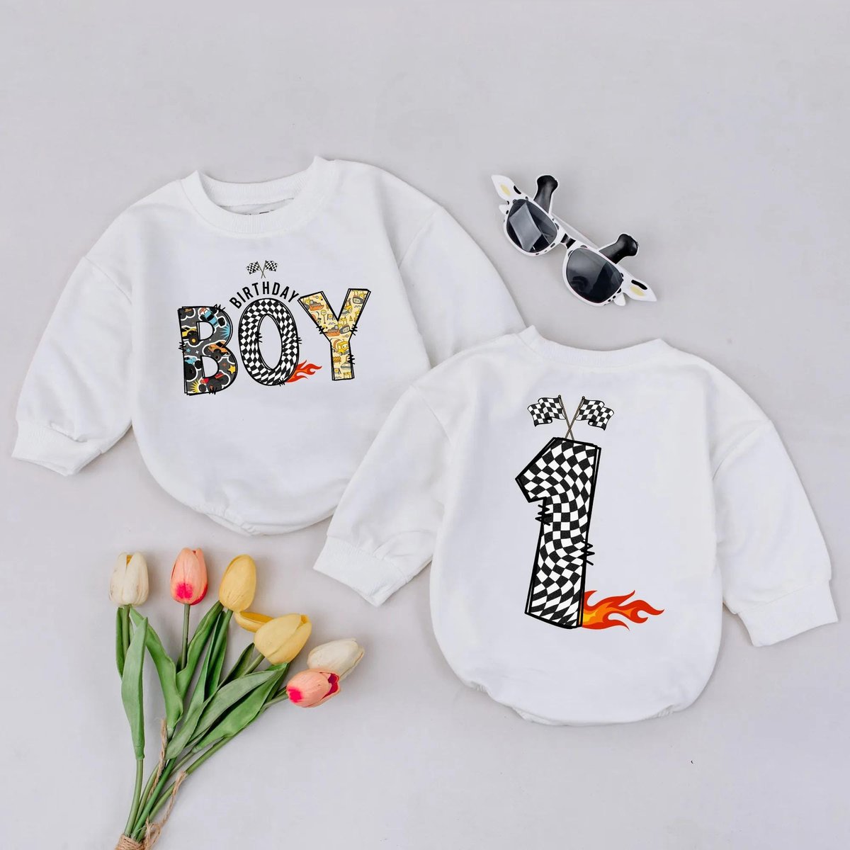 First Birthday Race Car Boy Romper Checkered Flag Toddler Outfit Race Theme Baby Clothes Newborn Rom 431