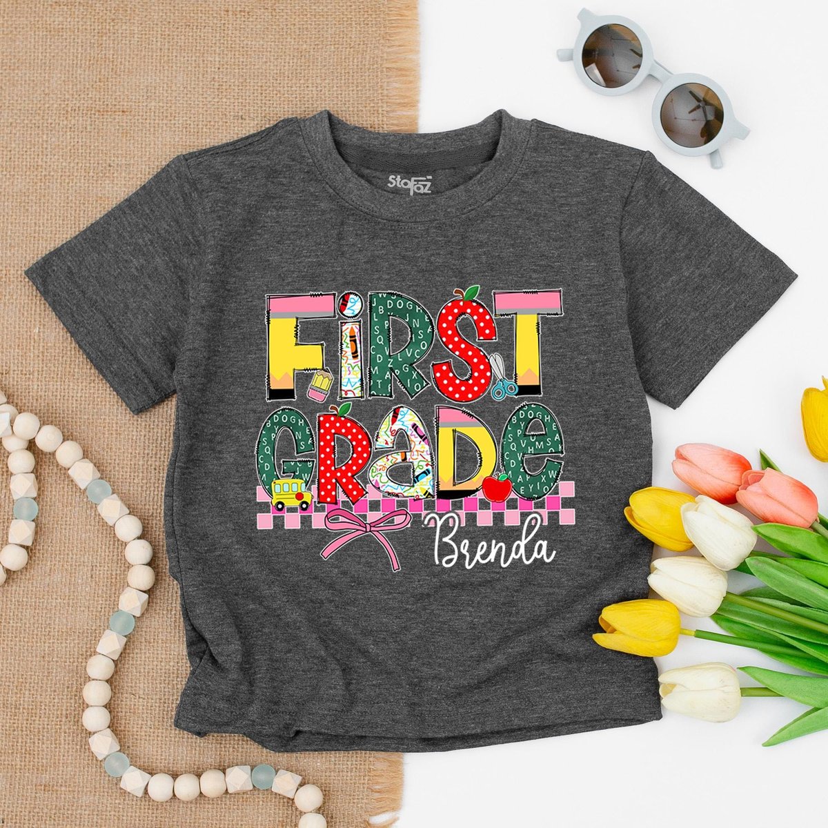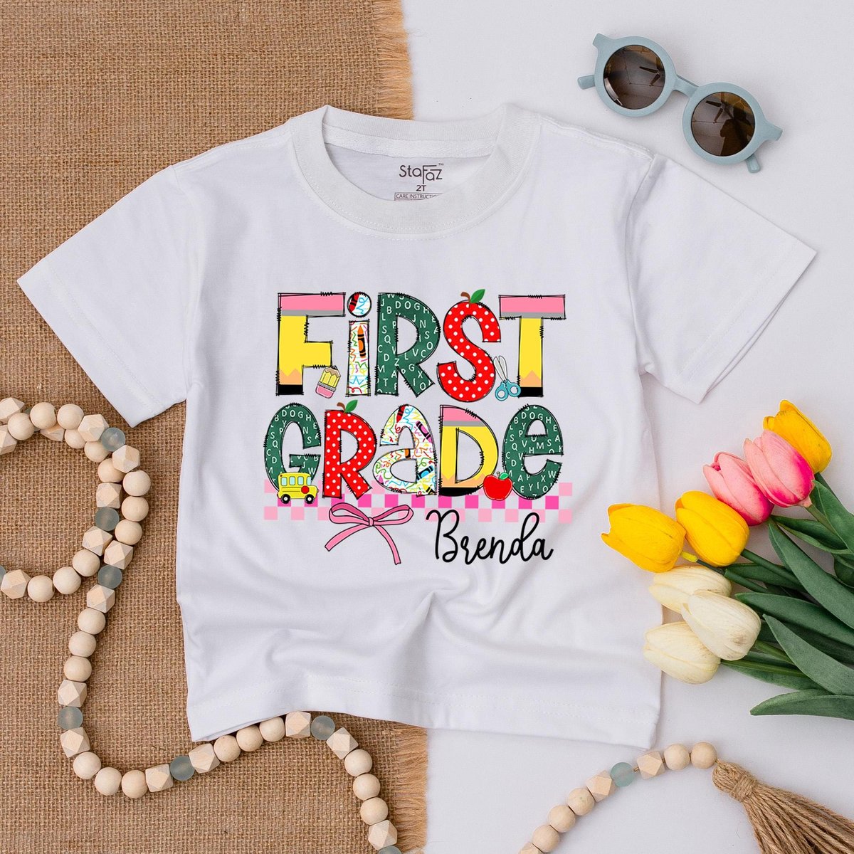 First Grade Shirt Girl Back to School Shirt 1st Grade Outfit Girl Personalized School Tee Custom Nam 429