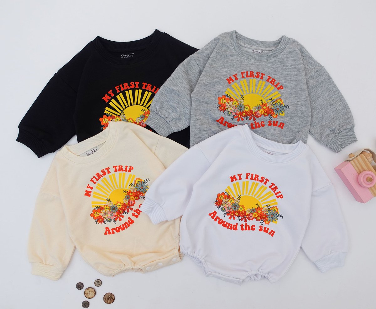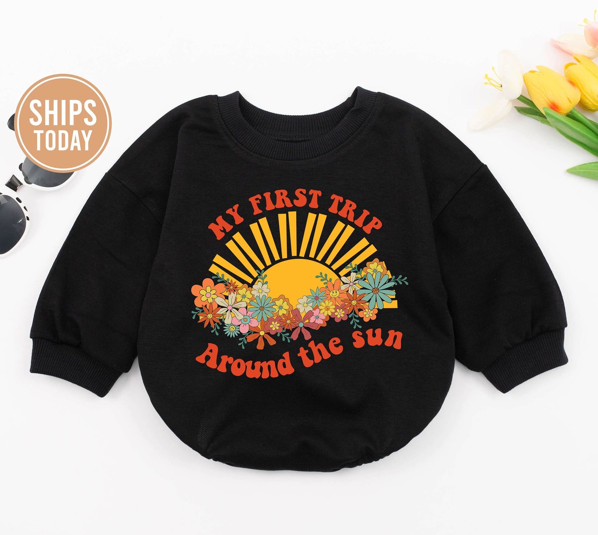 First Trip Around The Sun Romper Retro One Year Old Bodysuit First Birthday Natural Clothes Birthday 148