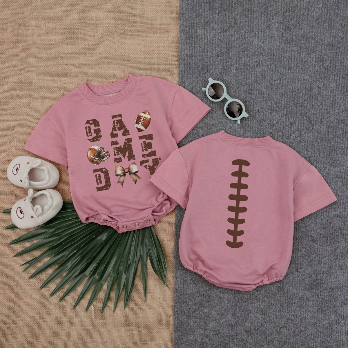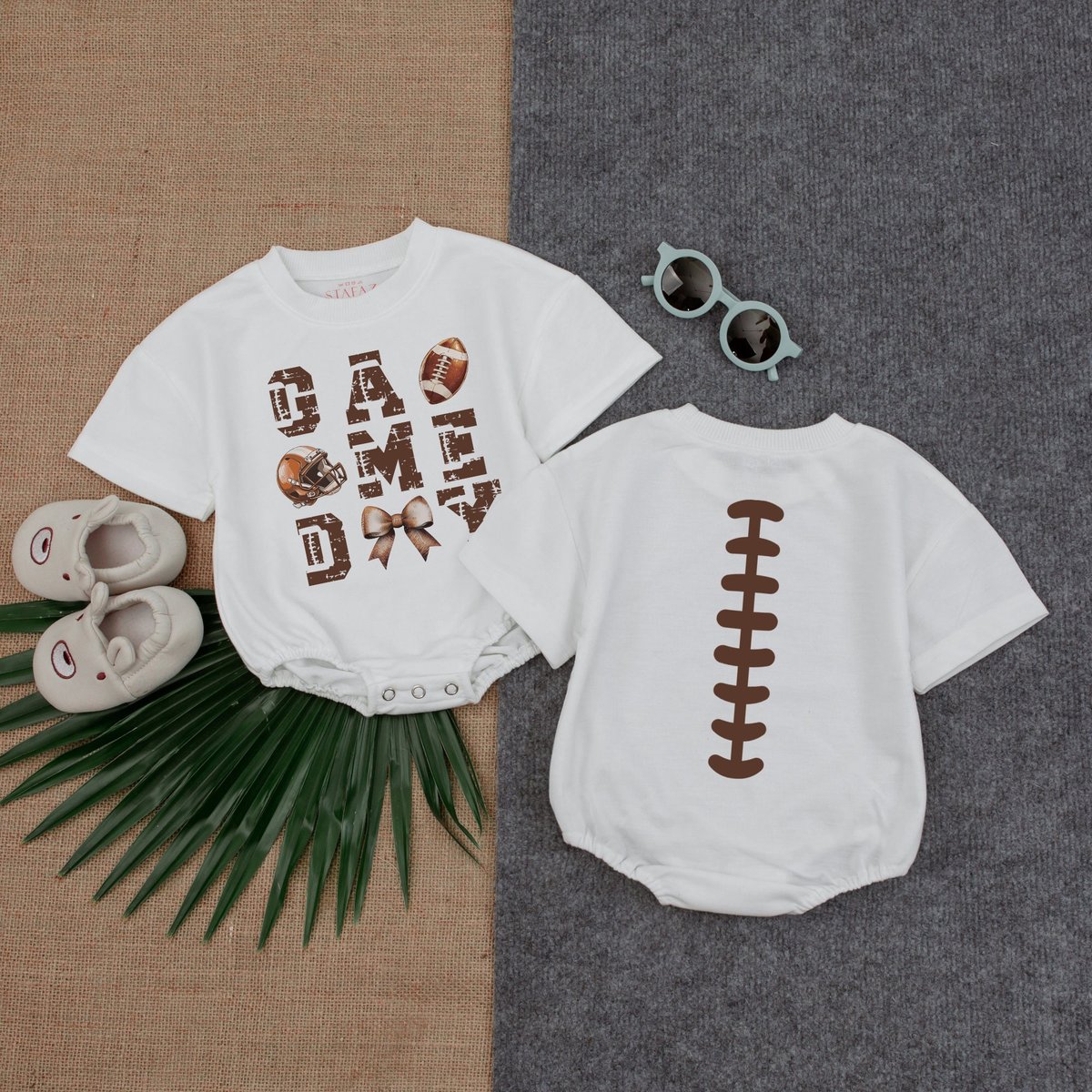 Football Laces Bow Bubble Romper Gameday BirthdayFootball Game Baby Gameday Outfit Baby Clothes Shor 178