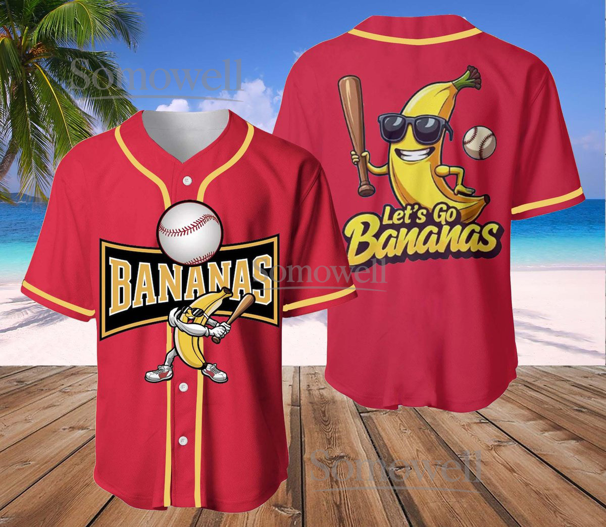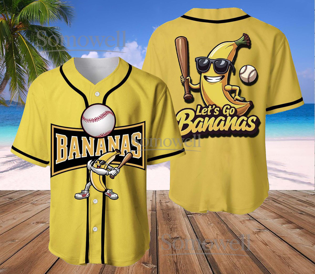 Funny Banana Baseball Jersey Let’s Go Bananas Cartoon Character Custom Team Shirt
