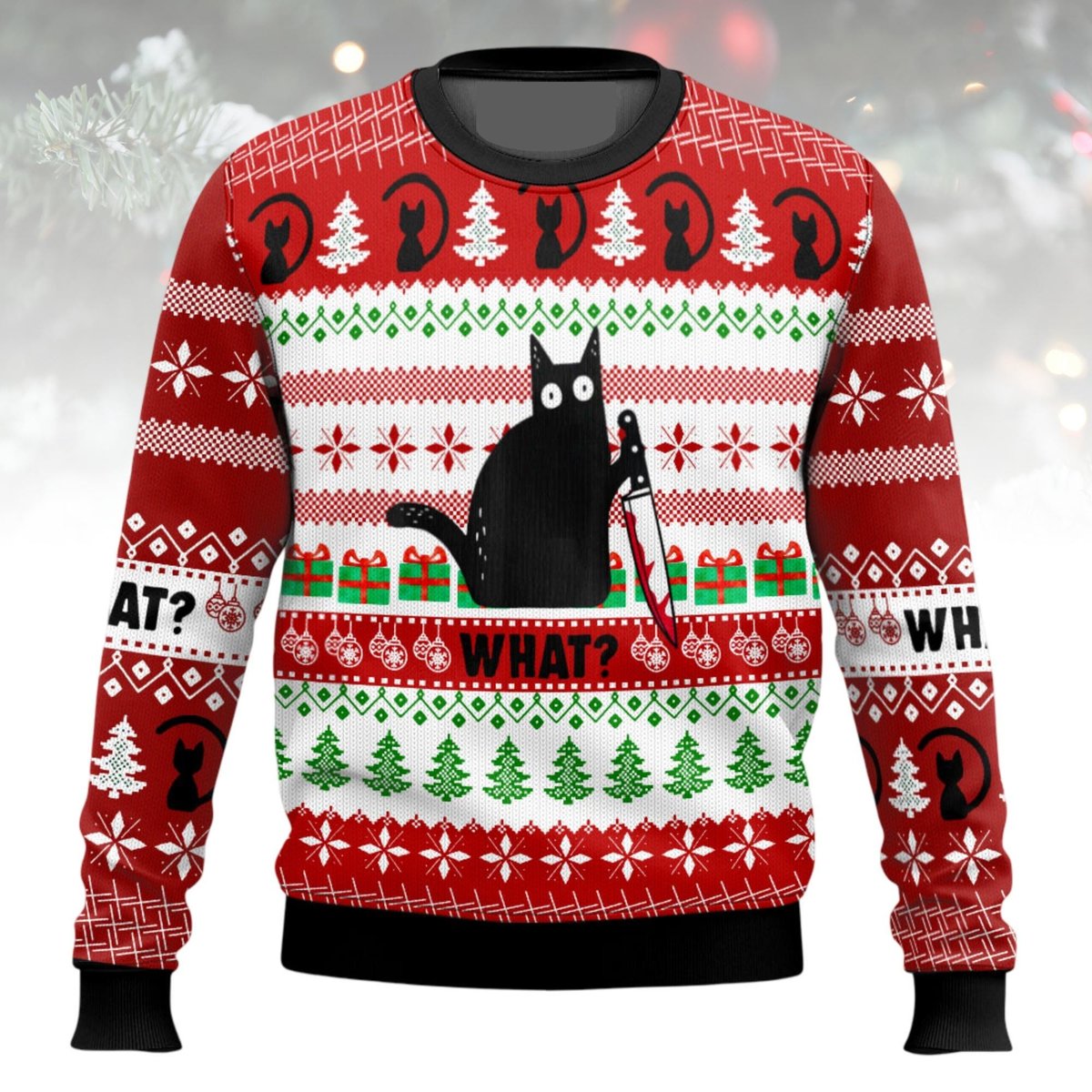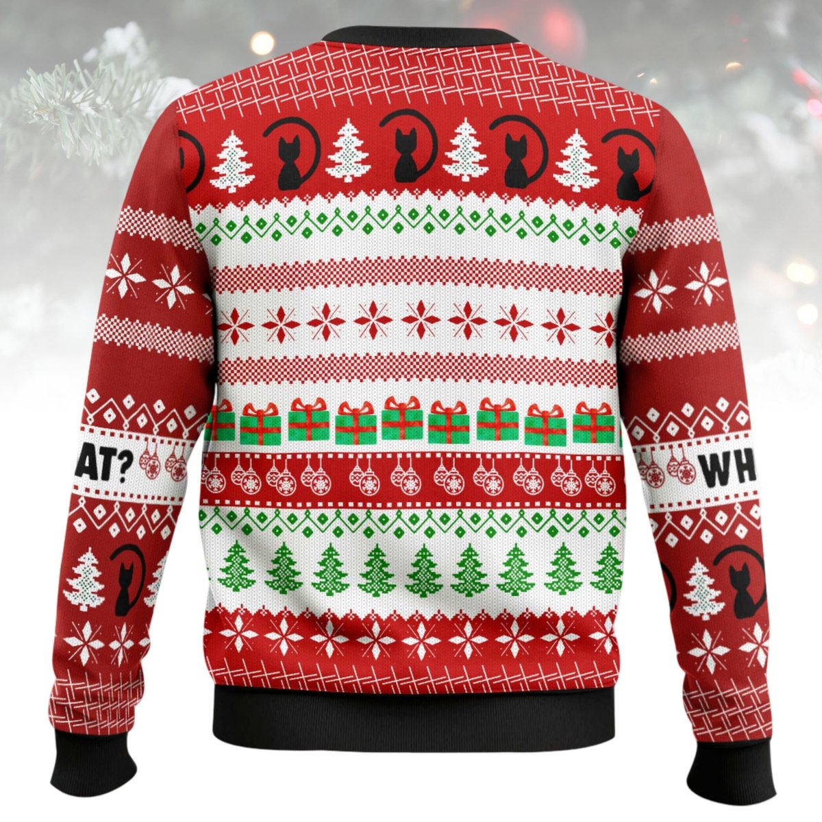 Funny Cat What Meme Ugly Christmas Sweater Red Green Holiday Jumper