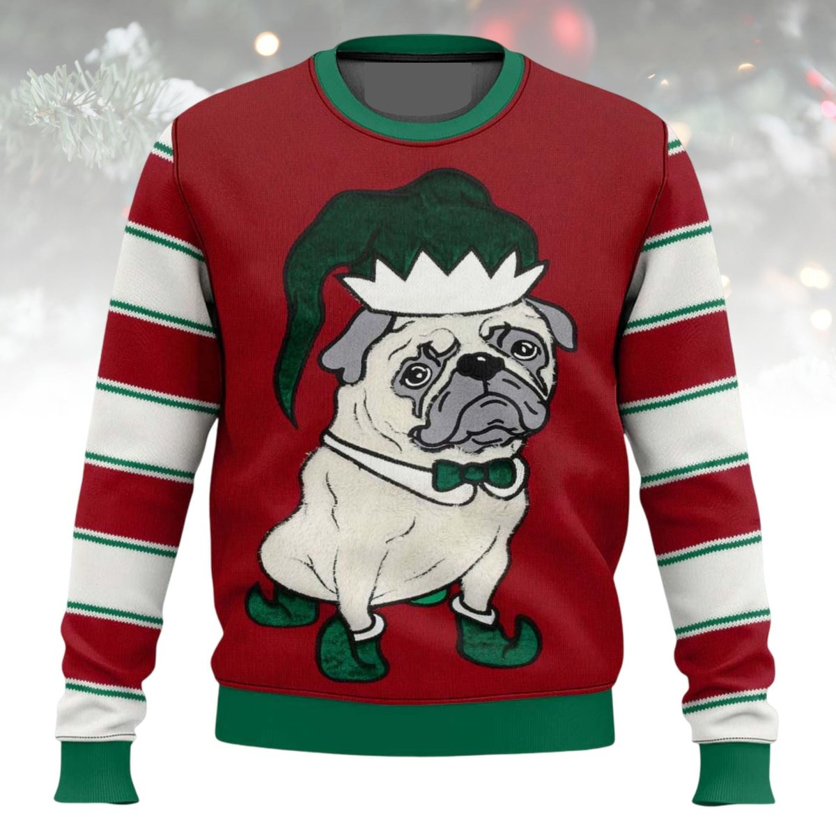 Funny Pug Dog Family Matching Red Ugly Christmas Sweater Holiday Knit Gift