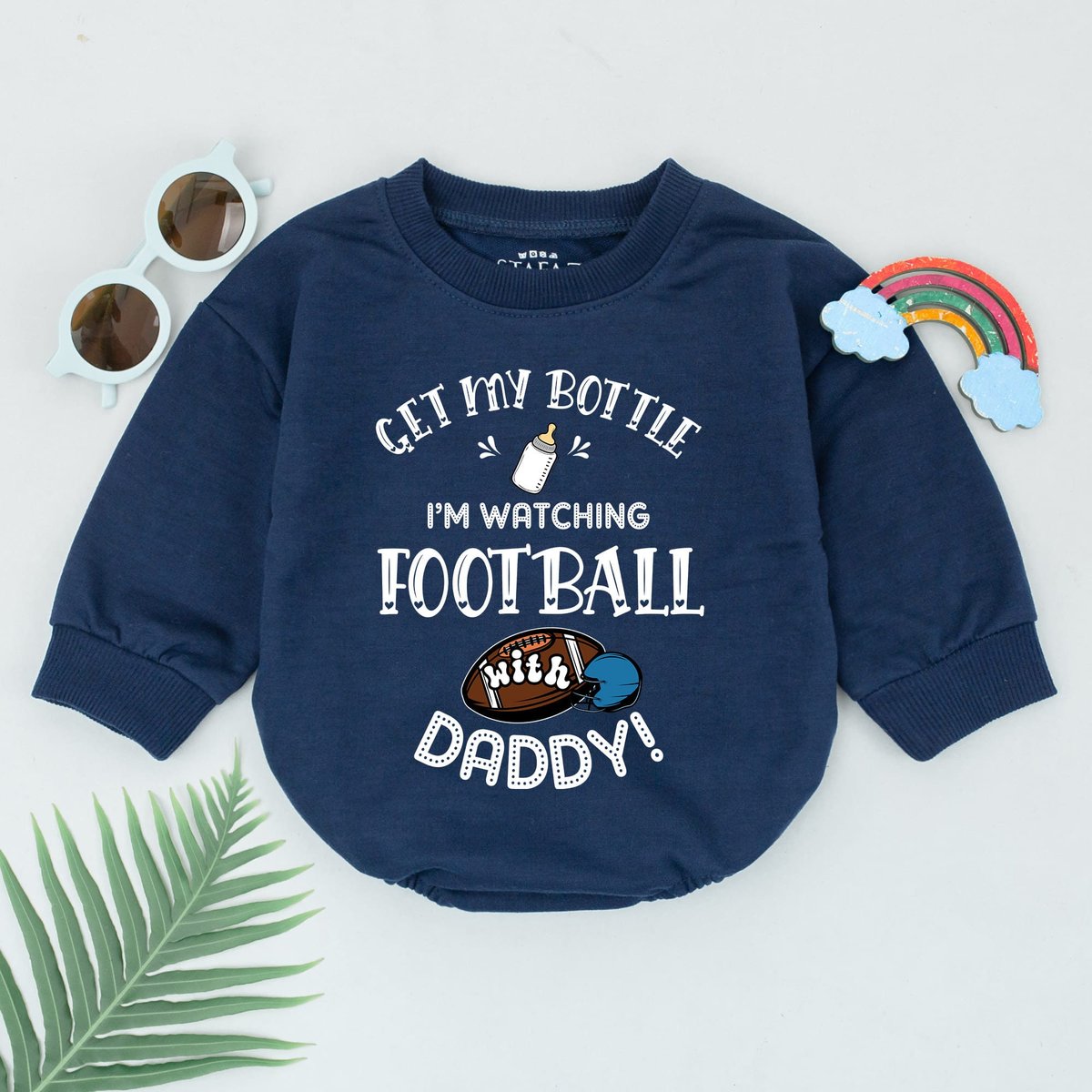 Get My Bottle I’m Watching Football With Daddy Romper Football Baby Gift Father’s Day Outfit Baby