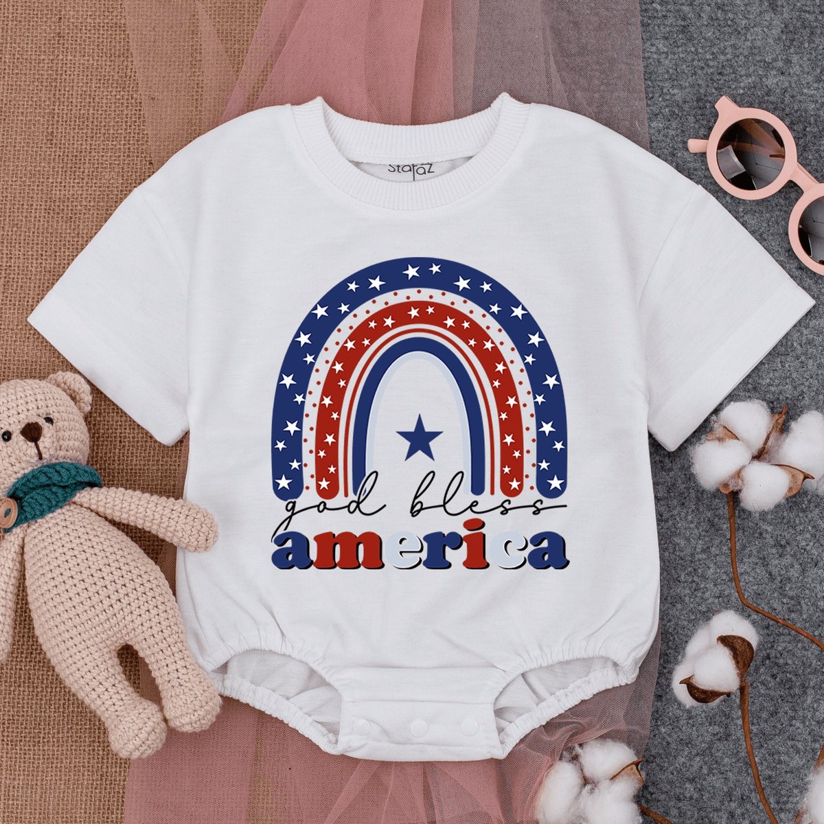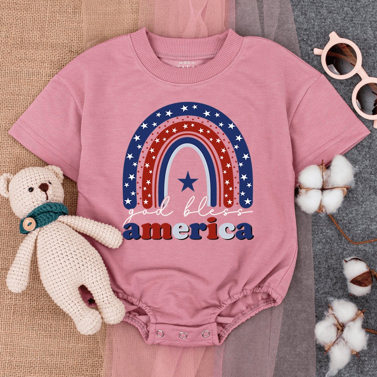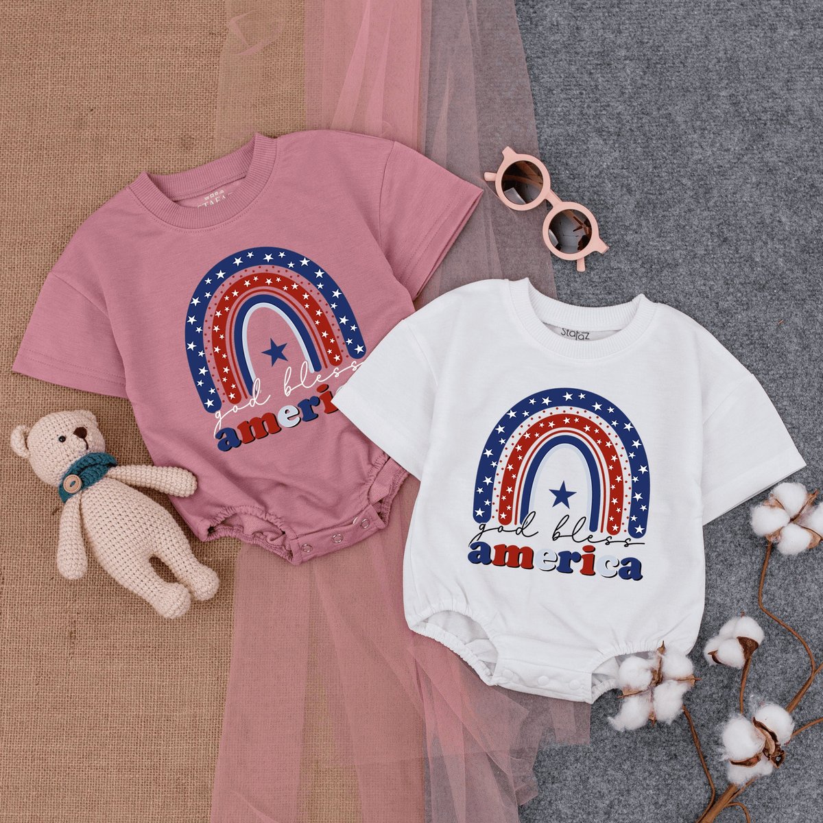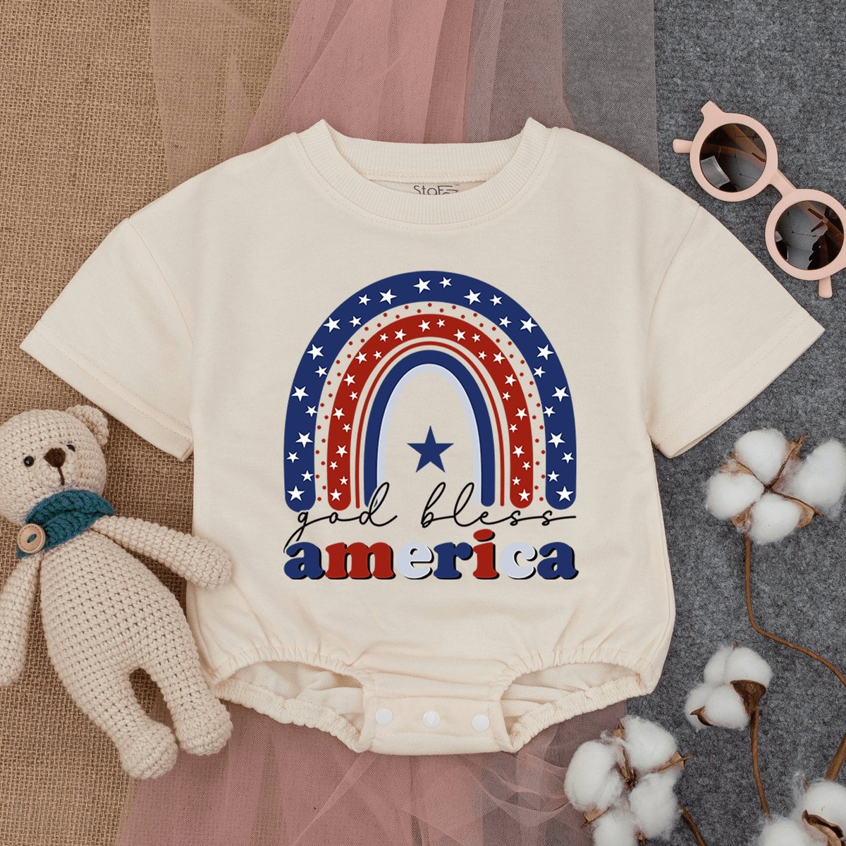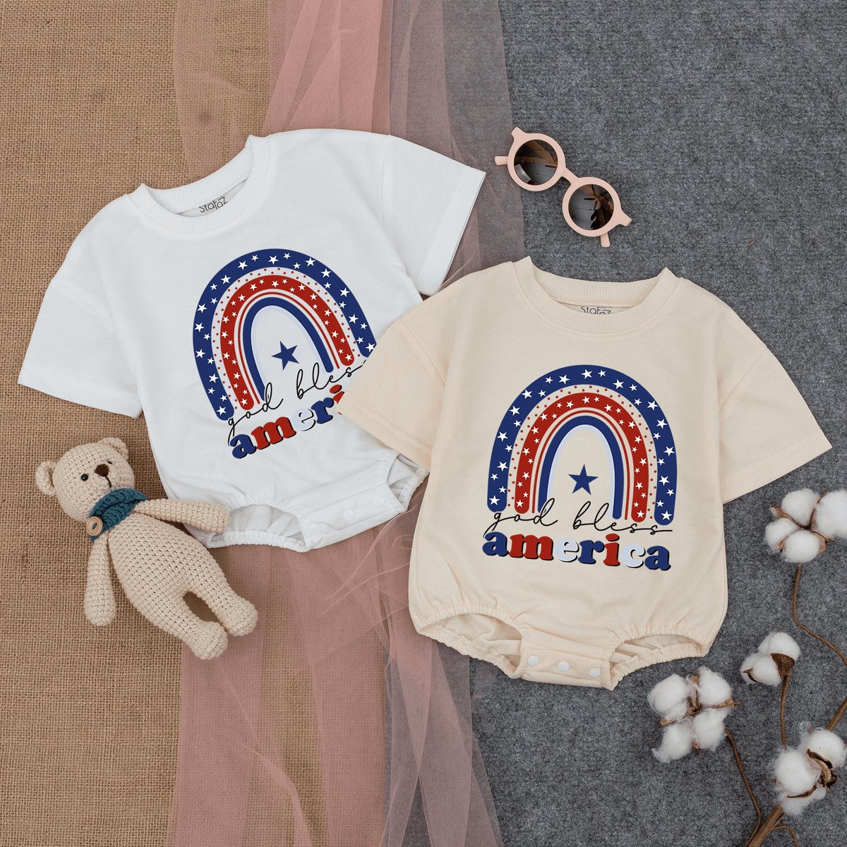 God Bless America Baby Romper Short Sleeve Retro Patriotic Bodysuit Cute Fourth of July Baby Baby 167