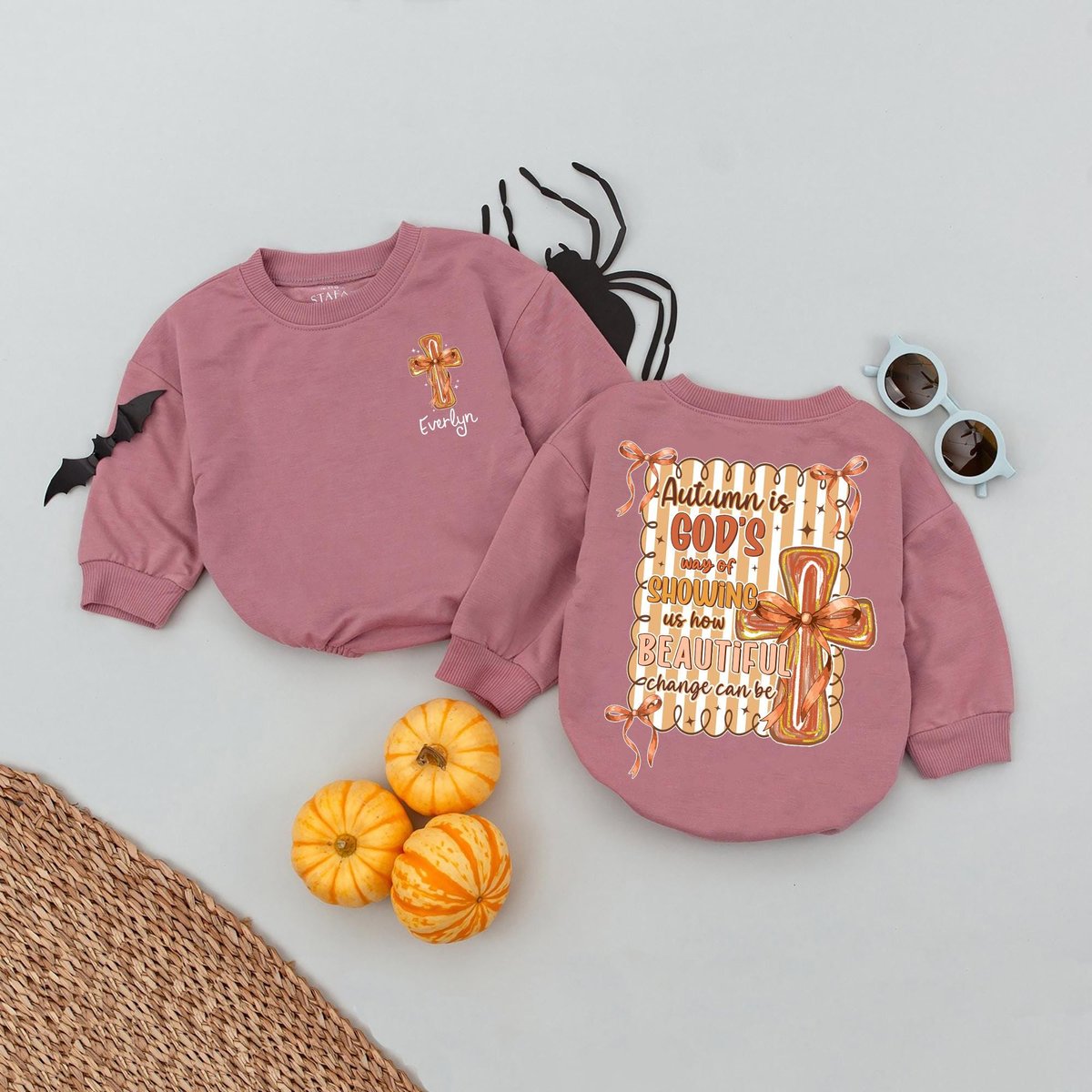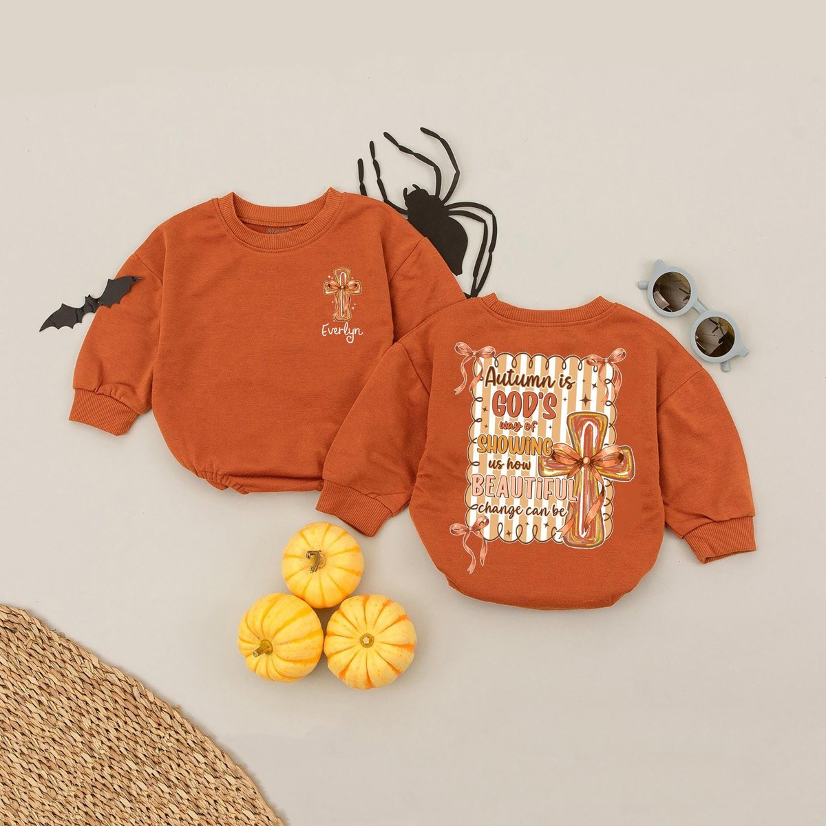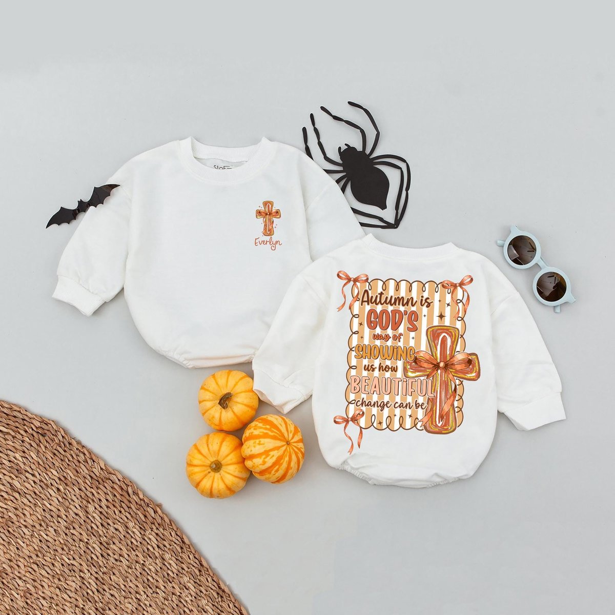 God’s Way of Showing Us Fall Bubble Romper Autumn Christian with Cross and Bow Christian Faith-Base