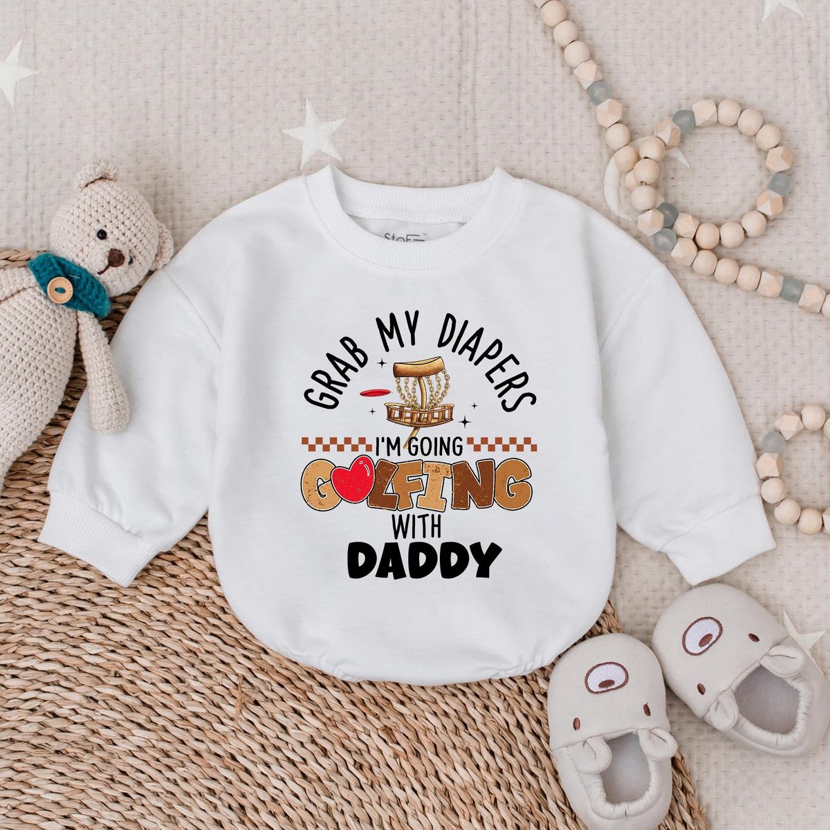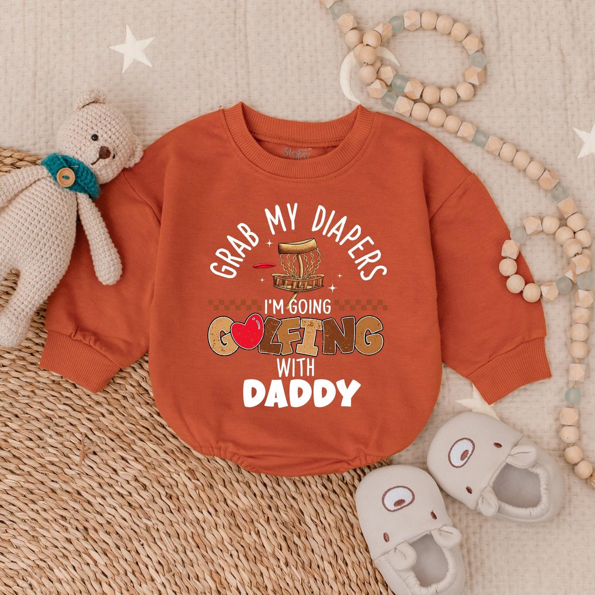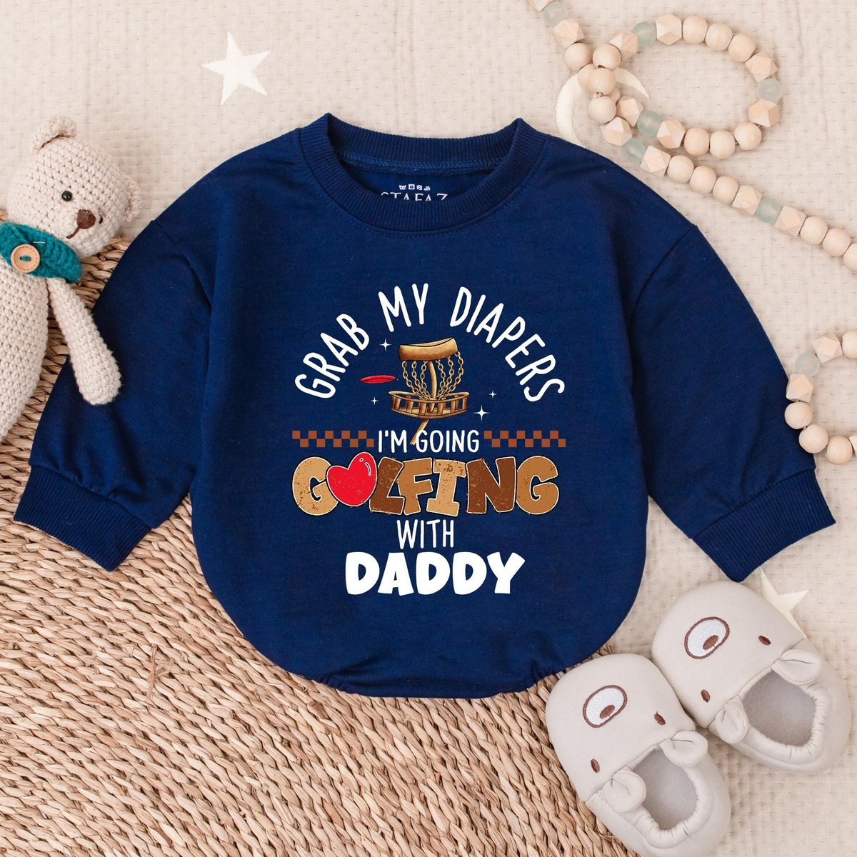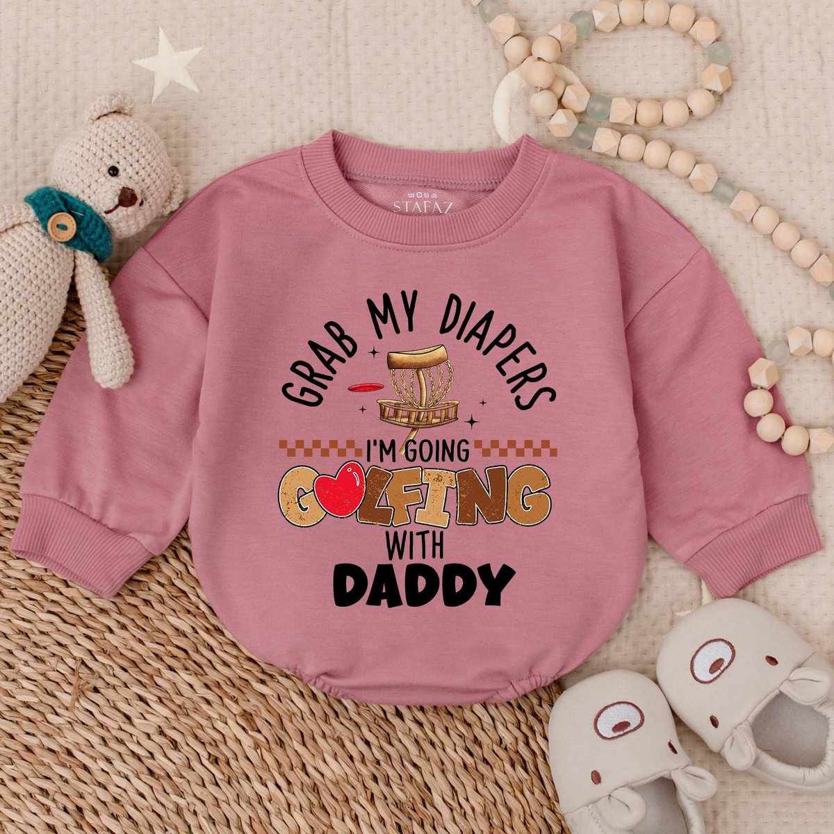 Grab My Diapers I’m Going Golfing With Daddy Golfing Baby Bubble Romper Funny Father’s Baby Clothe