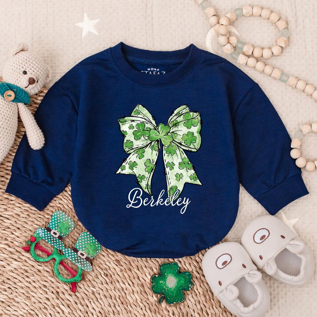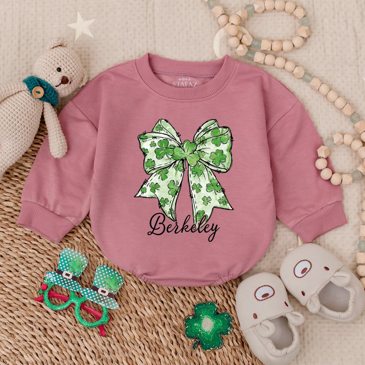Green Bow St Patrick’s Day Bubble Romper Lucky Shamrock St Patrick’s Day Bodysuit Clover Baby Outf