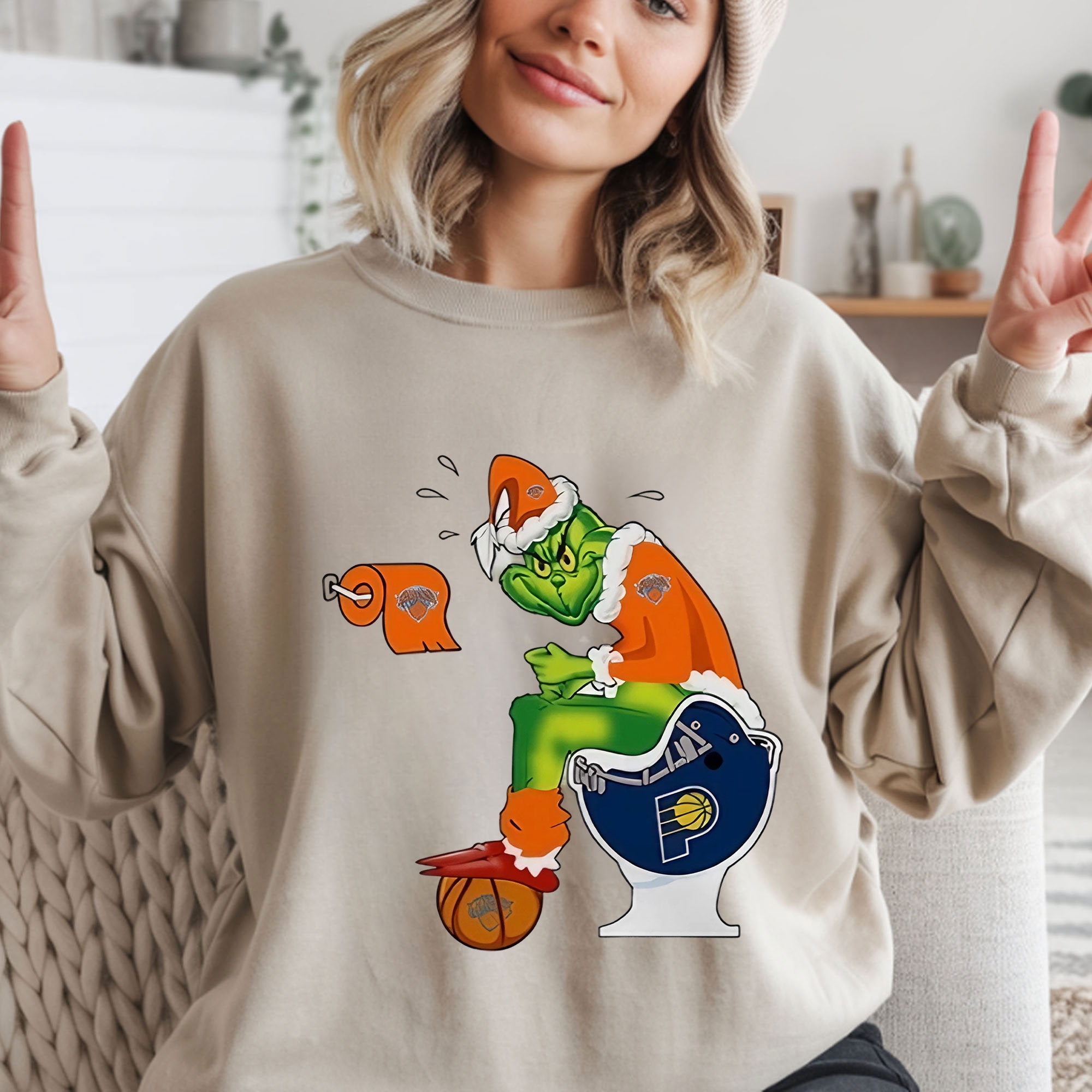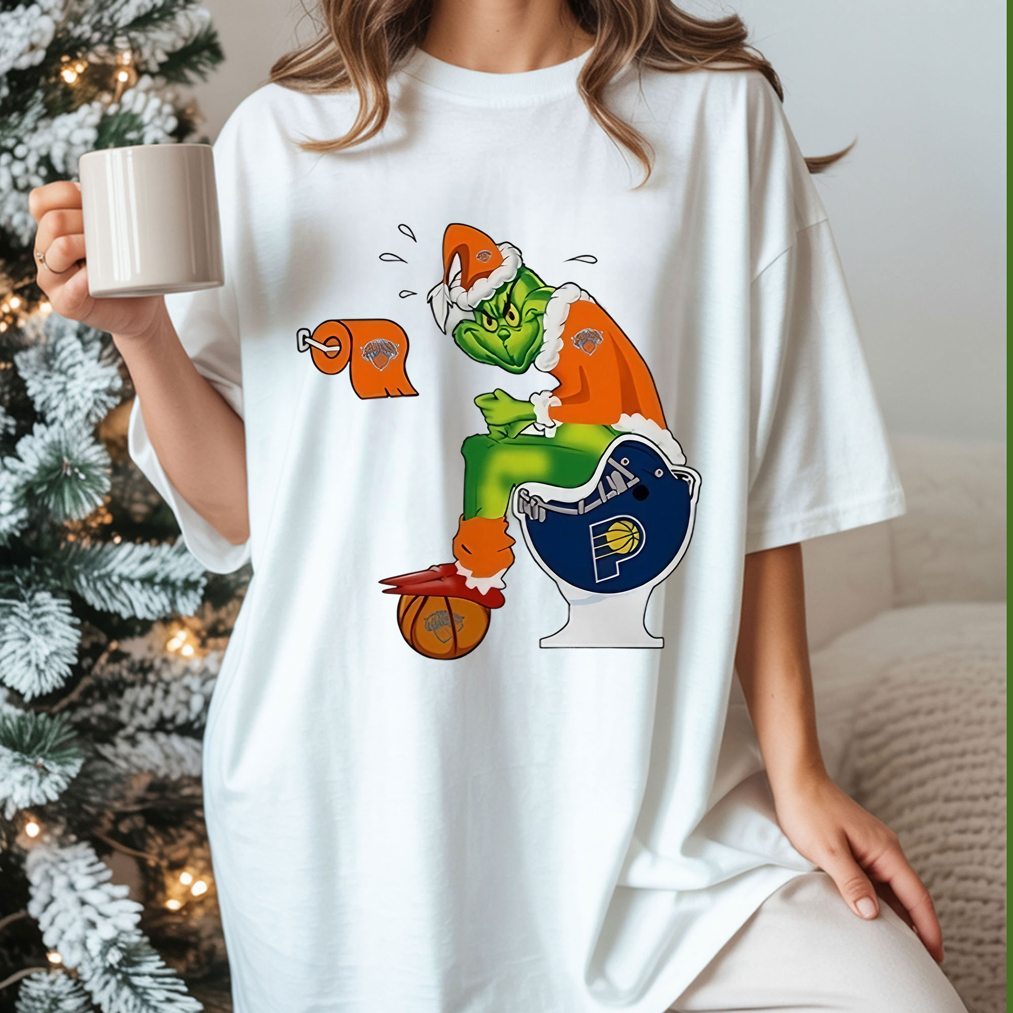 Grinch Meme New York Knicks 2025 NBA Finals T-Shirt – Funny Knicks vs Pacers Toilet Helmet Rivalry Vintage Bootleg Christmas Tee