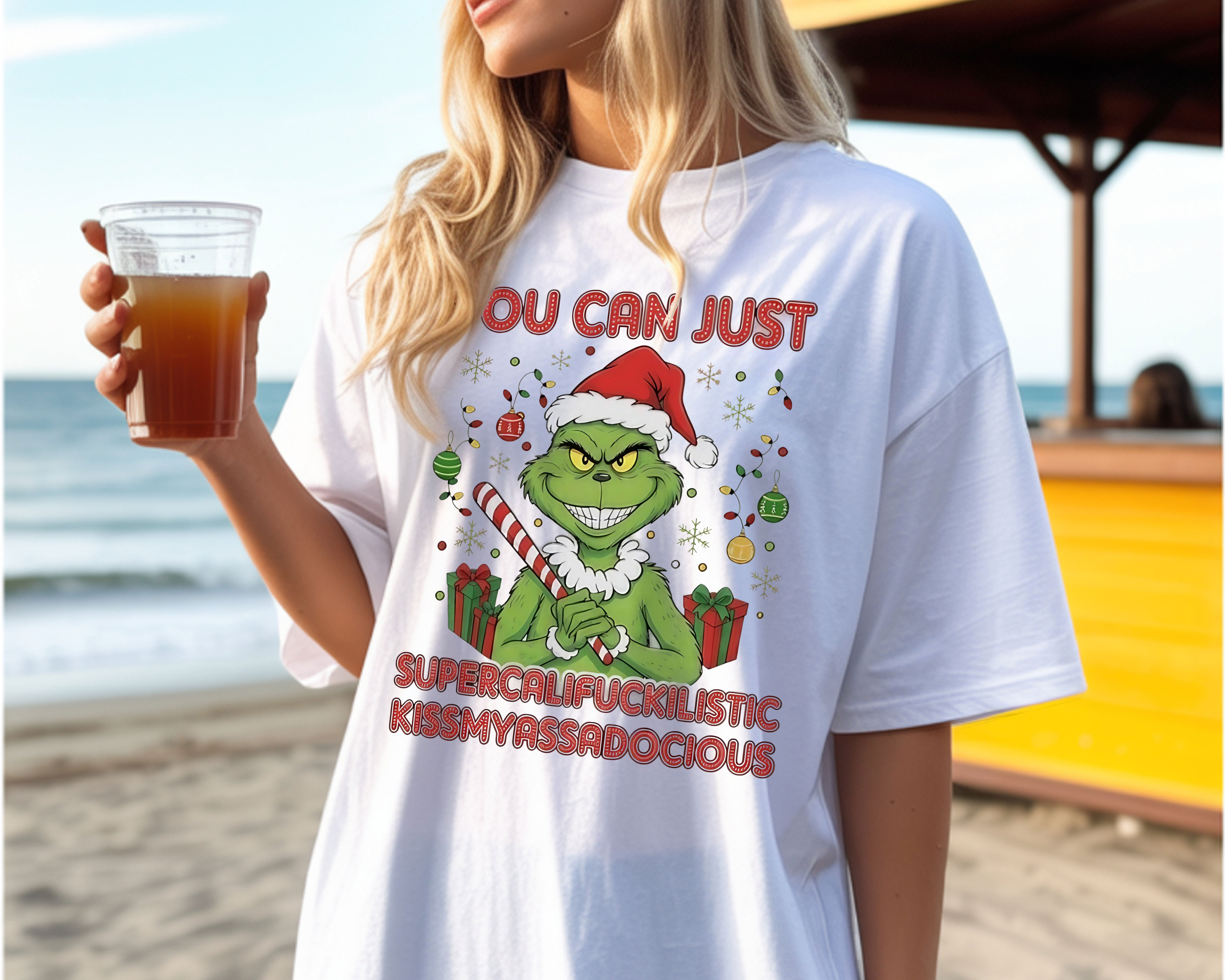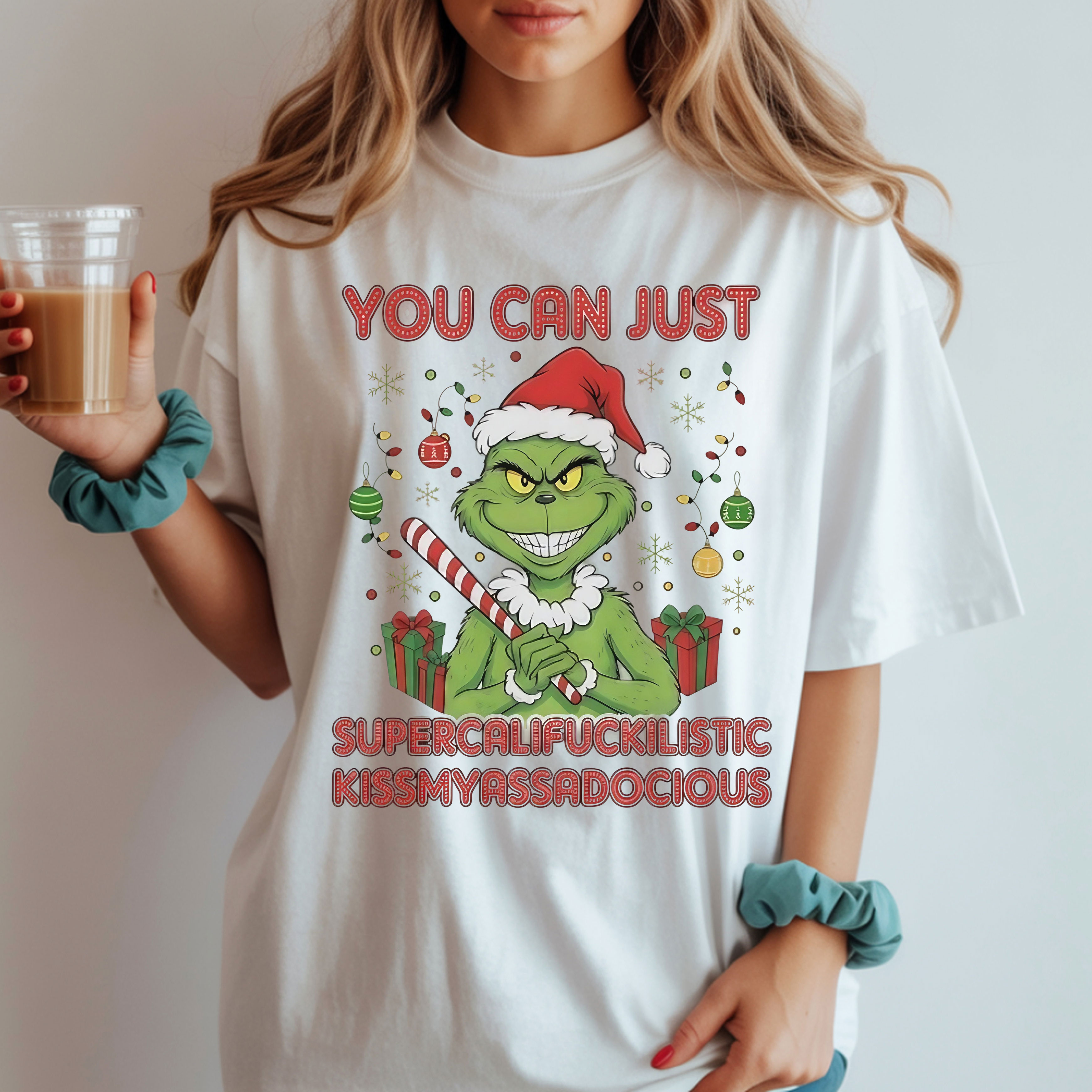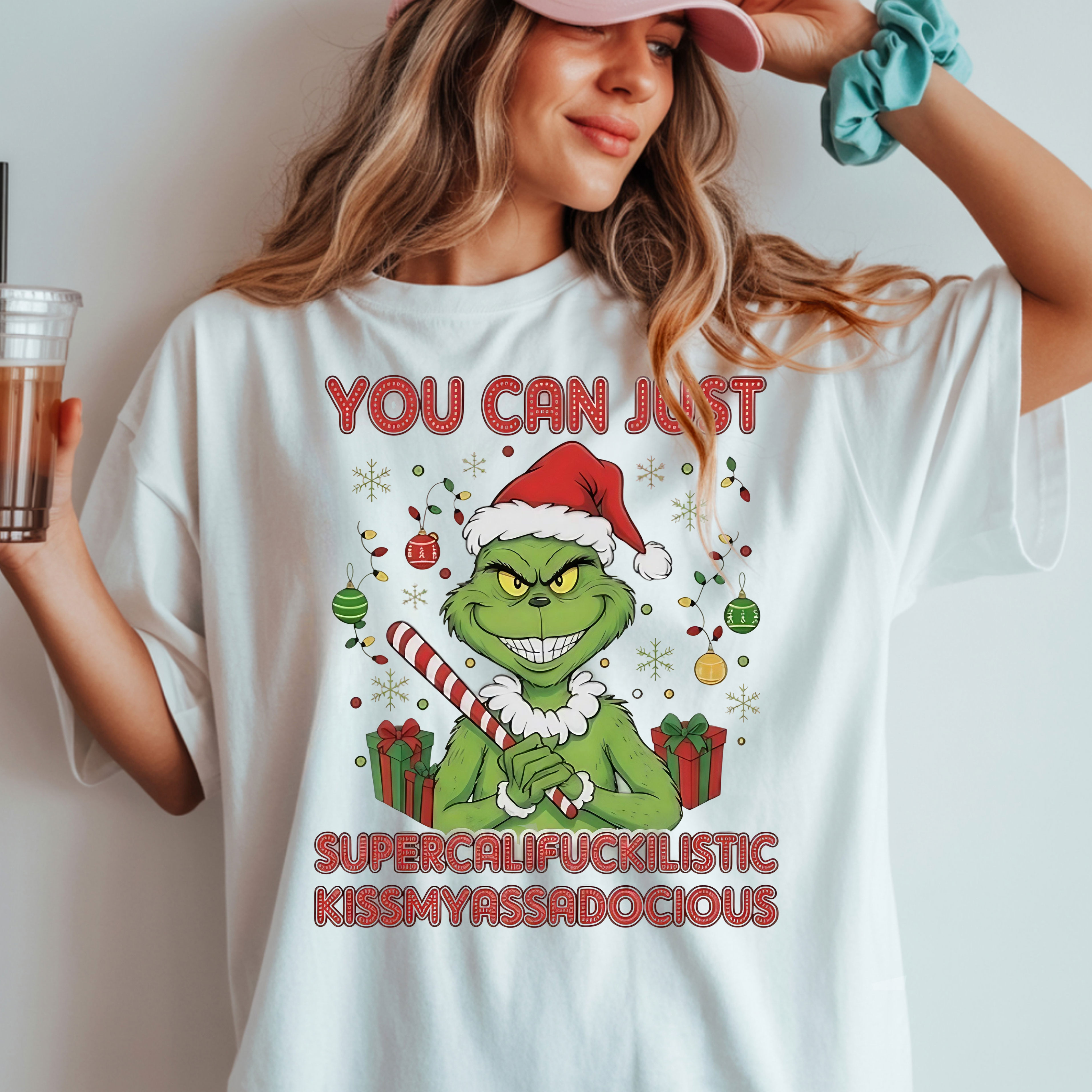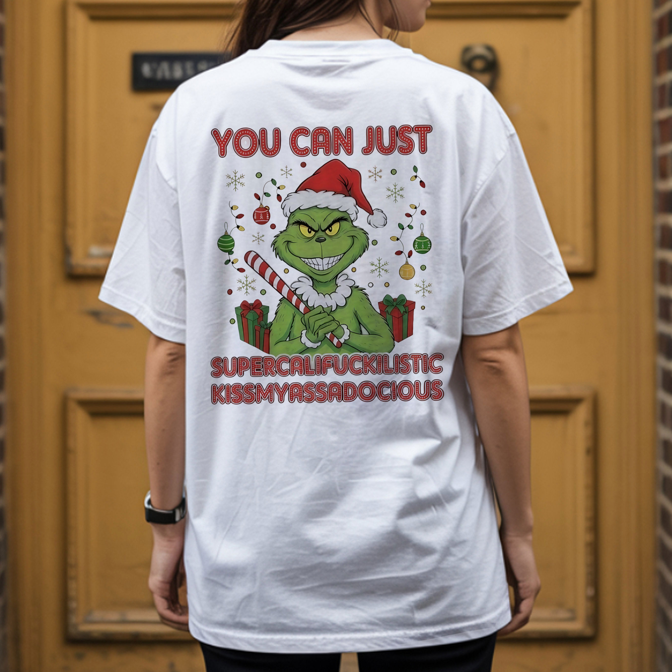Grinch Quote Christmas T-Shirt – Funny Supercalifuckilistic Kissmyassadocious Vintage Bootleg Holiday Tee