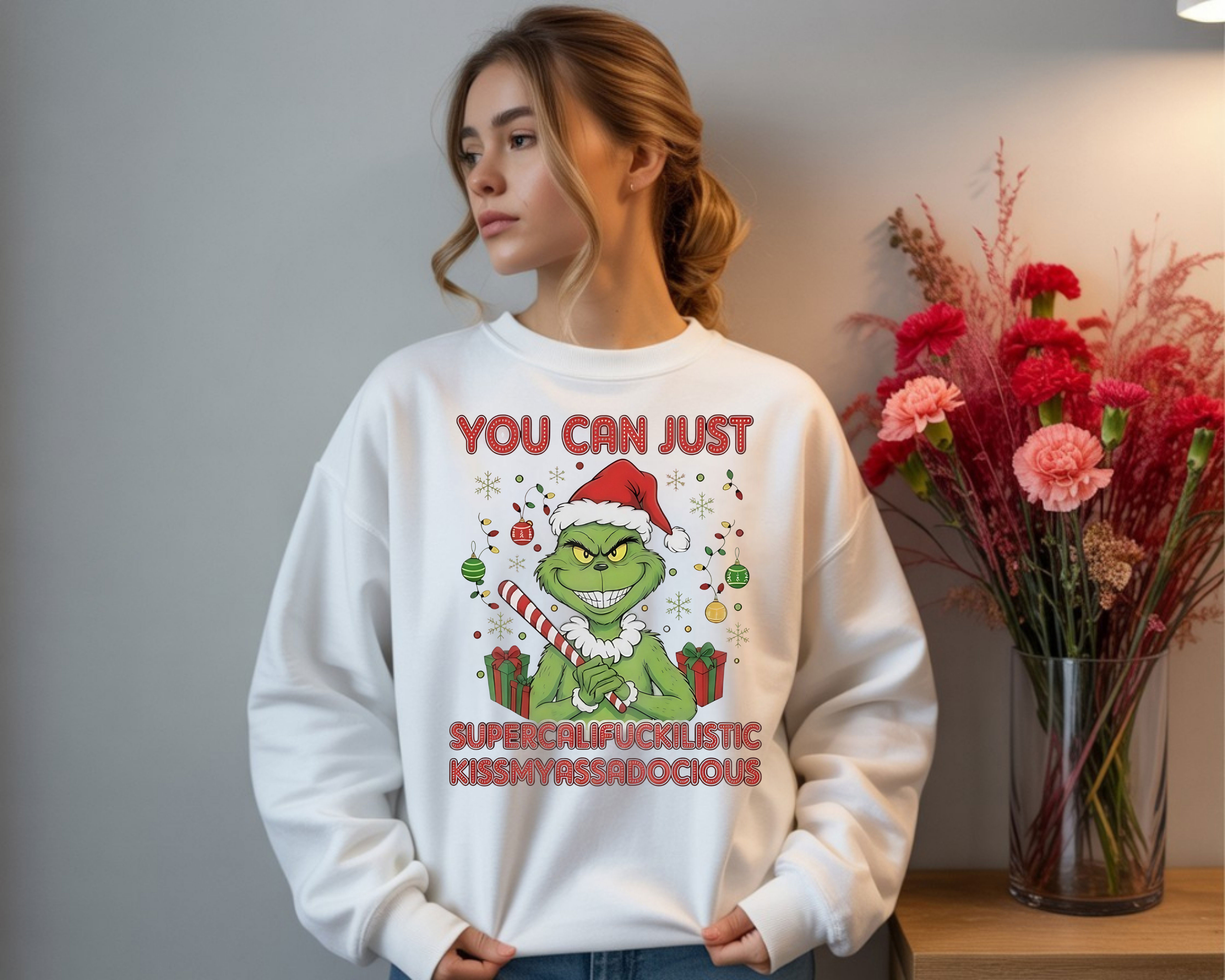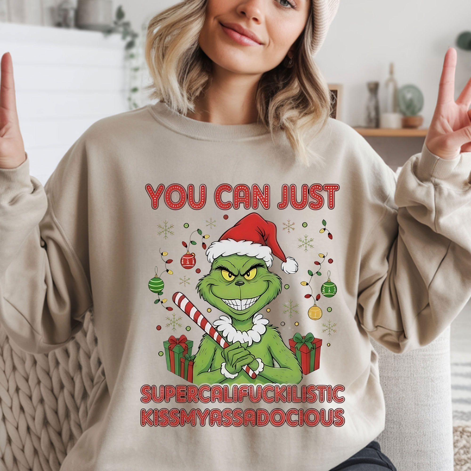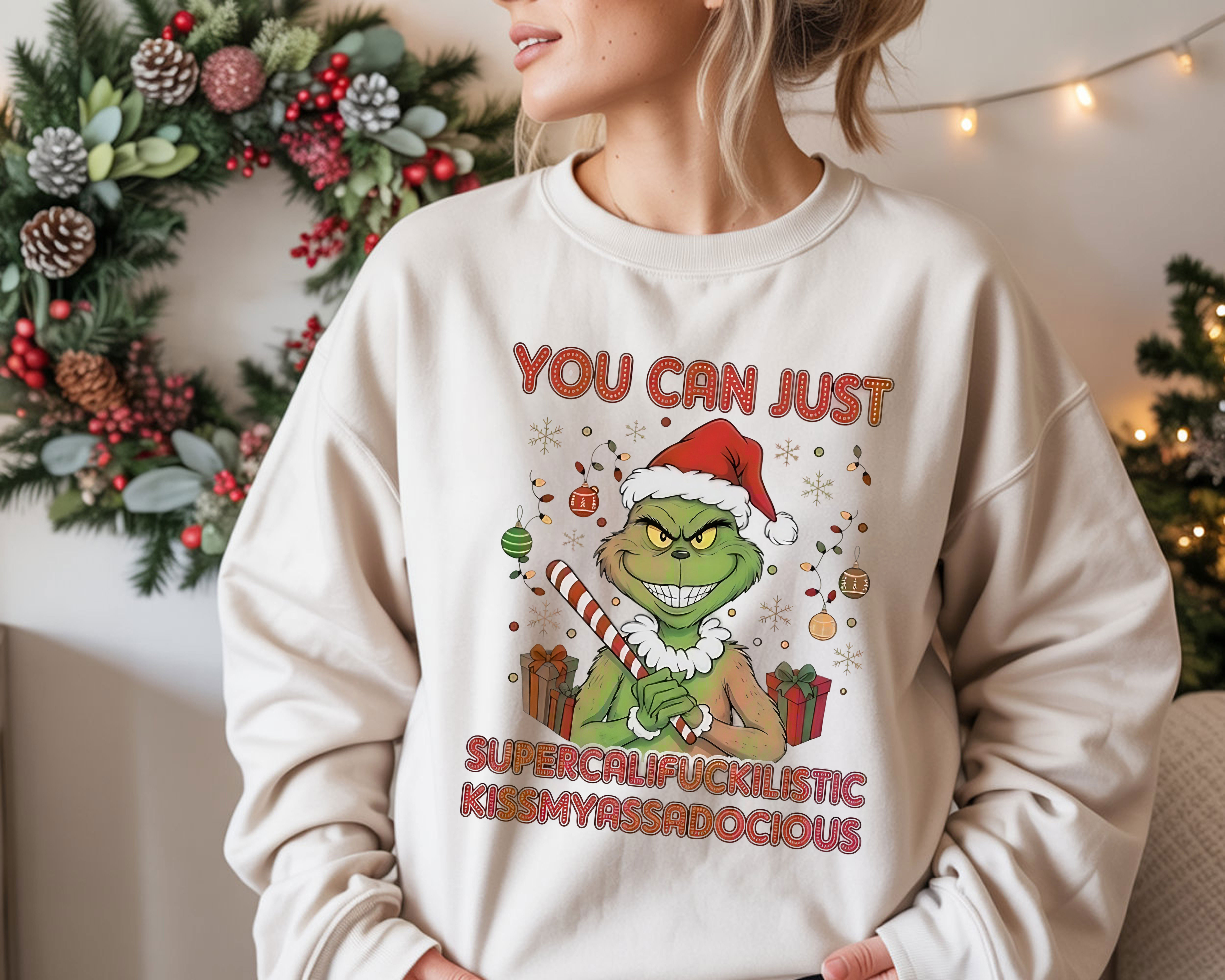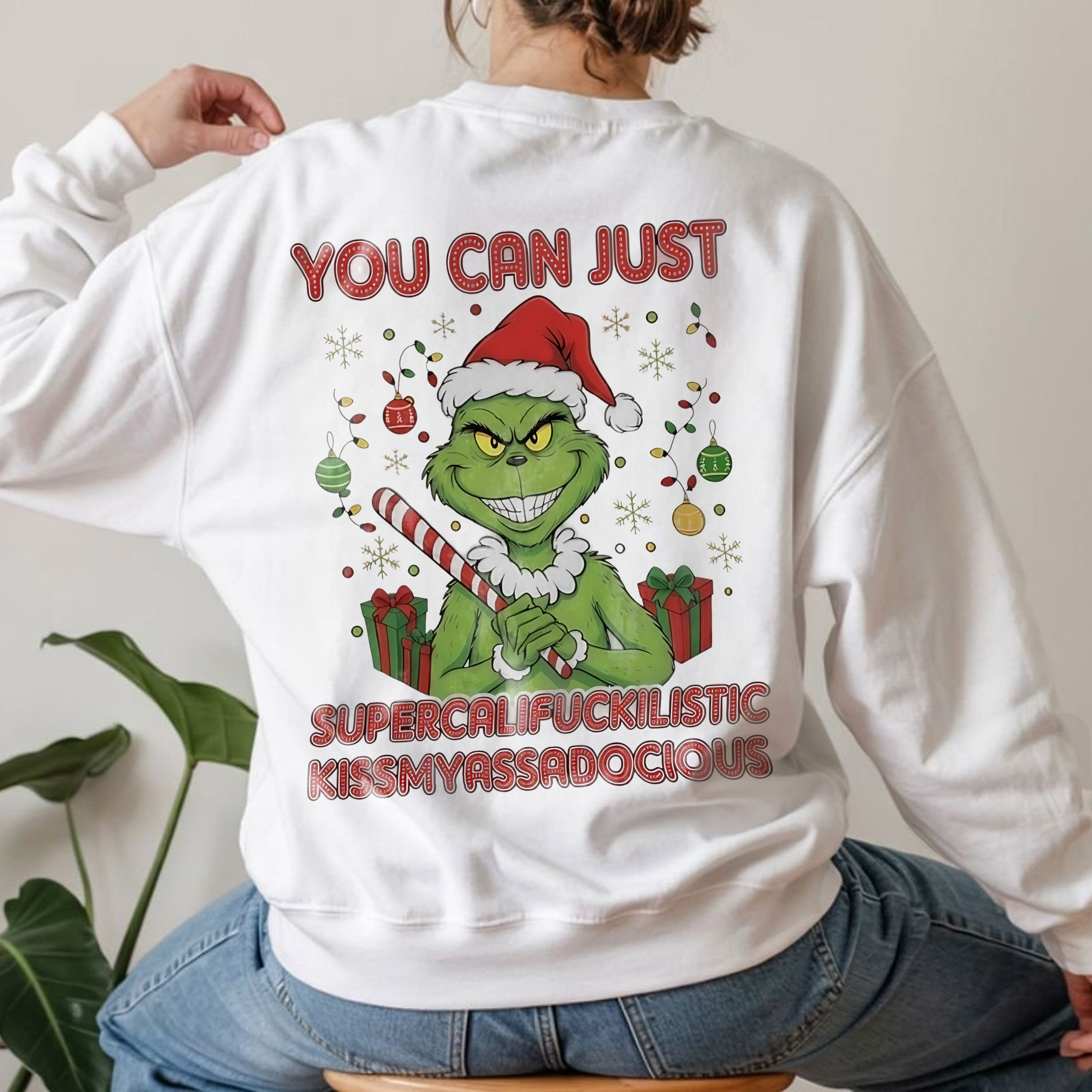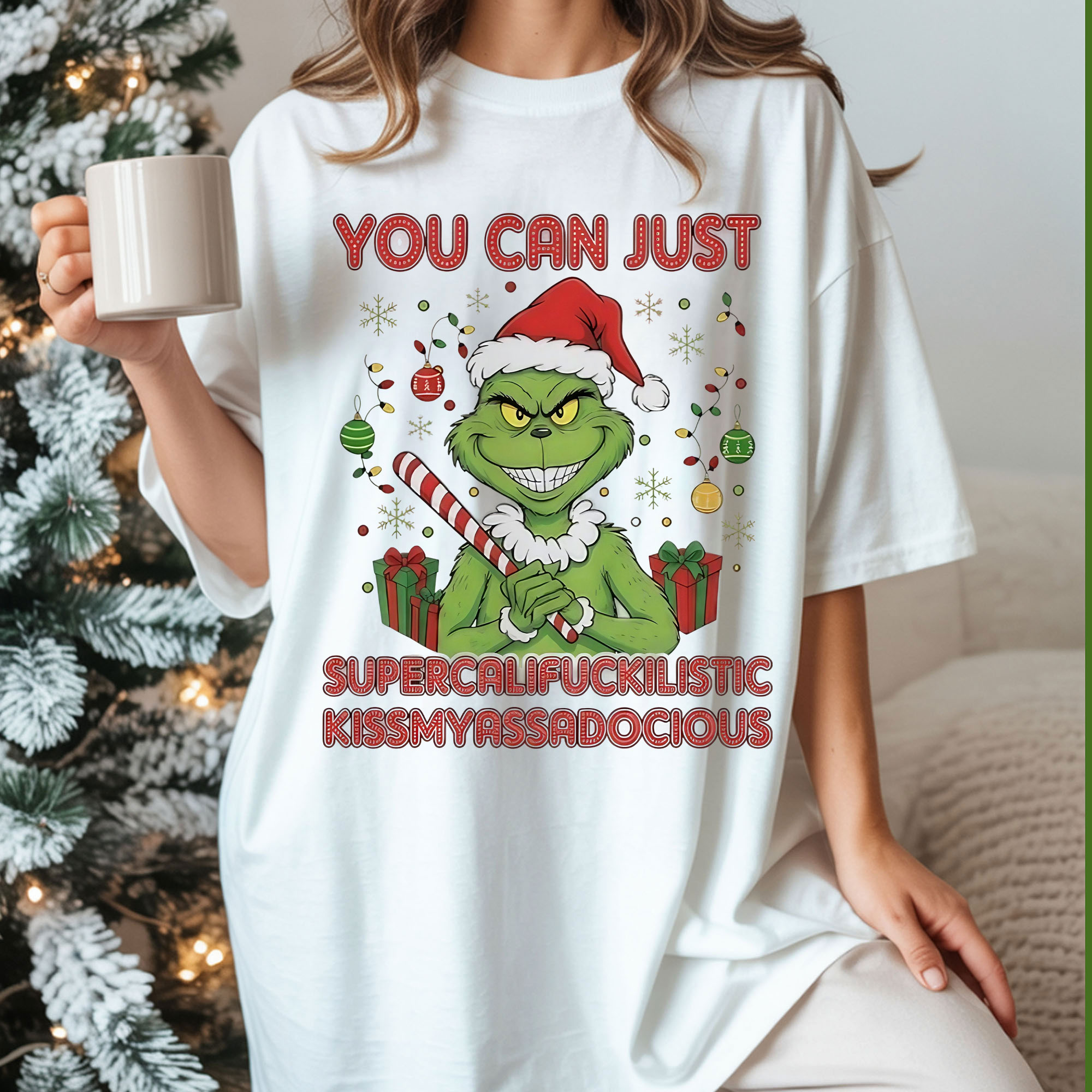 Grinch Quote Christmas T-Shirt – Funny Supercalifuckilistic Kissmyassadocious Vintage Bootleg Holiday Tee