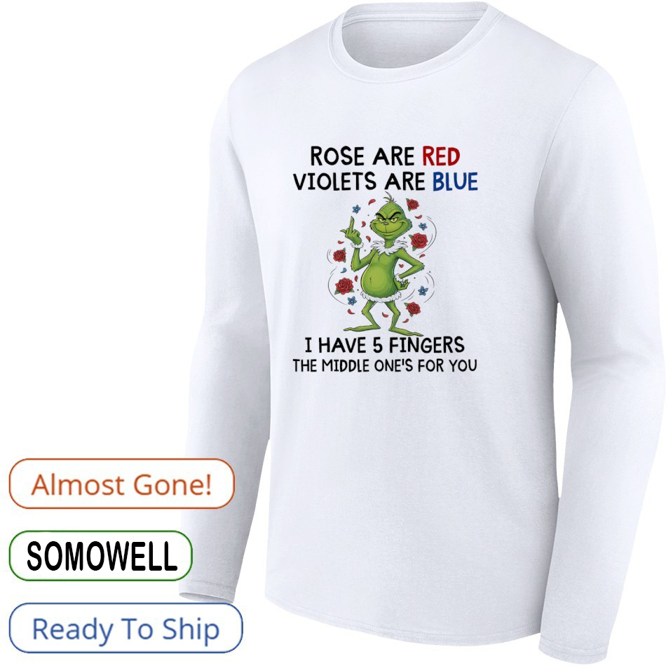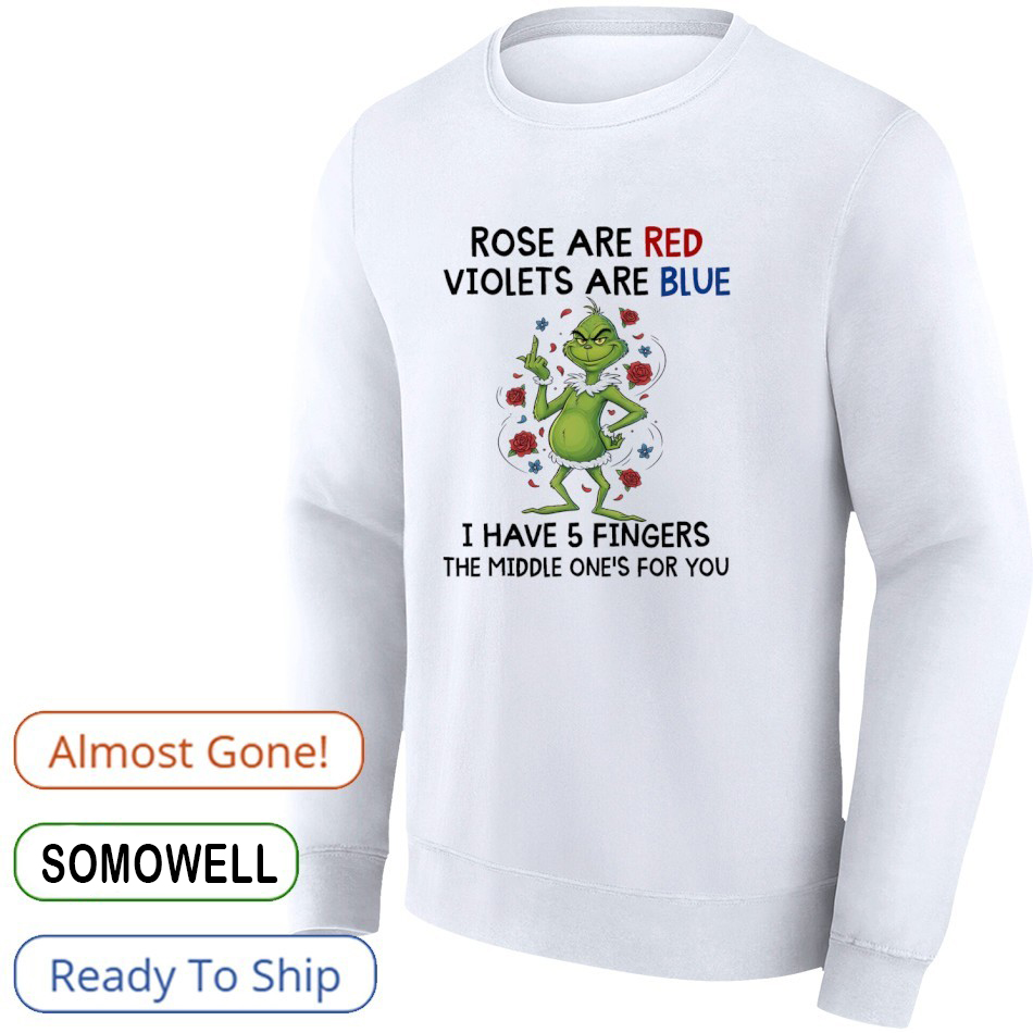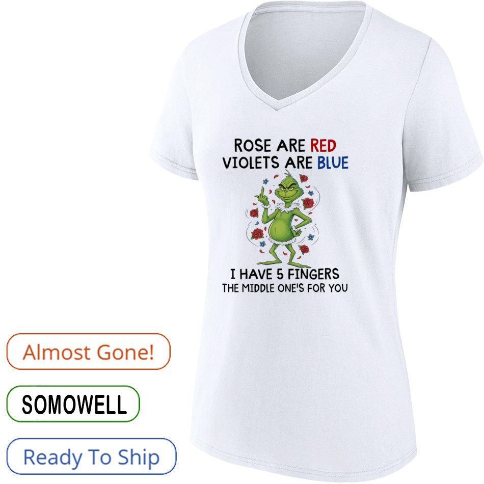 Grinch Sarcastic Funny Quote T-Shirt – Rose Are Red Violets Are Blue Middle Finger For You Christmas Vintage Bootleg Tee