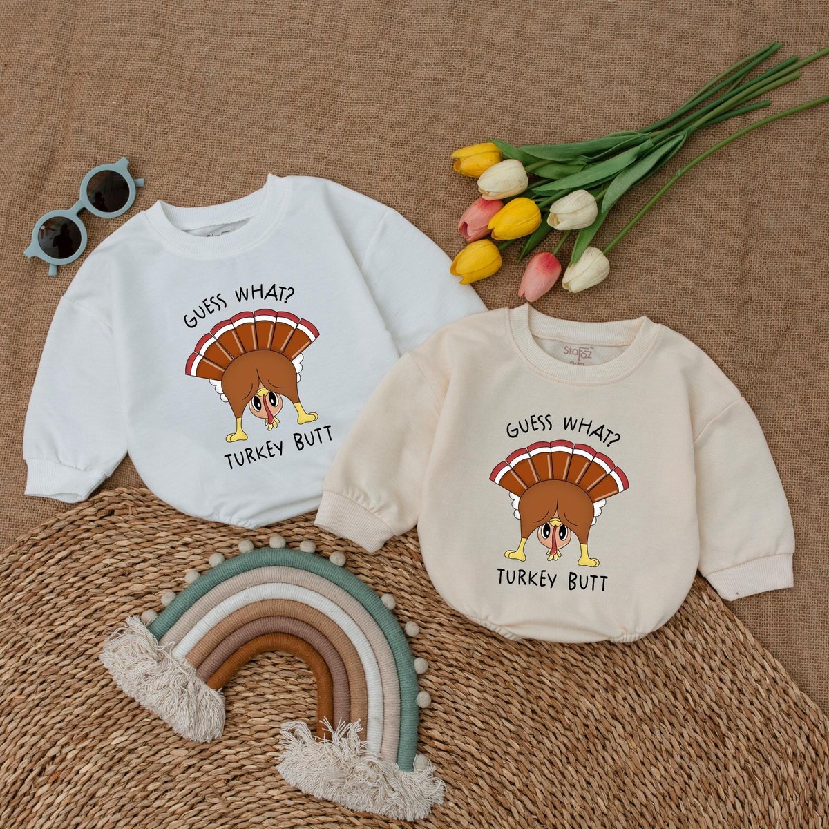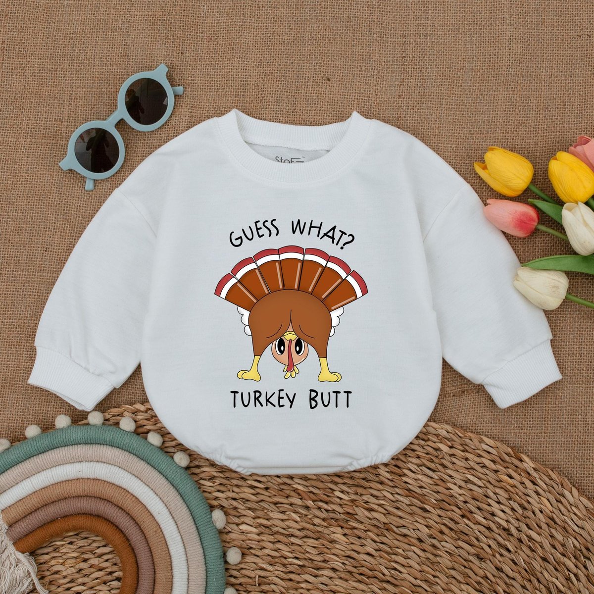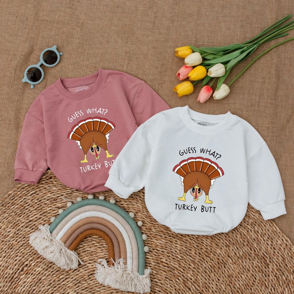 Guess What Turkey Butt Romper Little Turkey Funny Thanksgiving Bodysuit Baby Thanksgiving Outfit Fal 176