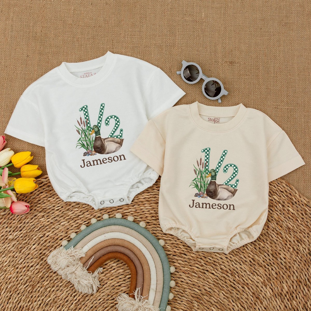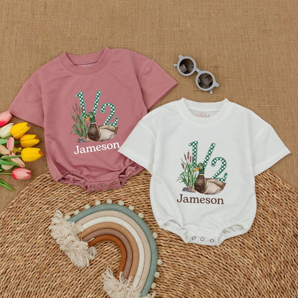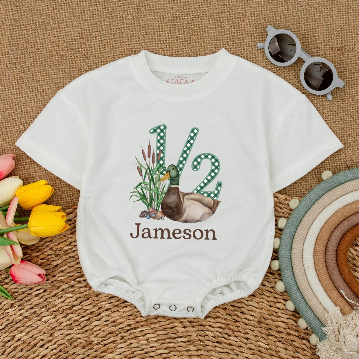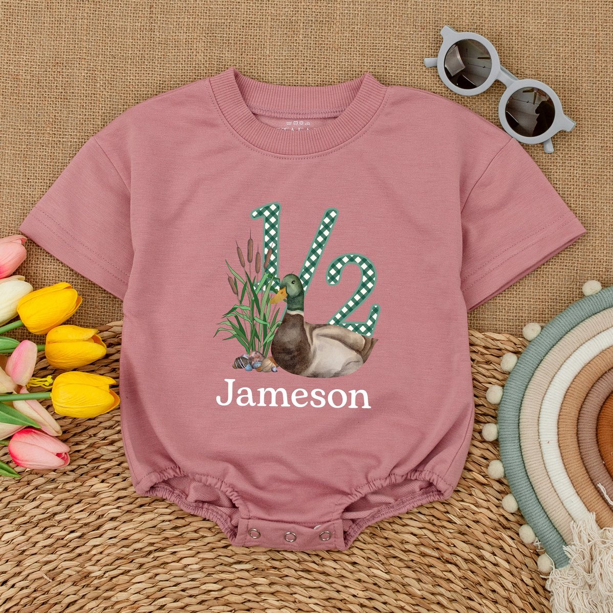 Half Birthday Lucky Duck Romper Mallard Duck Birthday Bodysuit Duckling Bodysuit Short Sleeve Bubble 175
