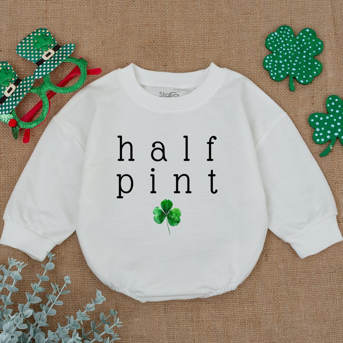 Half Pint Shamrock Baby Romper Clover Patrick Baby Bodysuit Newborn Saint Patrick’s Day Clover St P 163