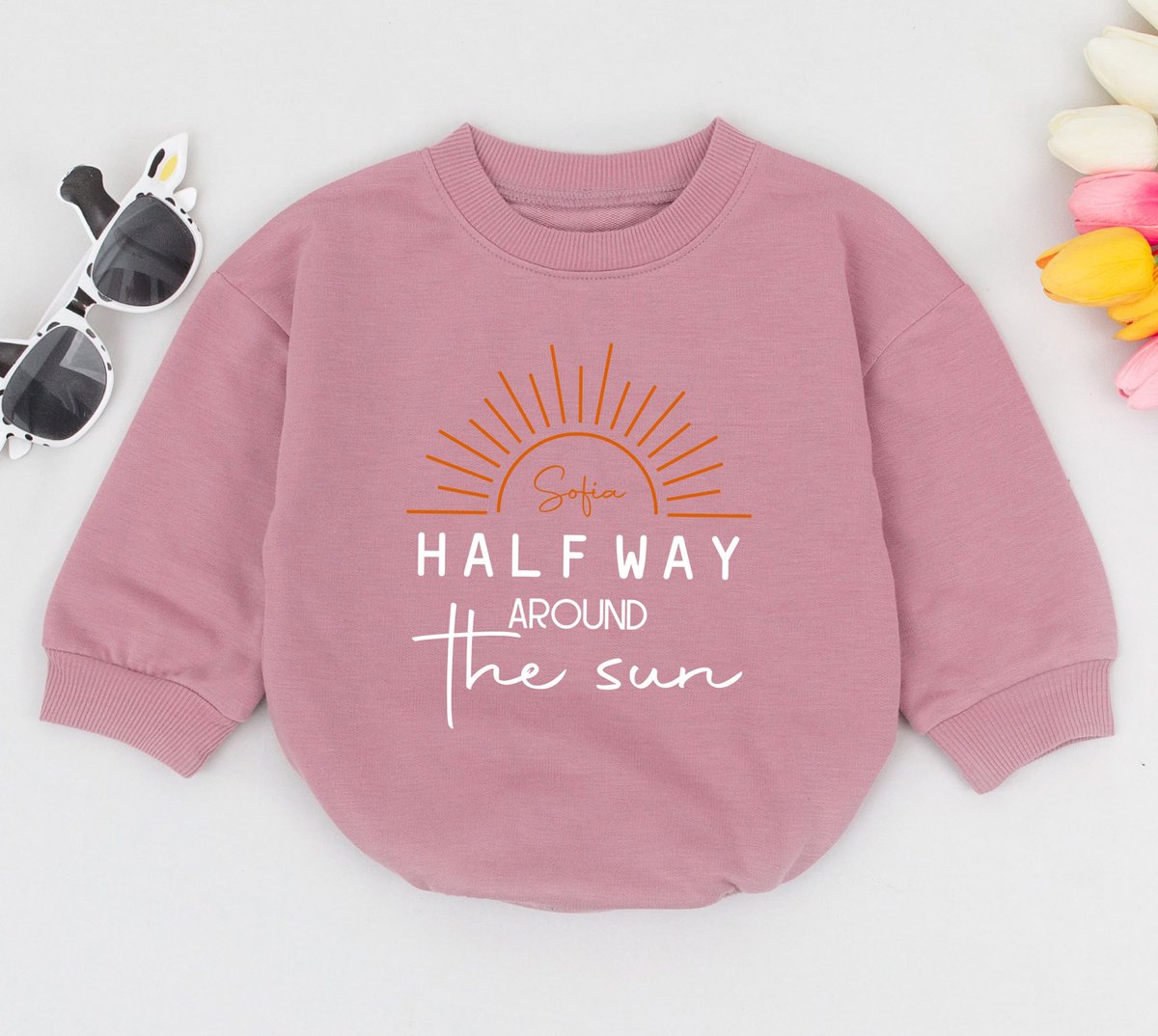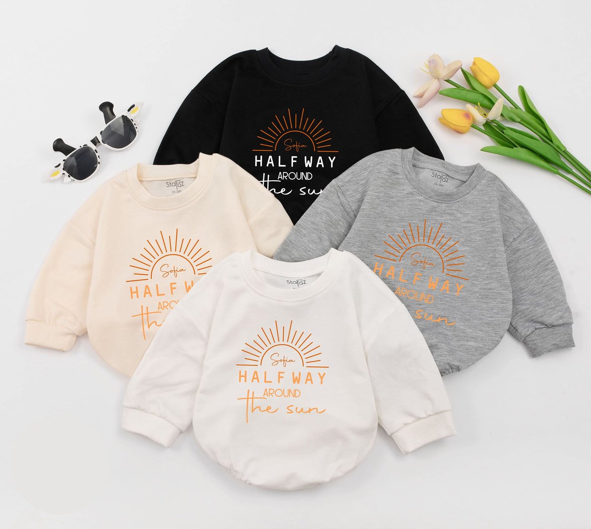 Half Way Around The Sun Baby Romper Baby Announcement Boys and Girls Clothes Half One Baby Bodysuit 169
