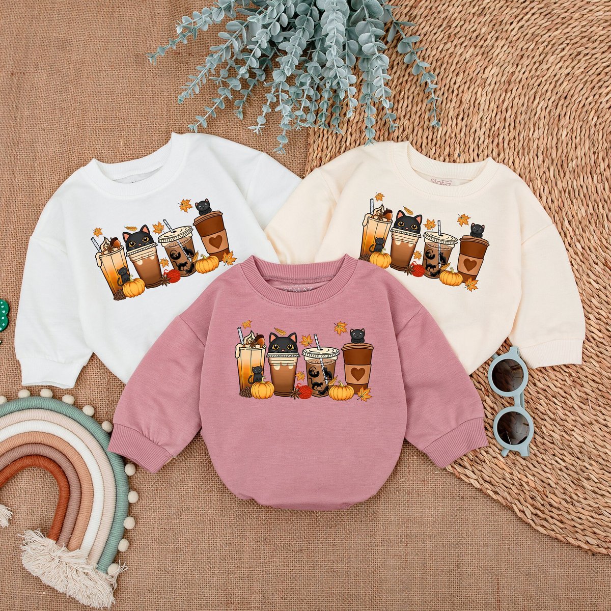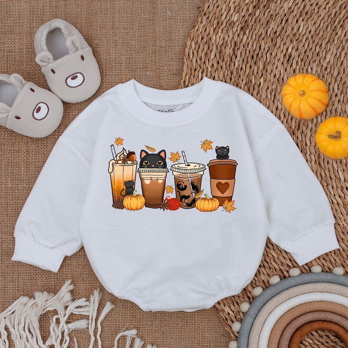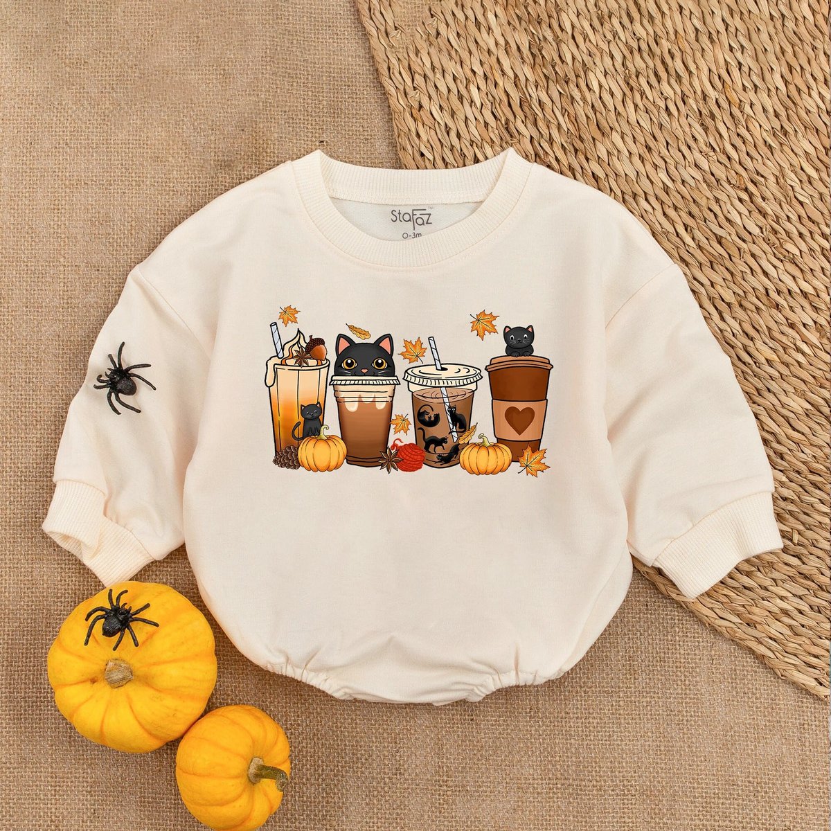 Halloween Cute Cat Baby Romper Fall Latte Coffee Baby Bodysuit Cute Halloween Pumpkin Spooky Season
