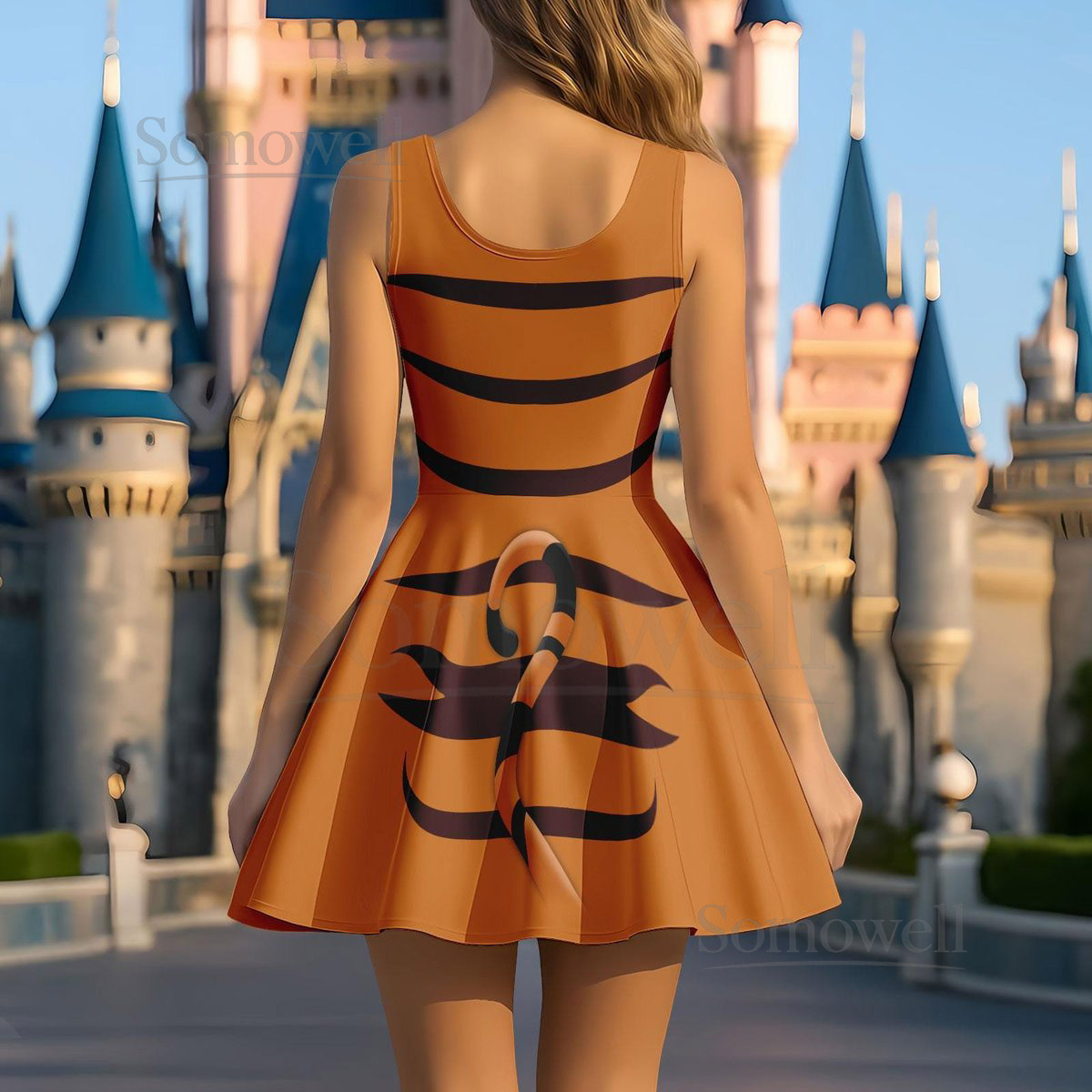 Halloween Rajah Costume Skater Dress Disney Aladdin Cosplay Costume Animal Kingdom Disney World Shirt Jasmine’s Tiger Women Dress_90