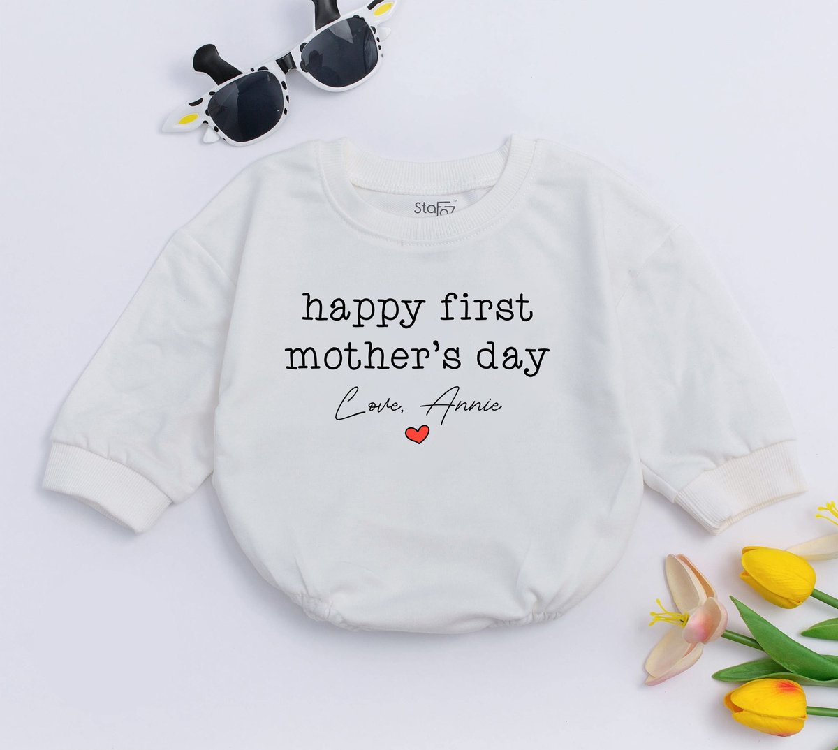 Happy First Mother’s Day Oversized Baby Romper Personalization Baby Bodysuit Mothers Day Gift Baby 169