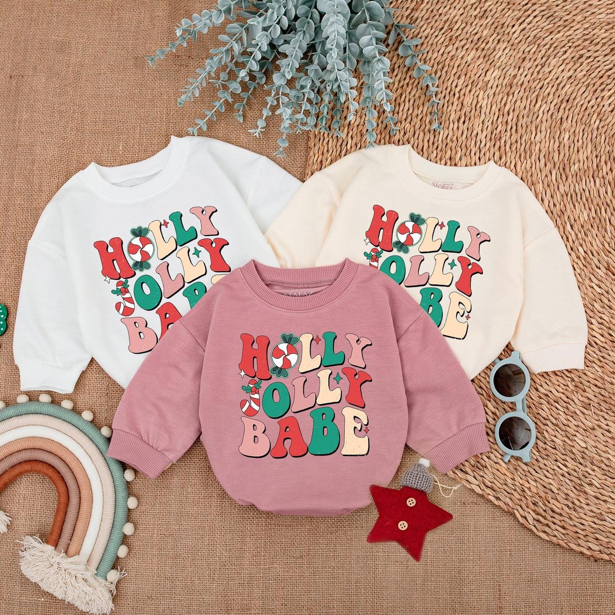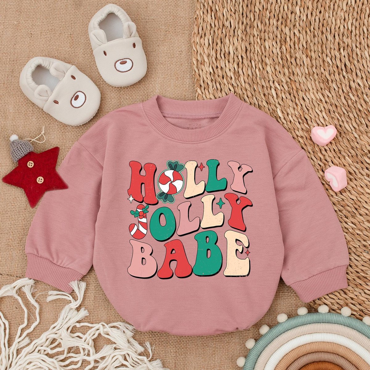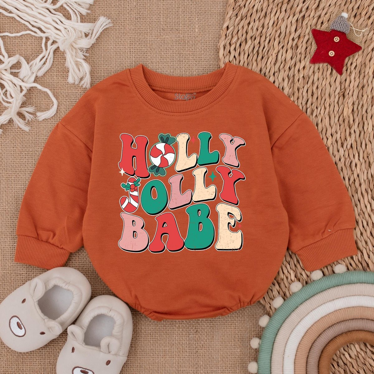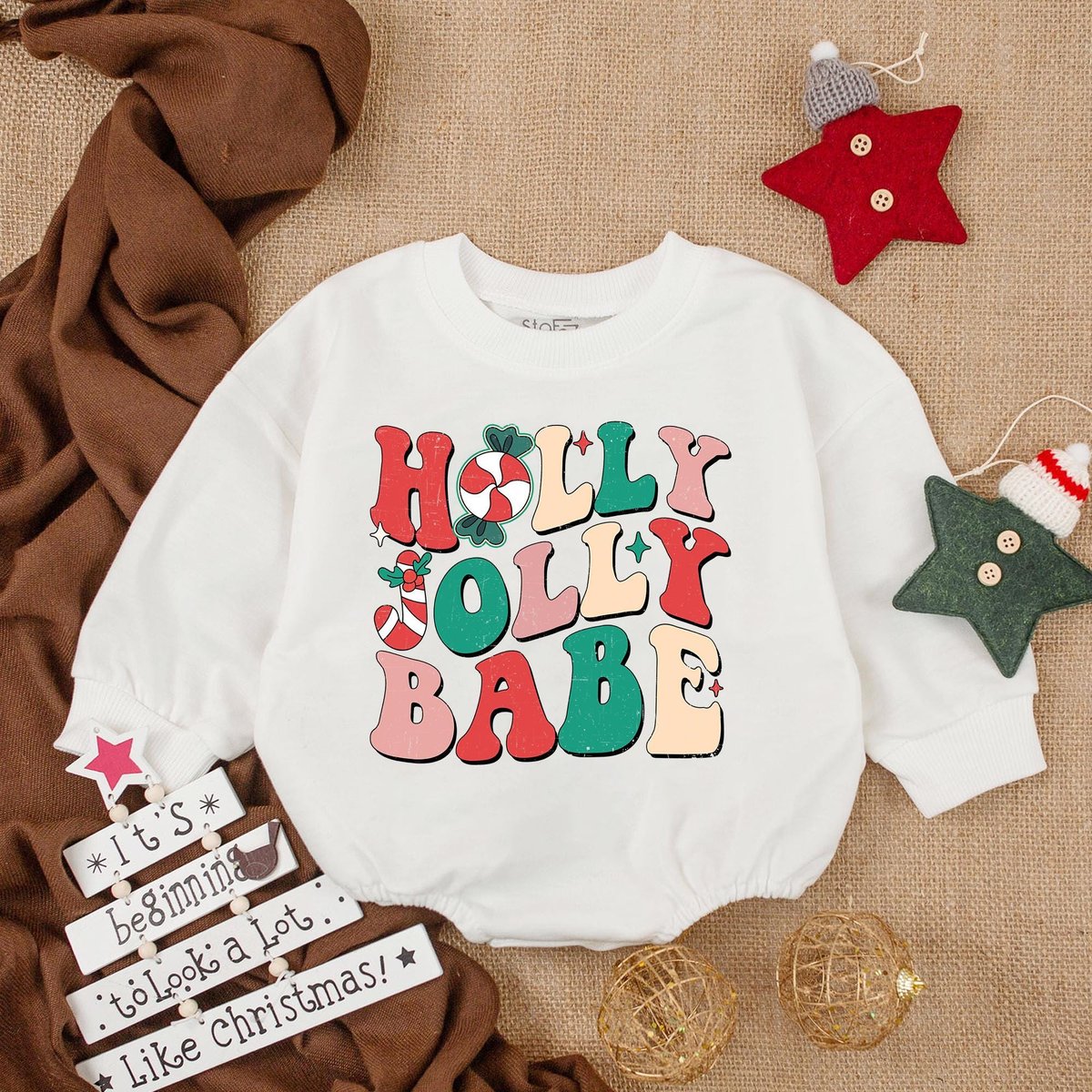 Holly Jolly Babe ClothesMerry Christmas Baby Romper Christmas Bodysuit Baby Outfit Bubble Bodysuit