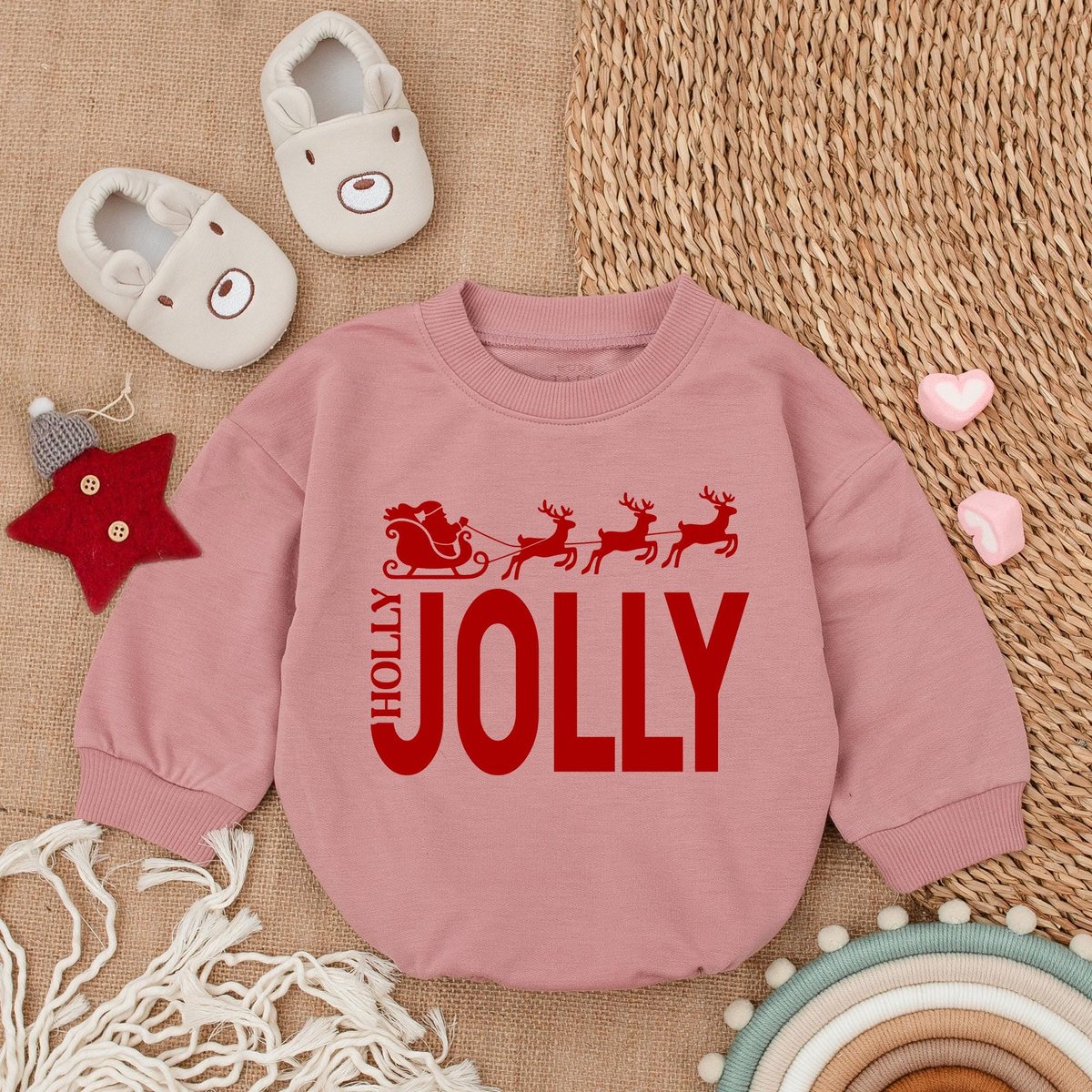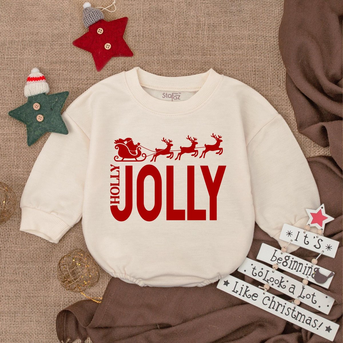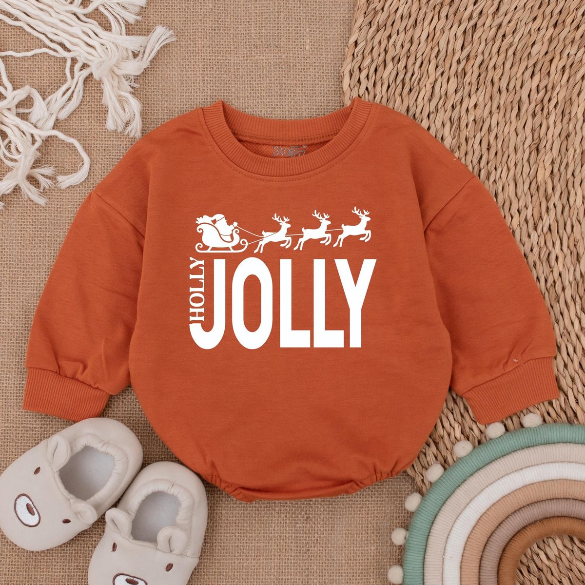 Holly Jolly ClothesMerry Christmas Baby Romper Christmas Bodysuit Baby Outfit Bubble Bodysuit First